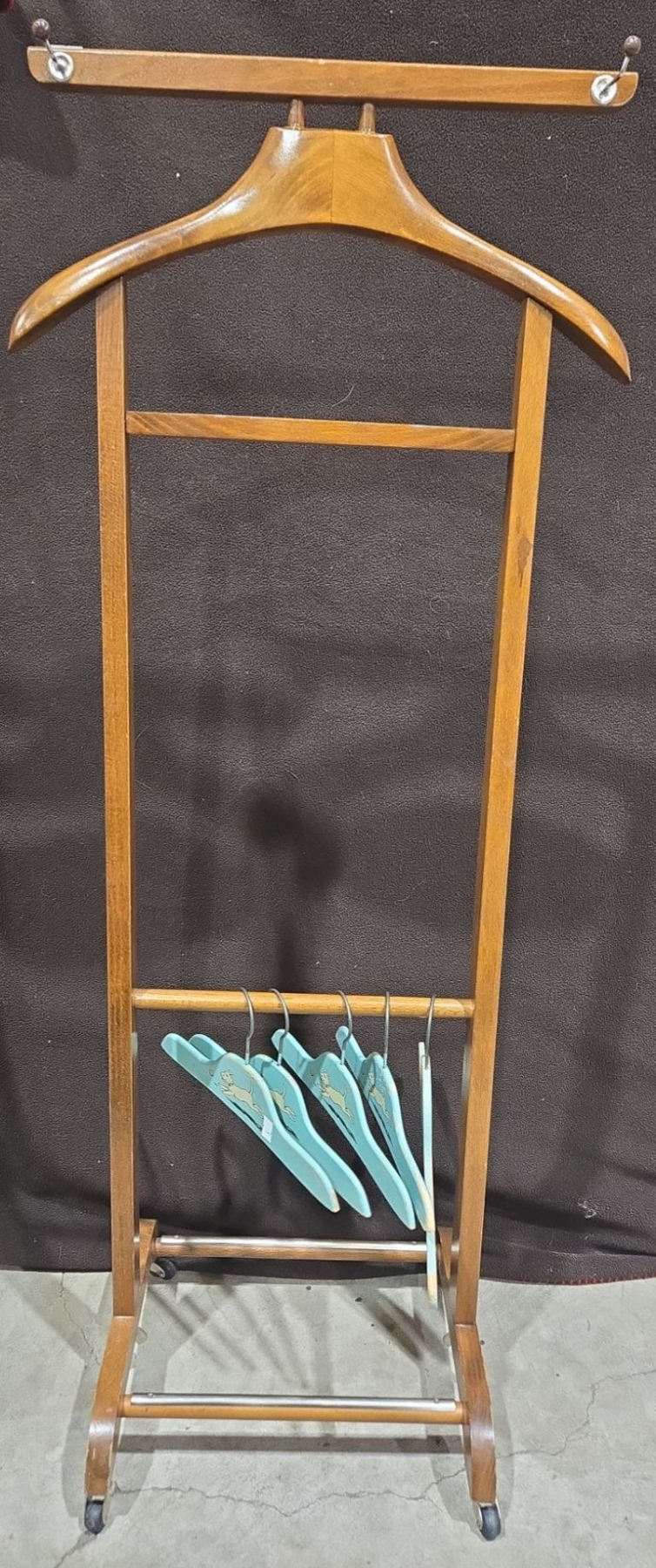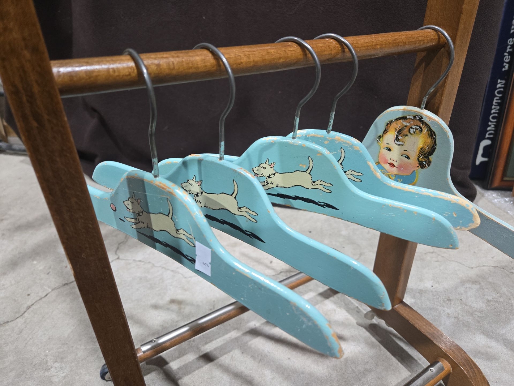 Antique Maple Clothing Rack w/ Assortment of Antique Hangers (5) - 44T