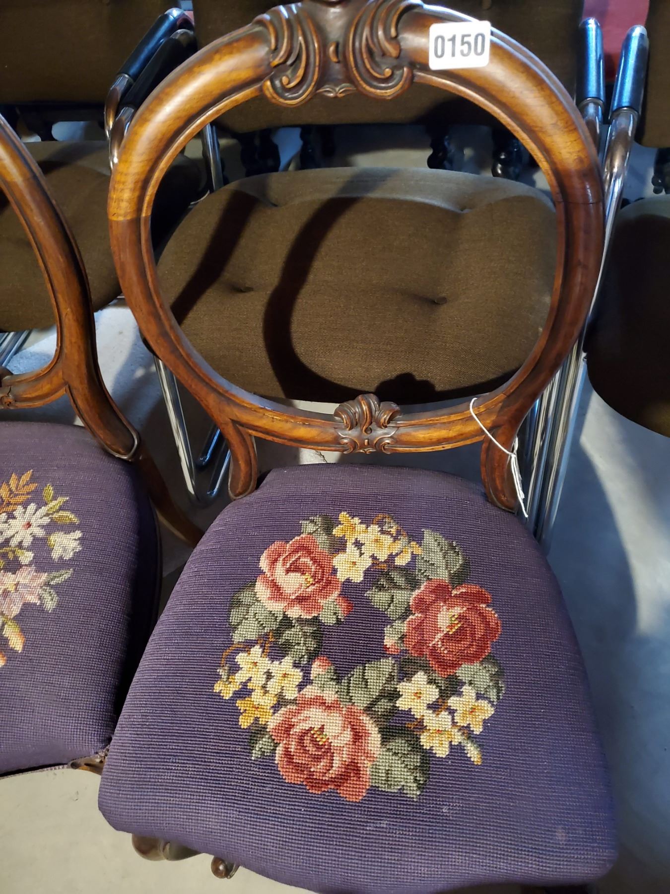 Antique Needpoint Baloon Back Chair Set
