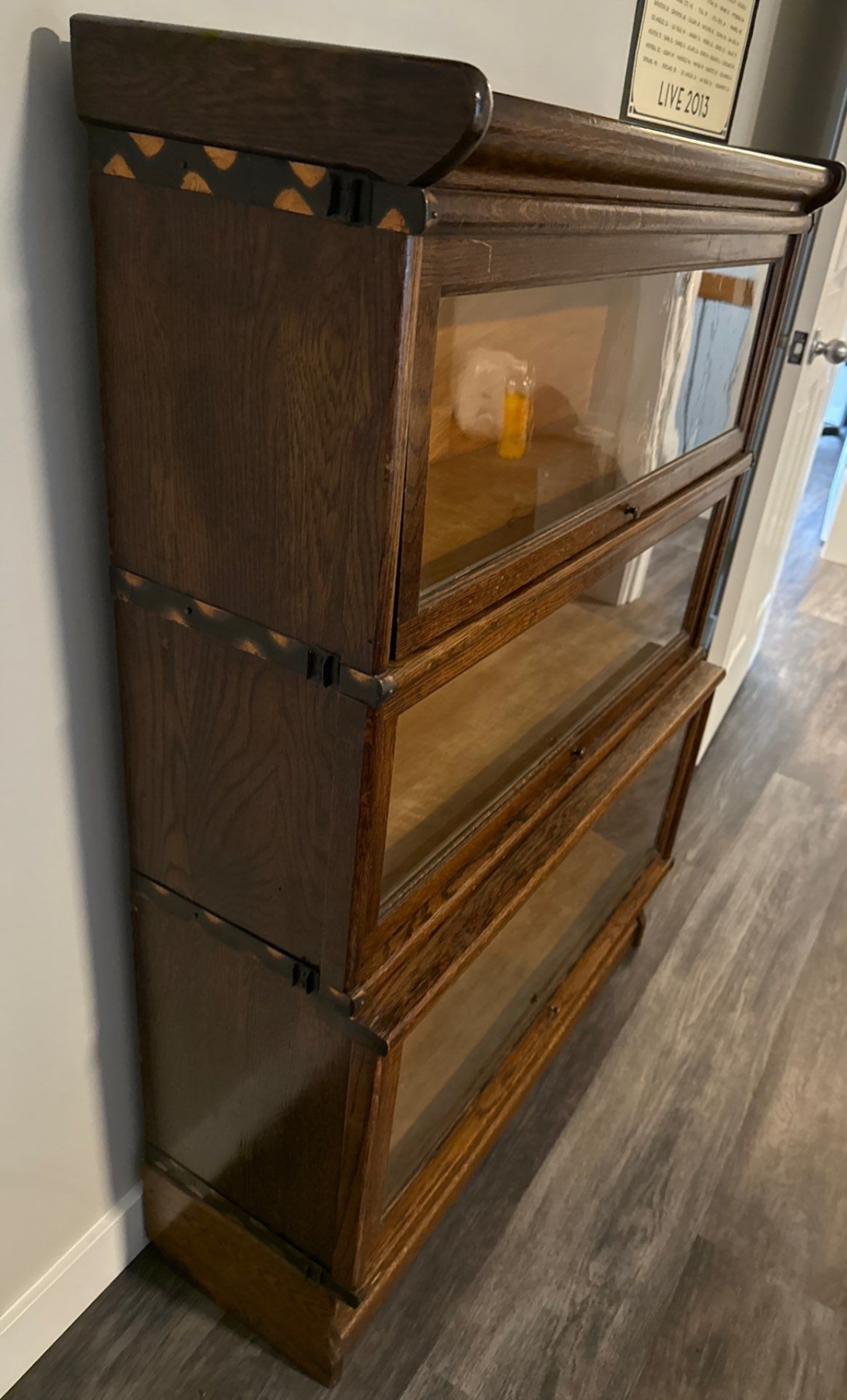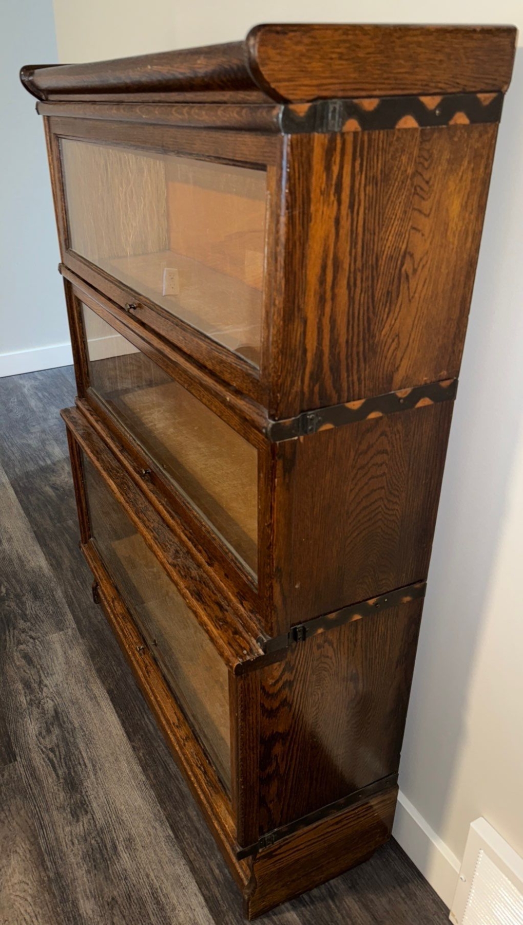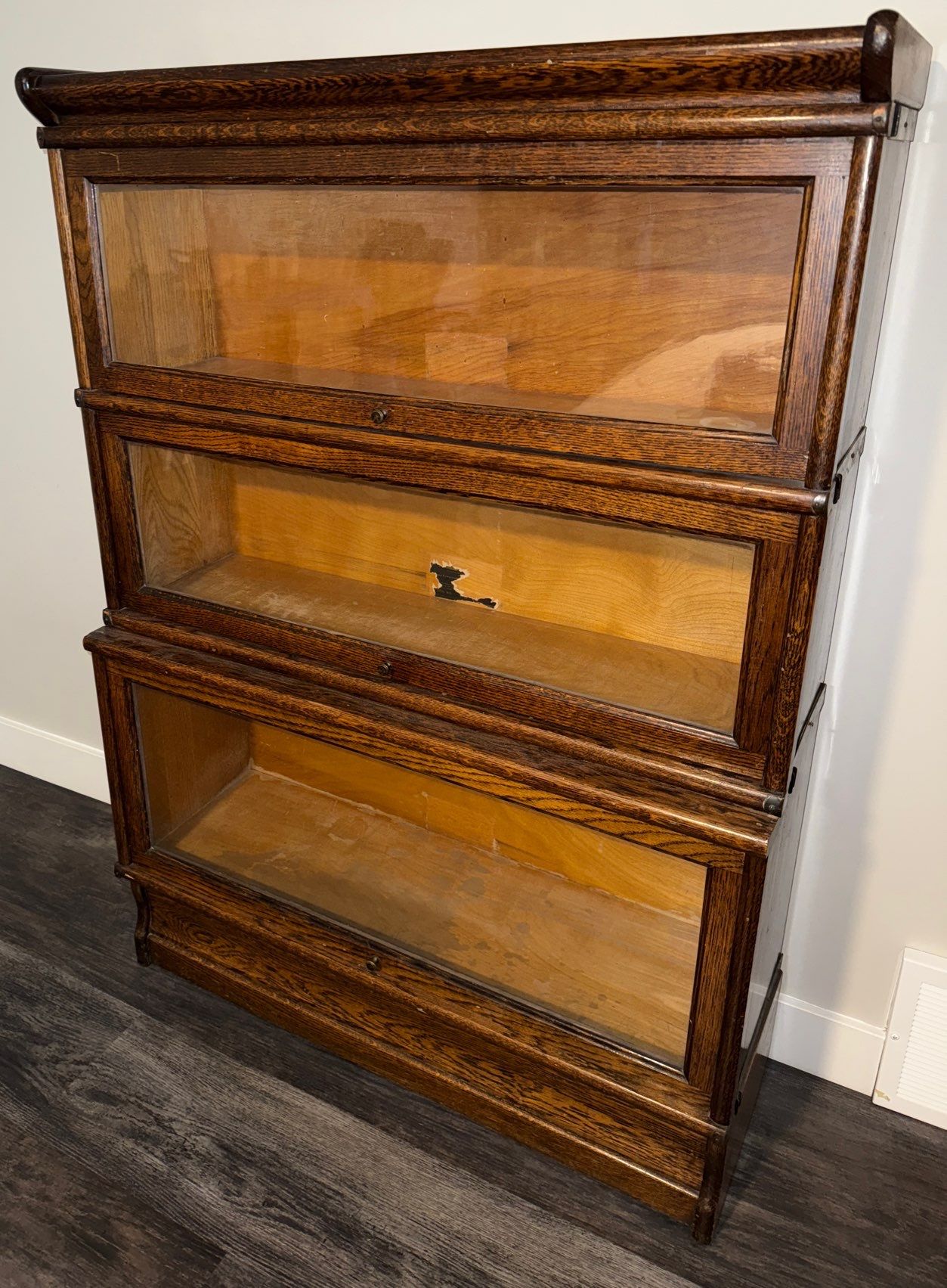 Antique Oak Barrister Bookcase- Stackable Lawyer Design 35x17x57"tall