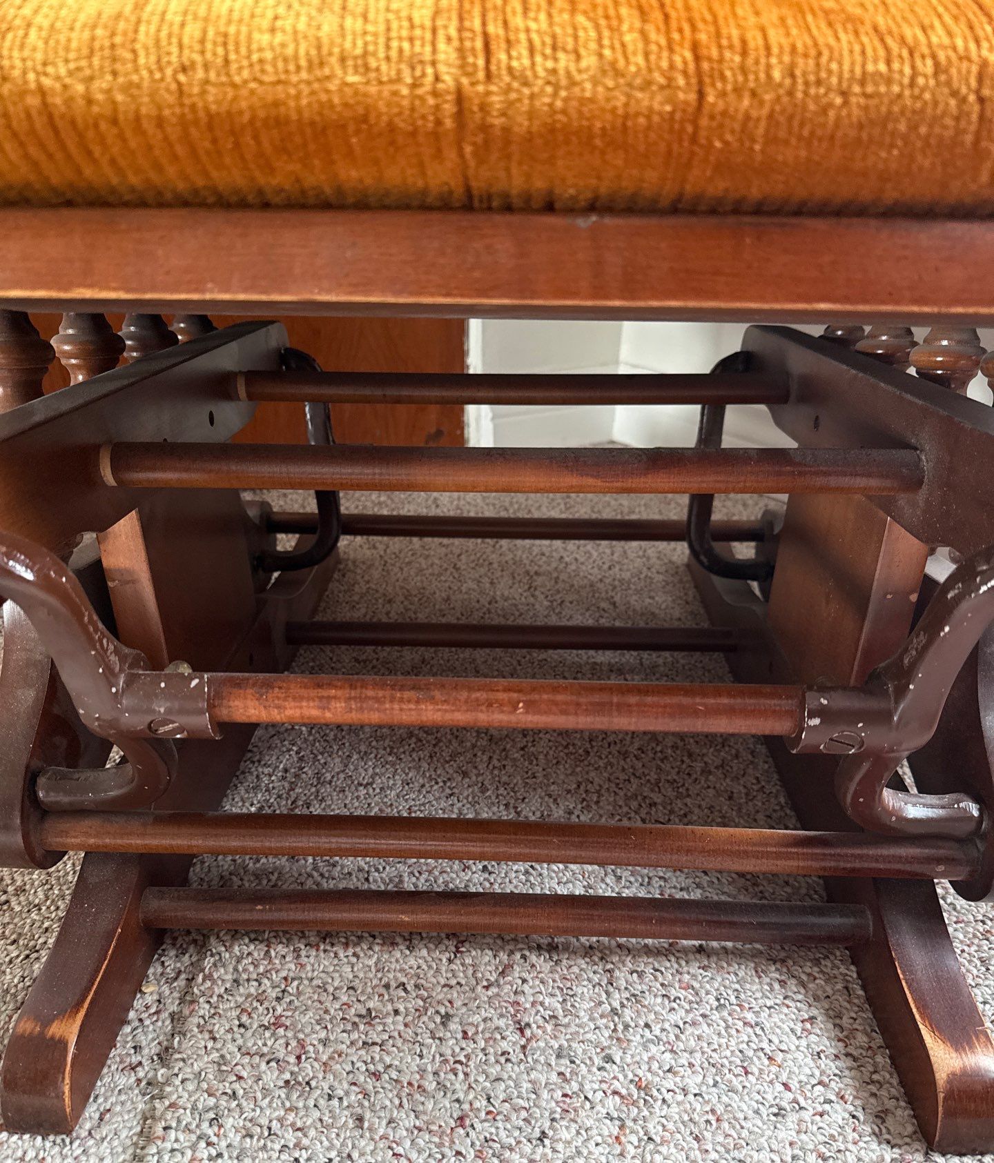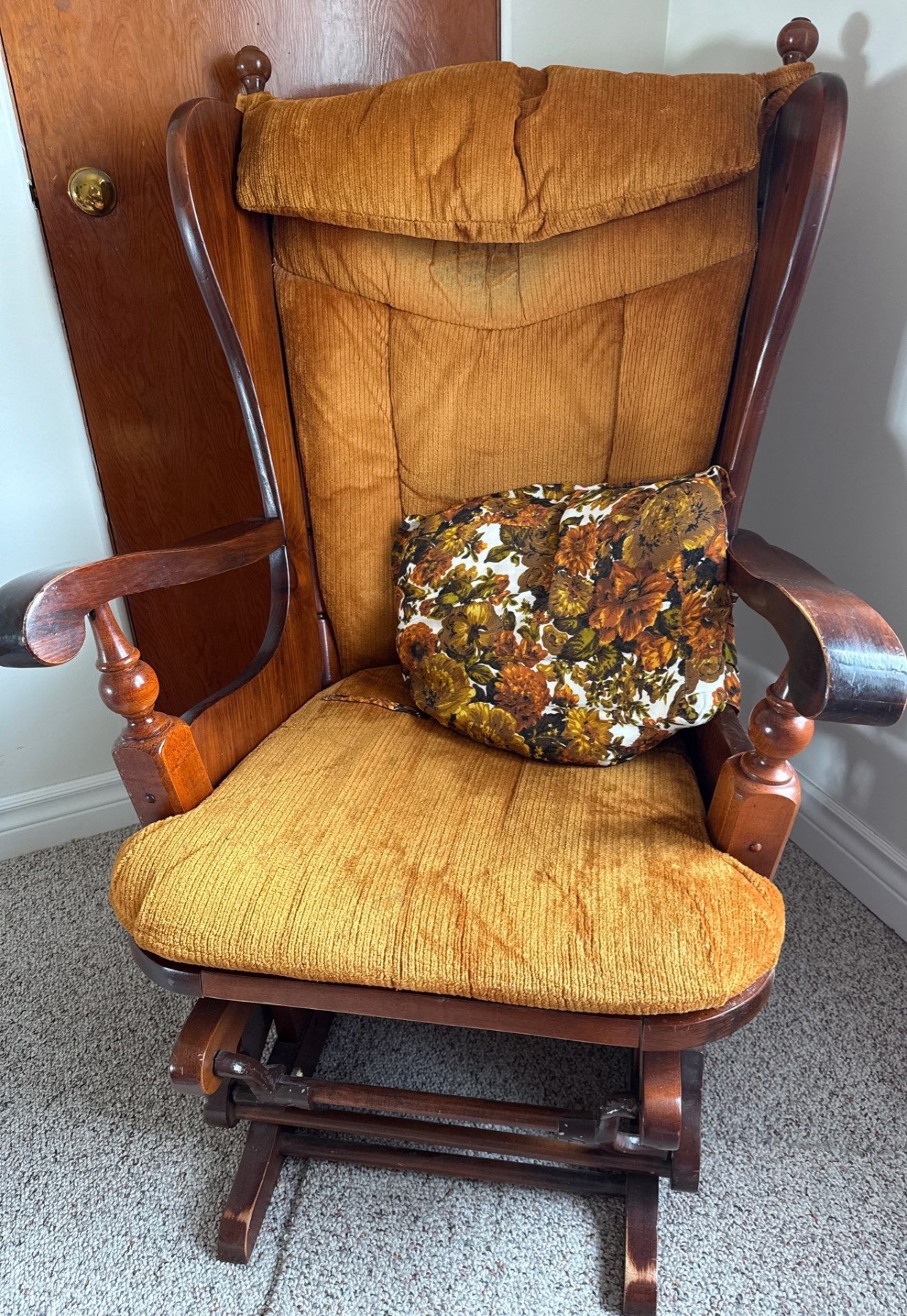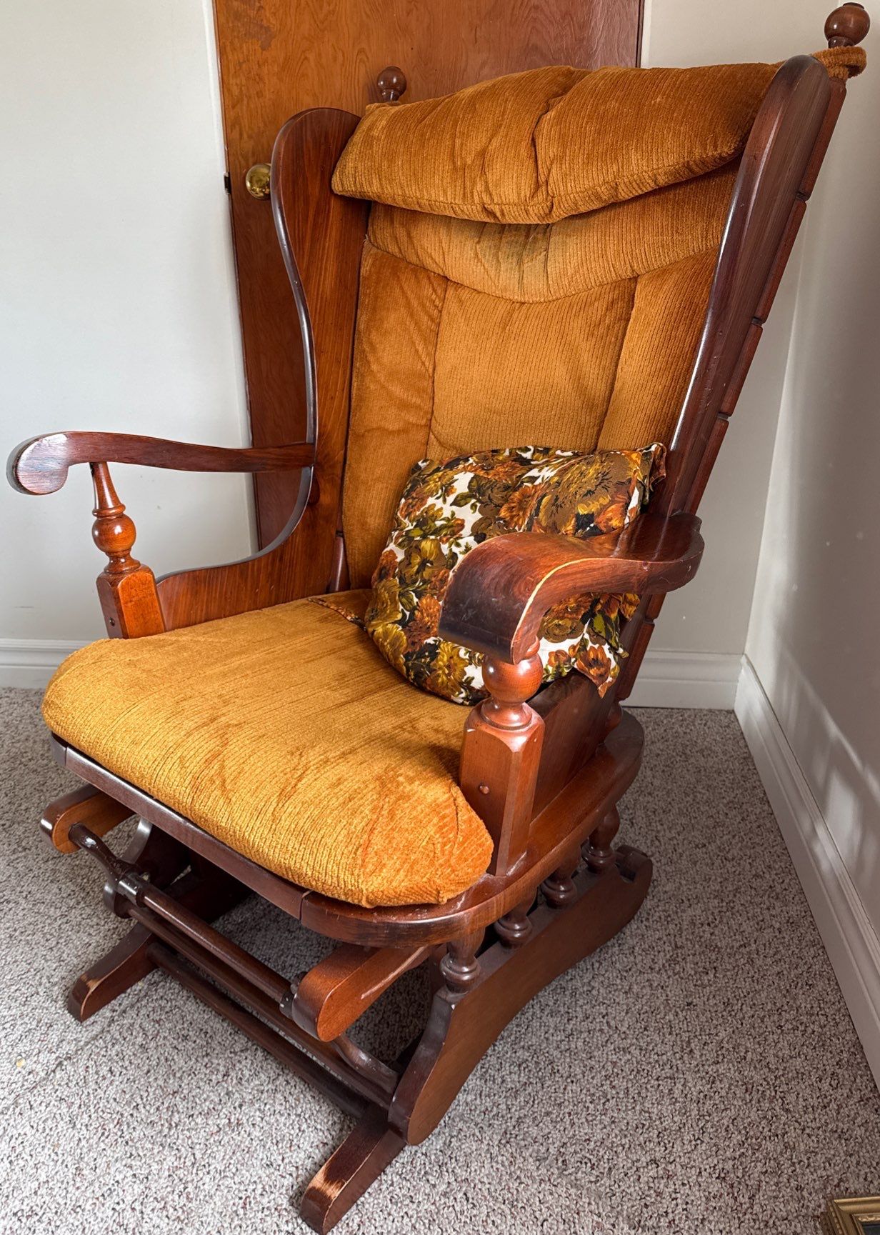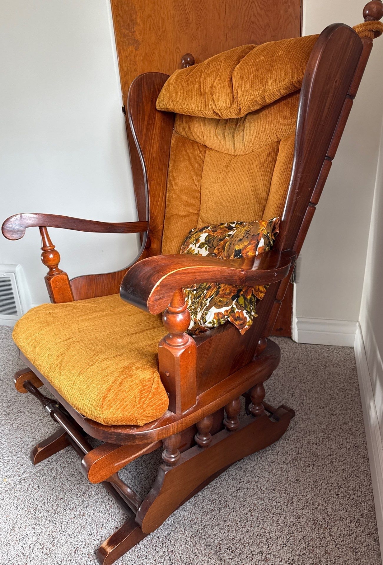 Antique Oak Wingback Nursing Glider / Rocking Chair w/ Autumn Upholstery 32T