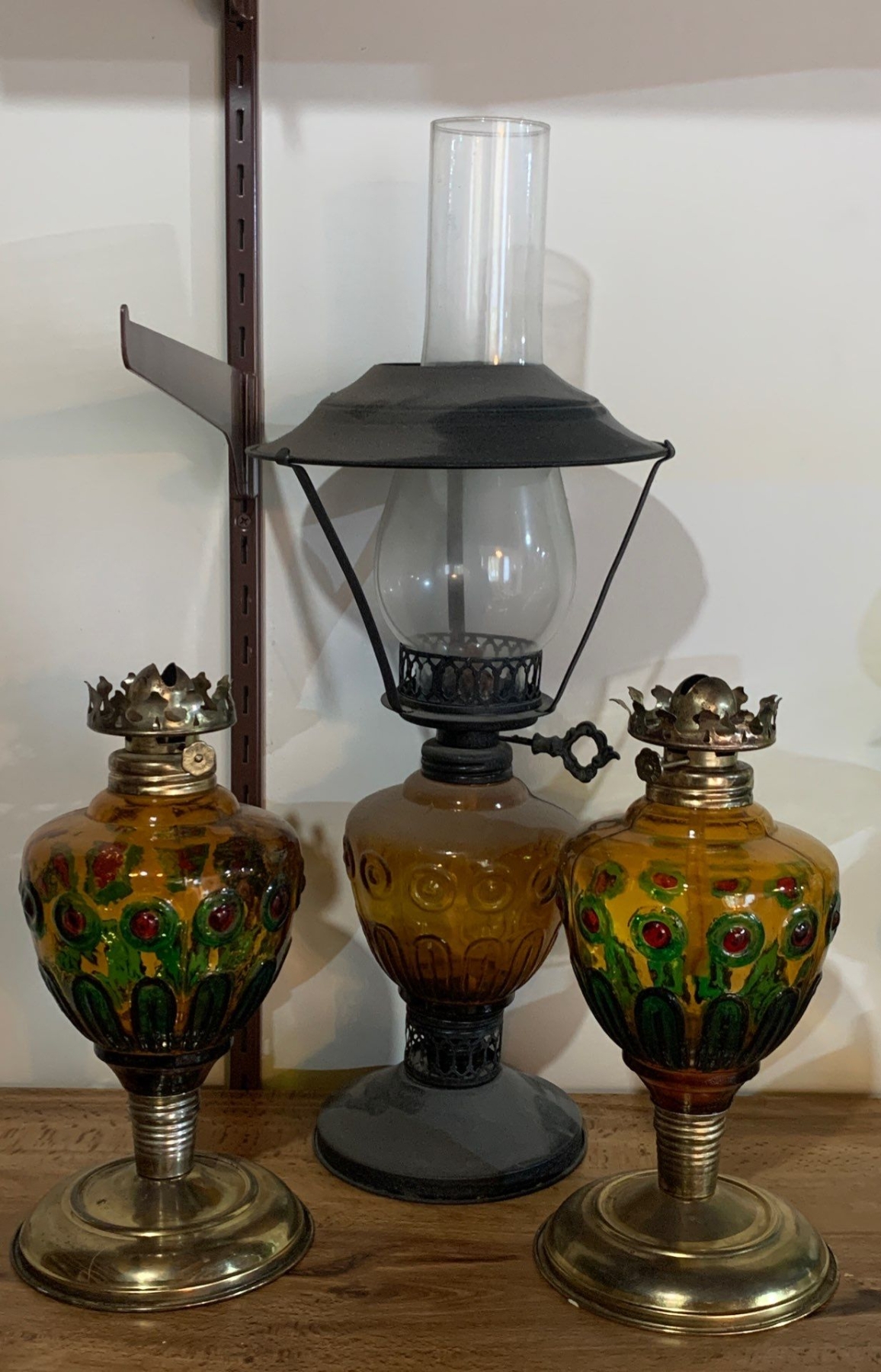 Antique Oil Lamp Trio 18T Brown & Emerald