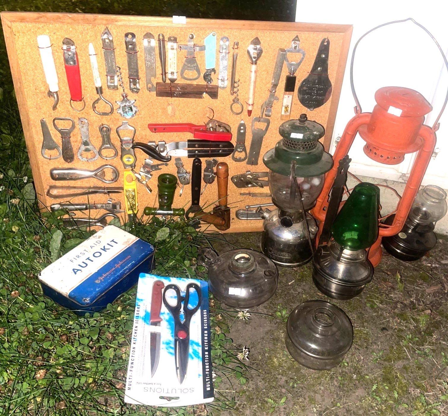 Antique Oil Lanterns 24T w/ Assorted Barware & More