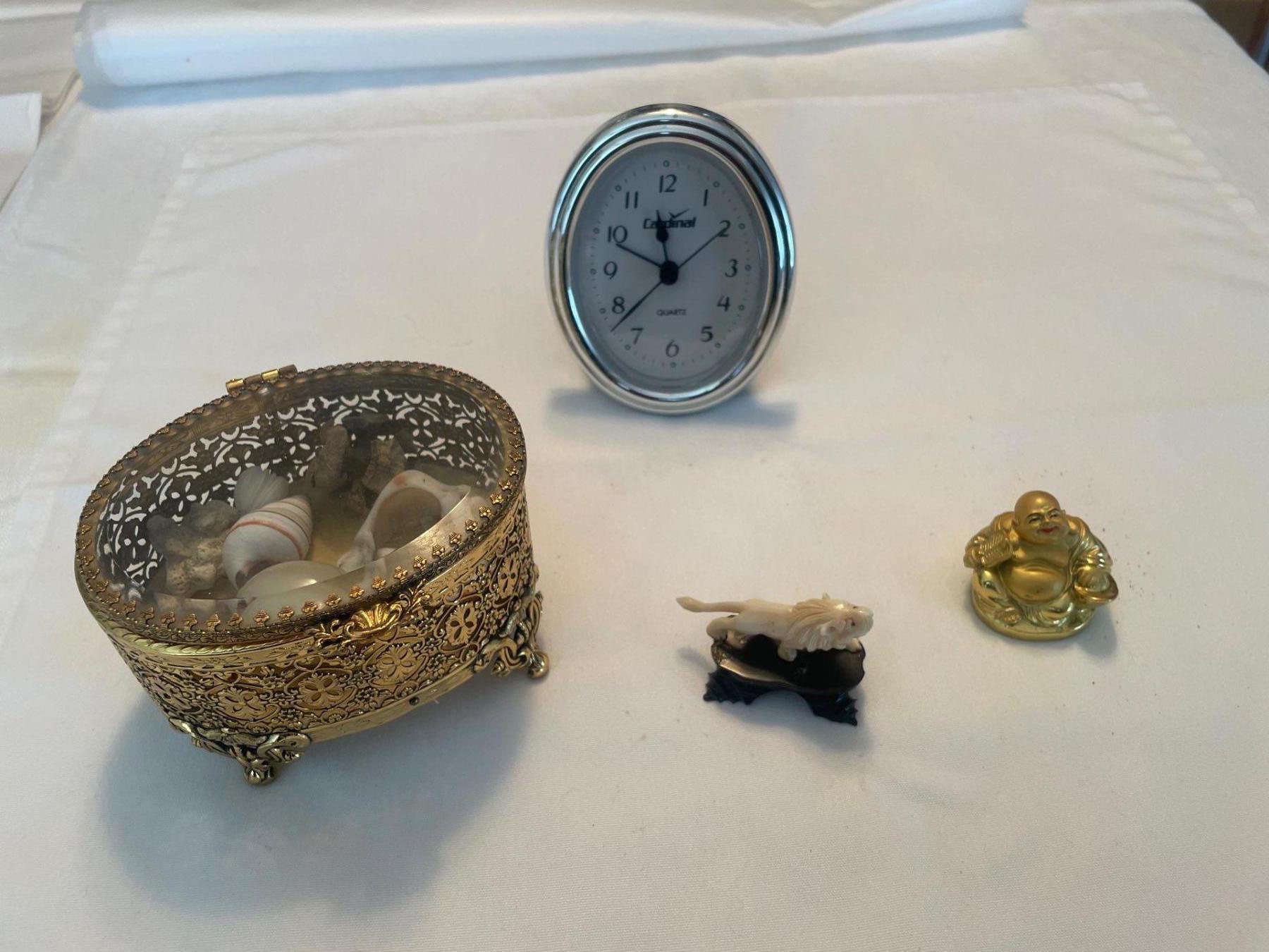 Antique Ormolu Filigree Vanity Set / Jewellery Casket w/ Vintage Smalls