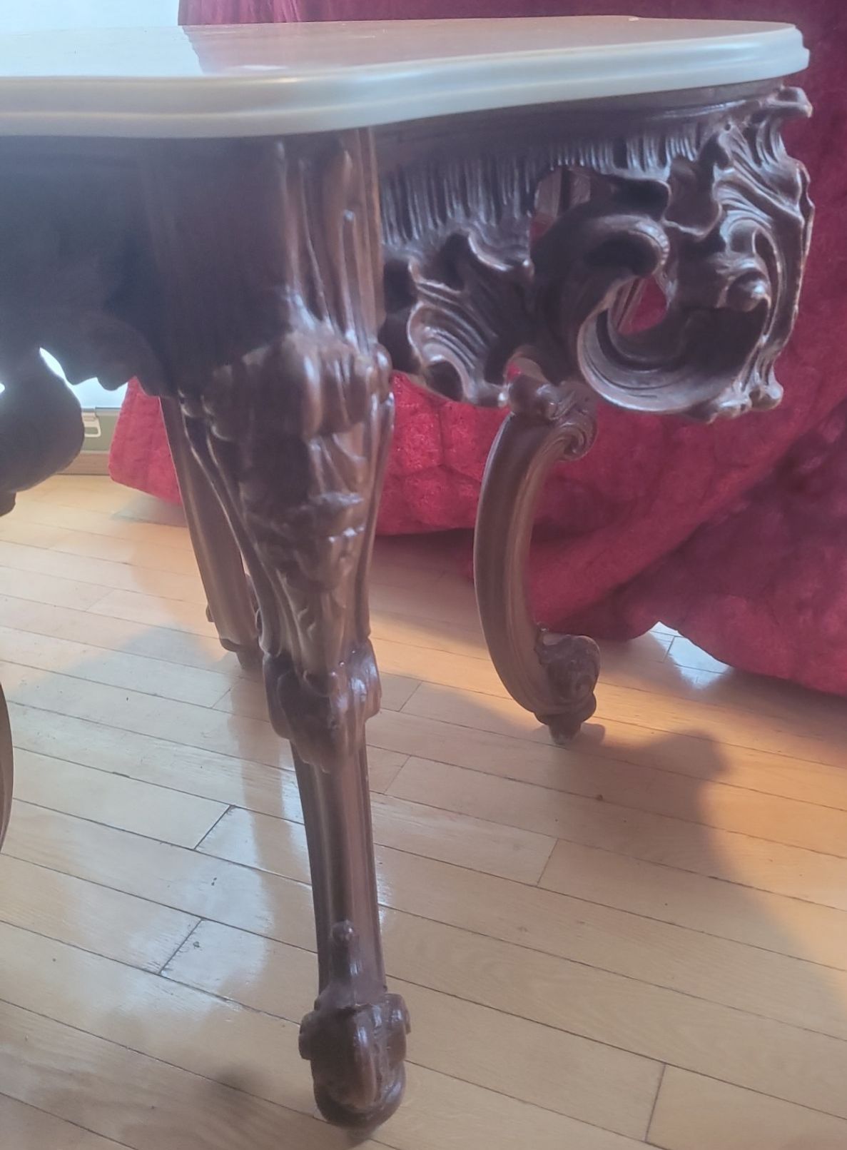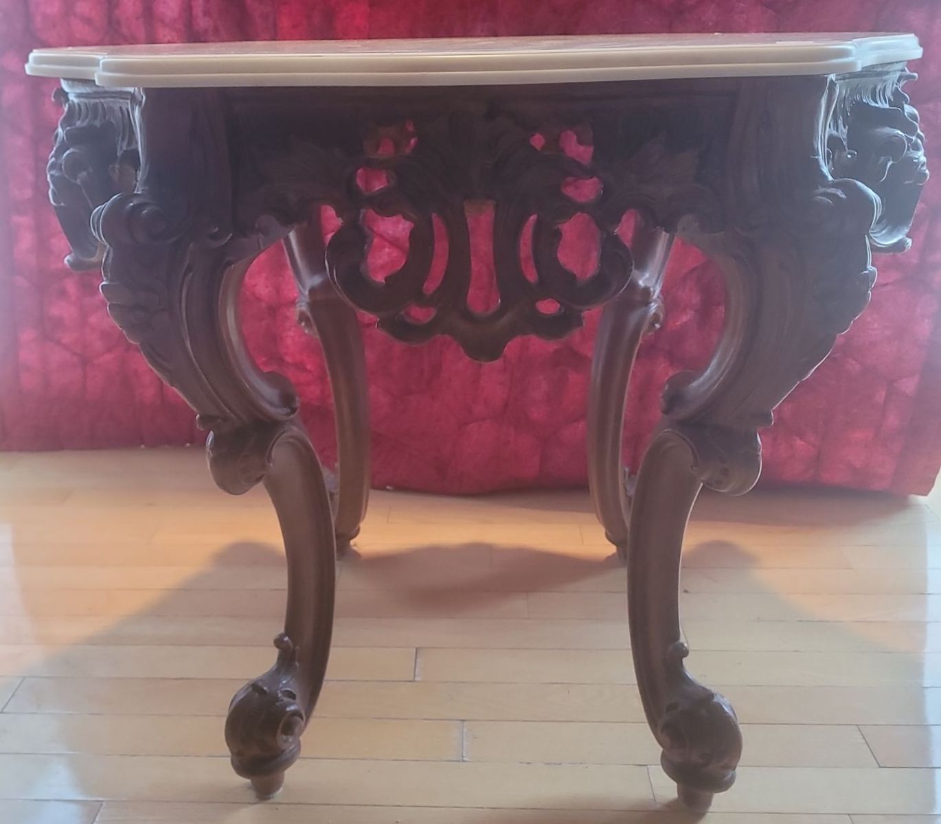 Antique Ornate Art Nouveau Wooden Side Table w/ Marble Top - 30W, 24D, 25T
