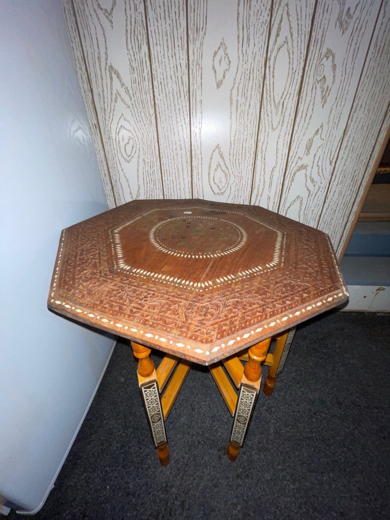 Antique Persian Inlaid Side Table 21 x 21 x 19T Slightly Warped