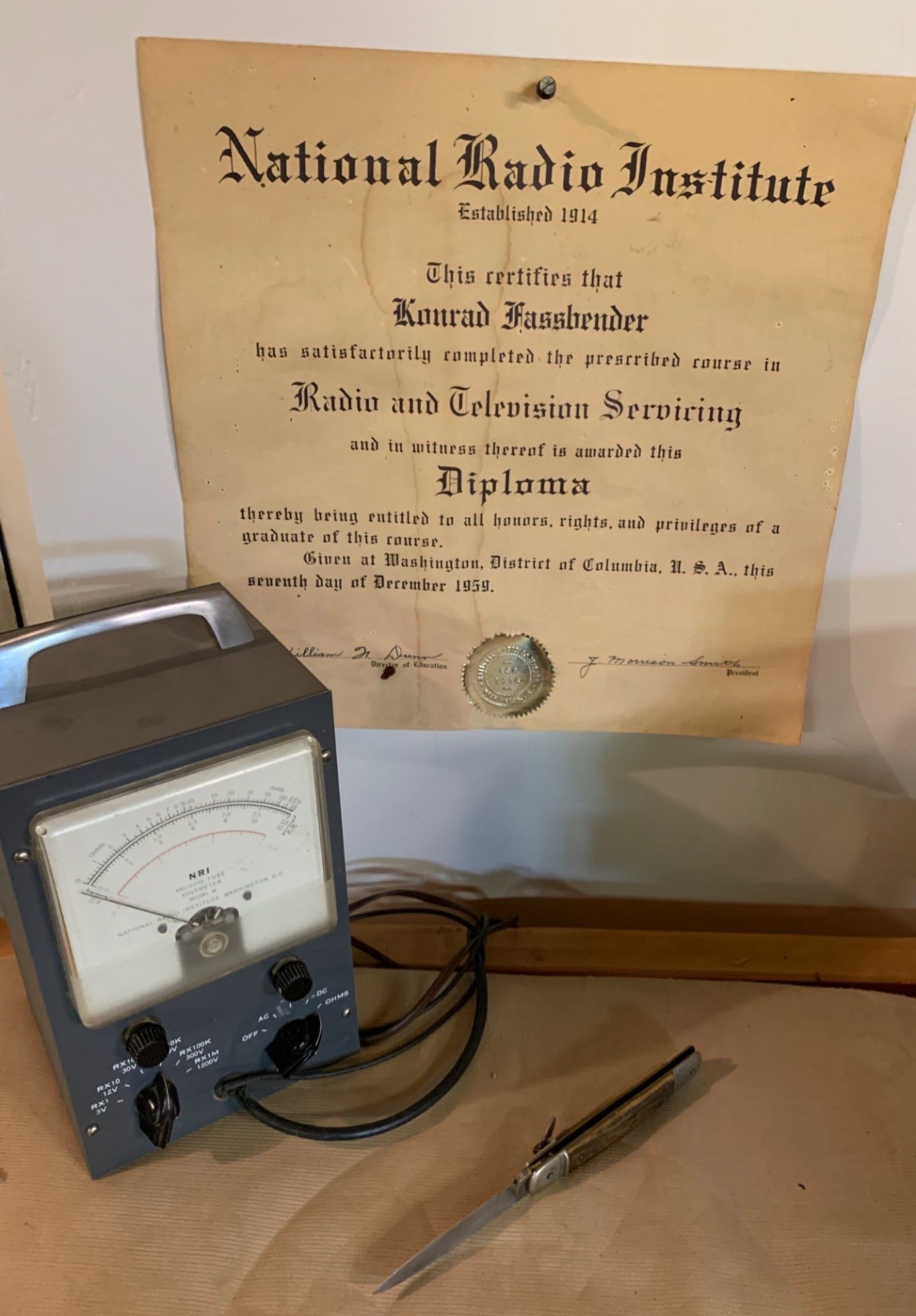Antique Radio Broadcasting Voltmeter & Course Completion Certificate