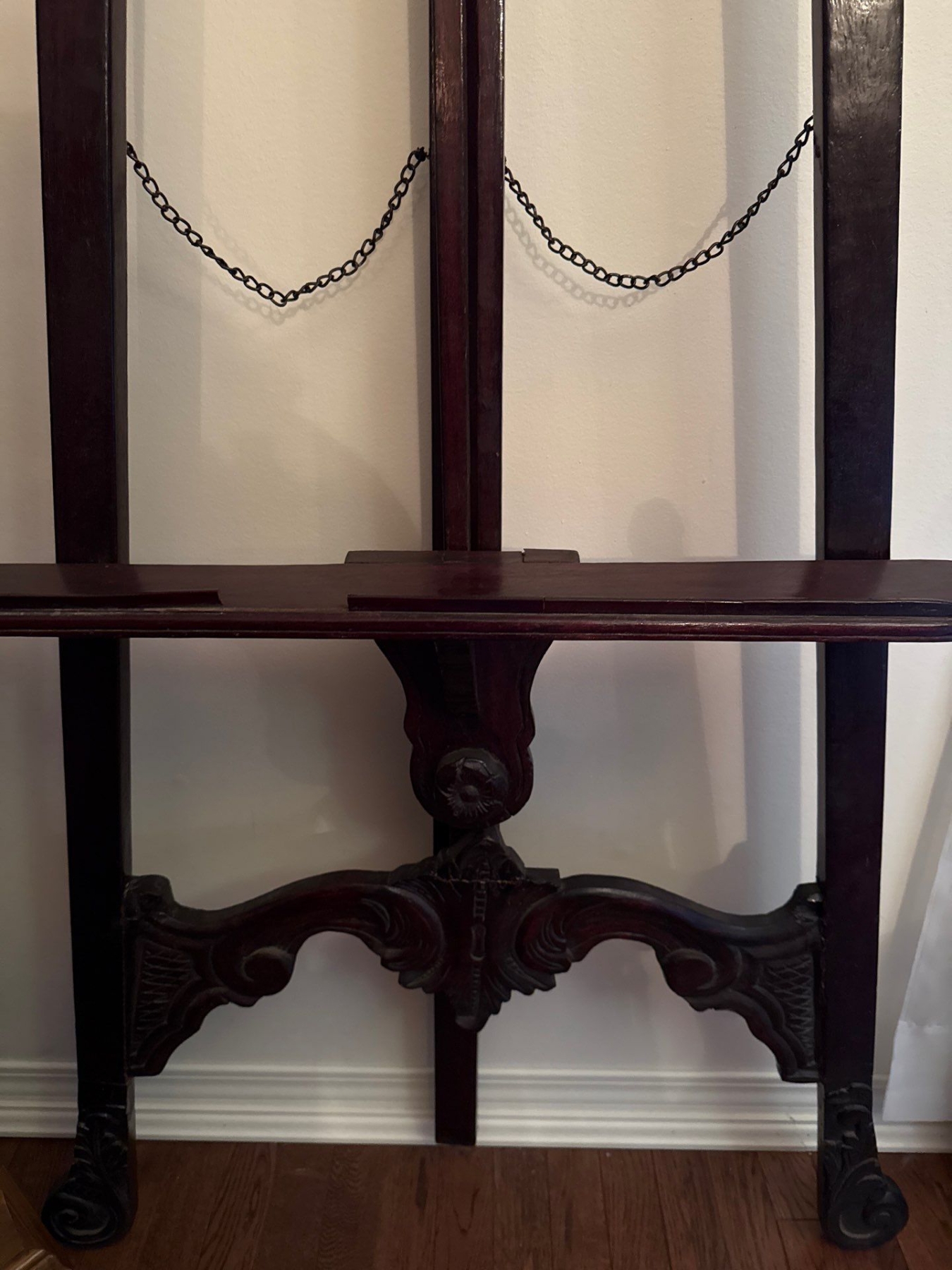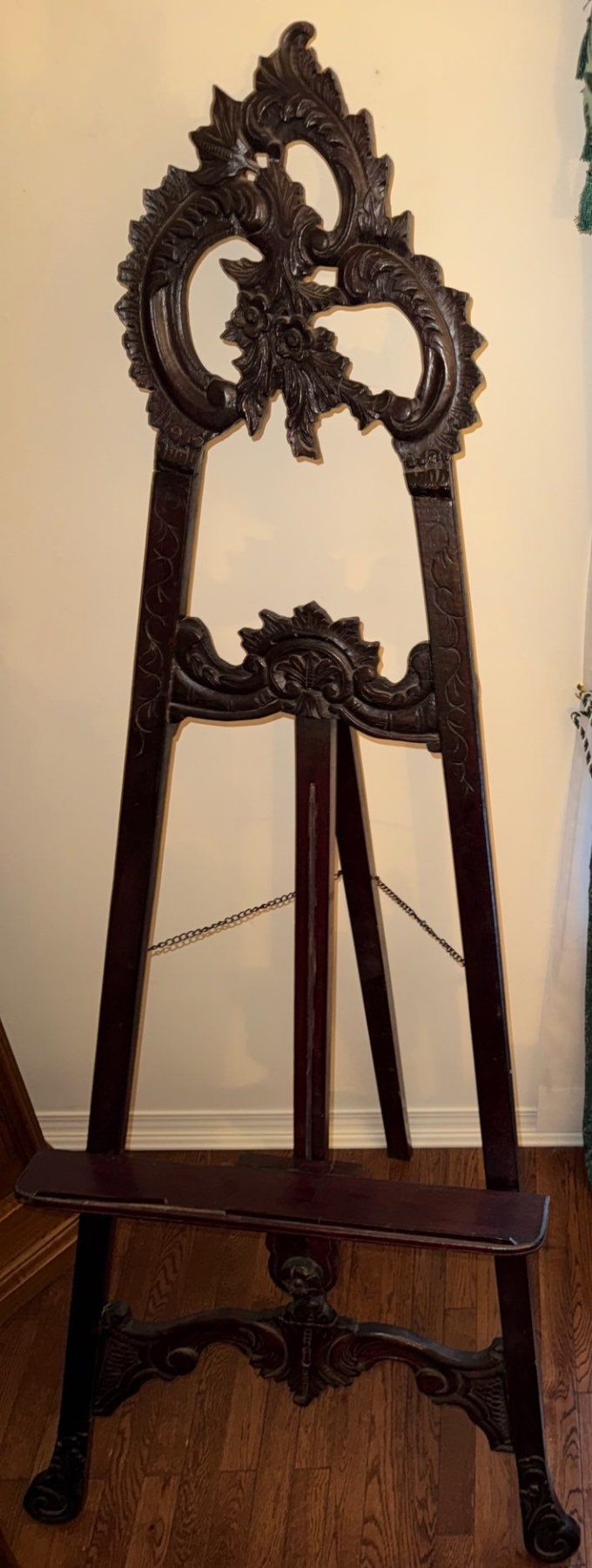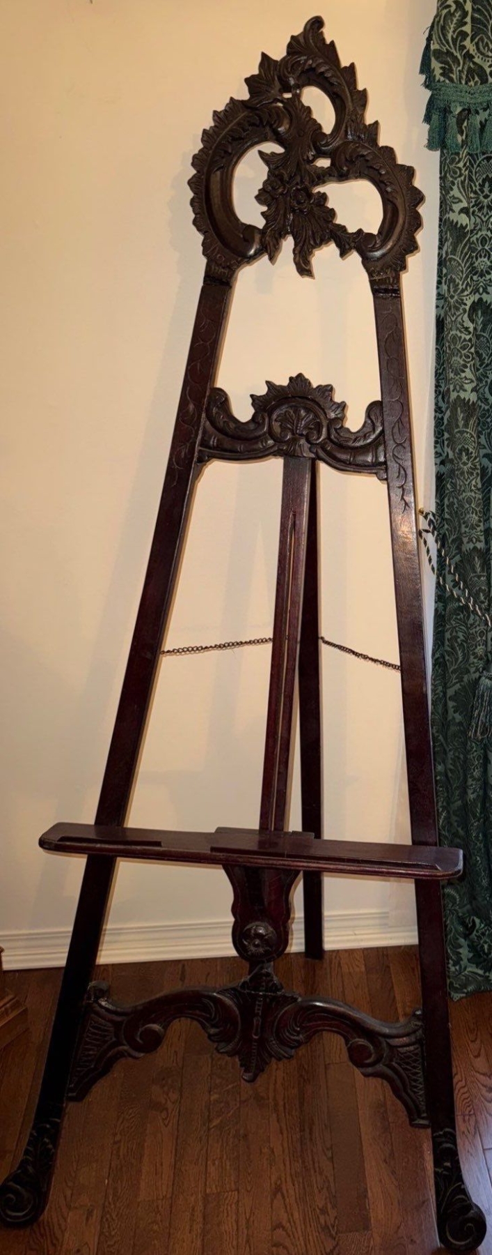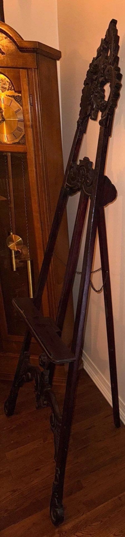 Antique Rococo-Style 20th Century Mahogany Rustic Hand Carved Easel