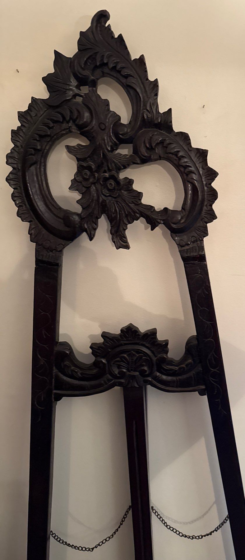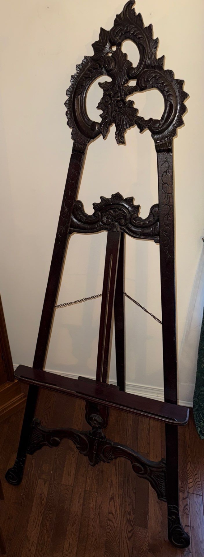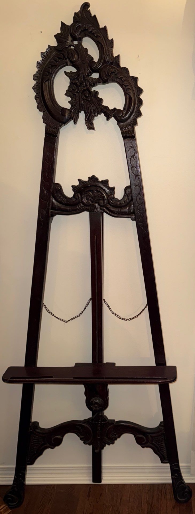 Antique Rococo-Style 20th Century Mahogany Rustic Hand Carved Easel