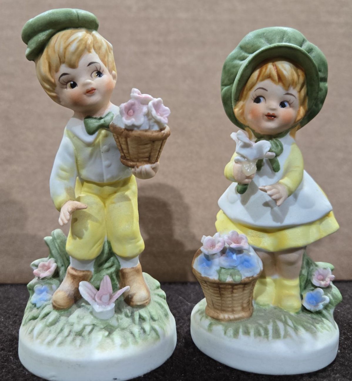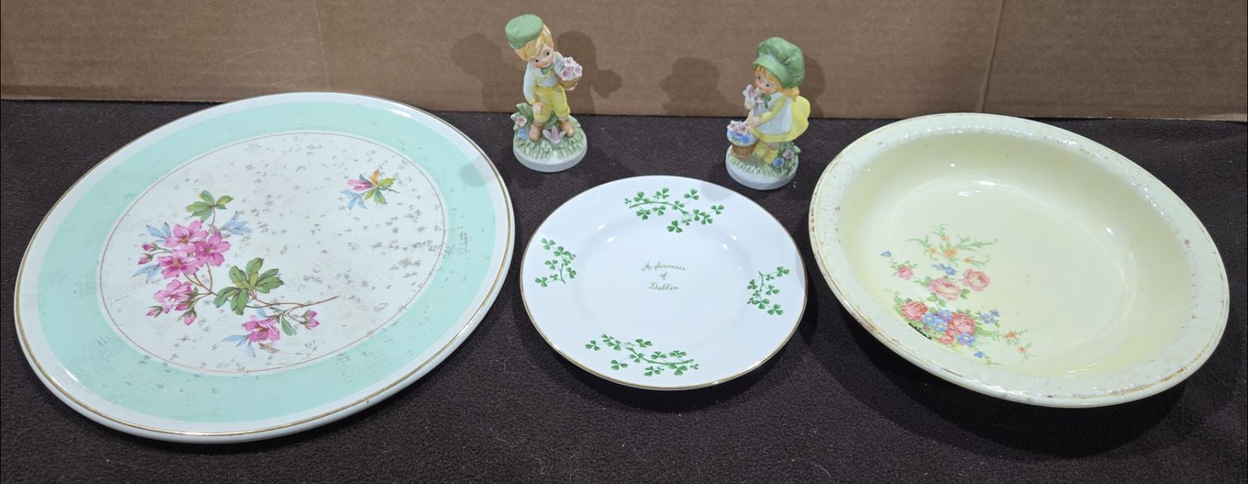 Antique Serving Bowl & Plate + Dublin Clover Tea Saucer + 2 Antique Hummels Boy + Girl