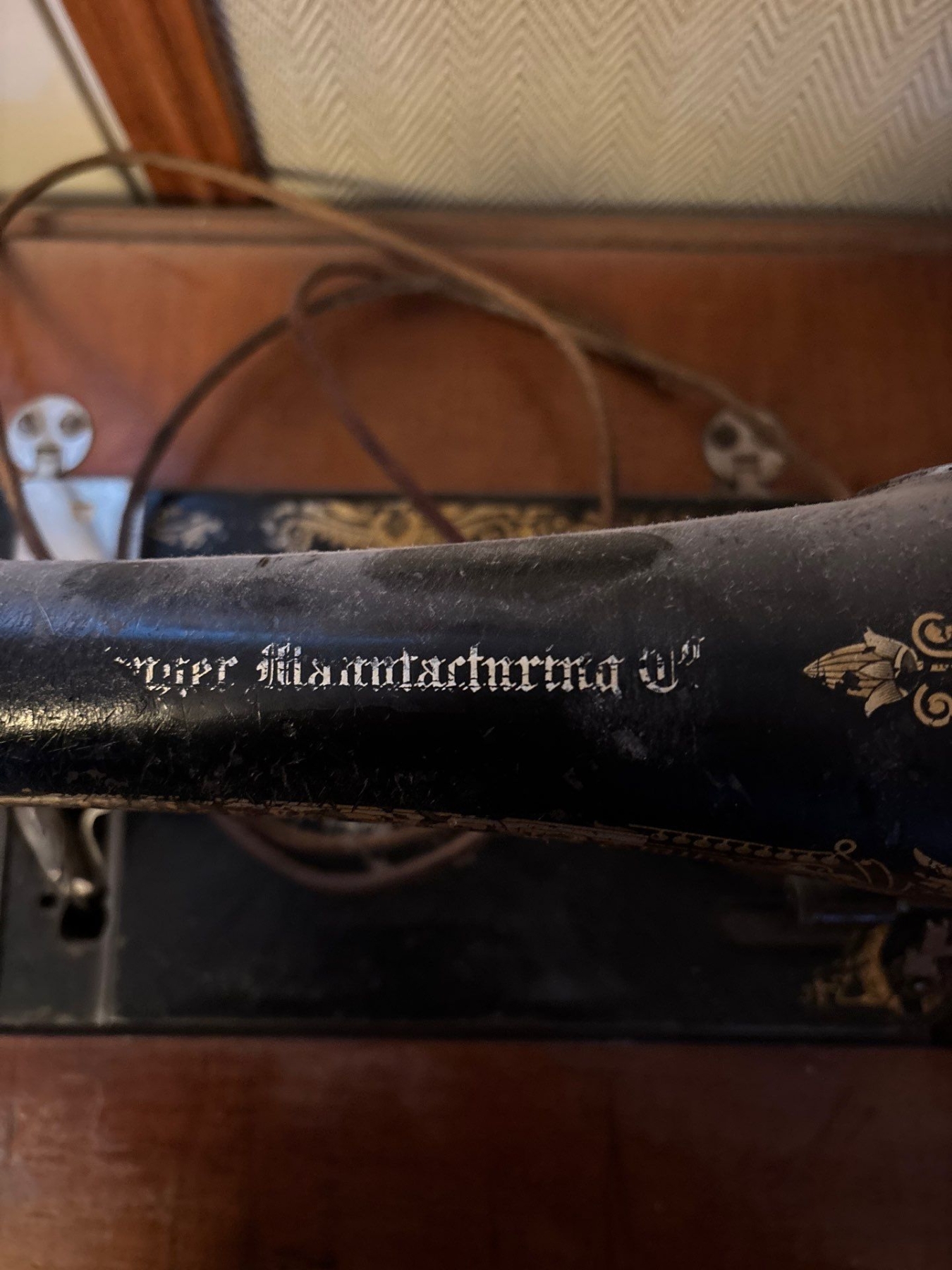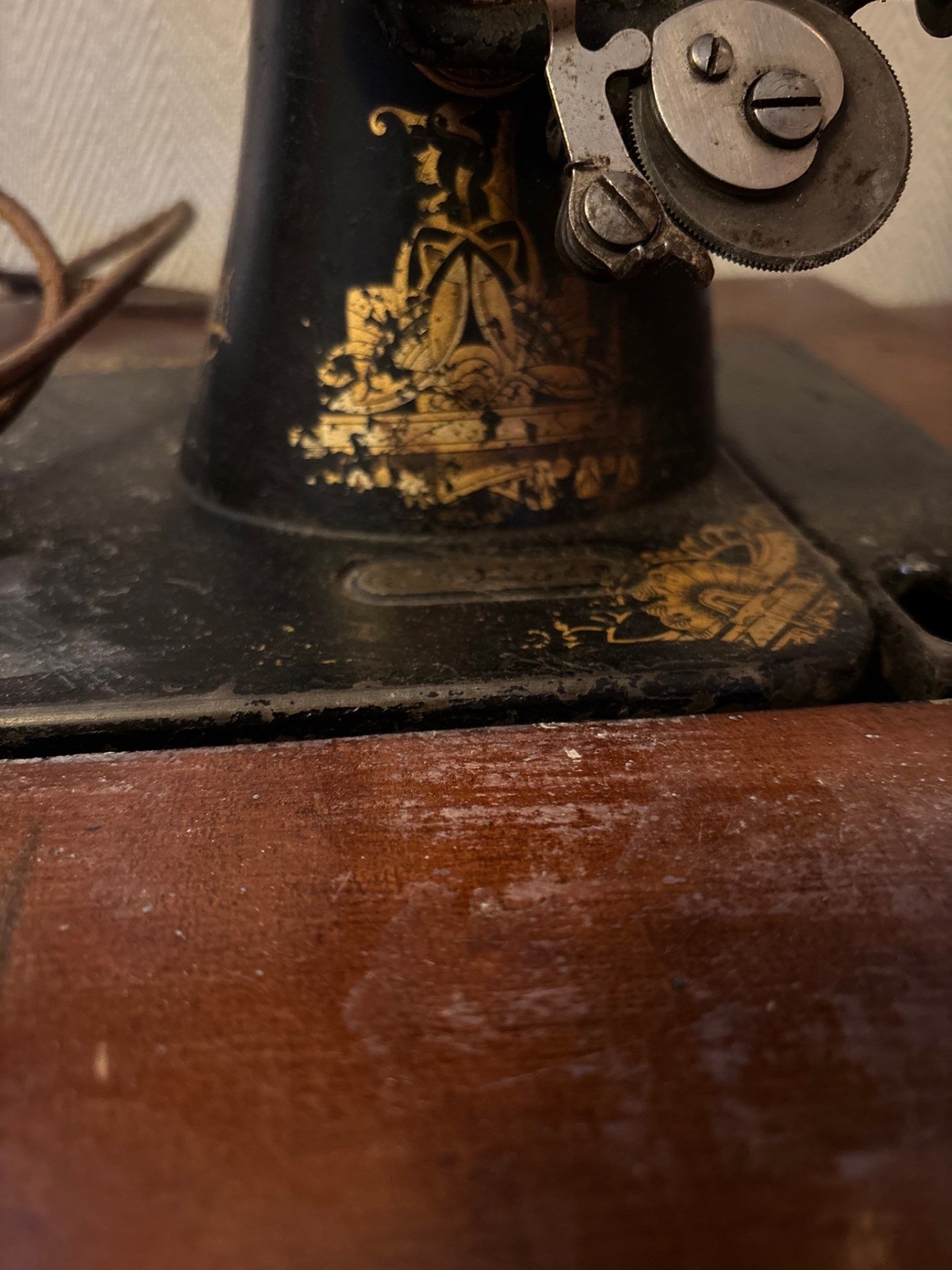 Antique Singer sewing machine, likely manufactured in the early 1900s, housed within its original wo