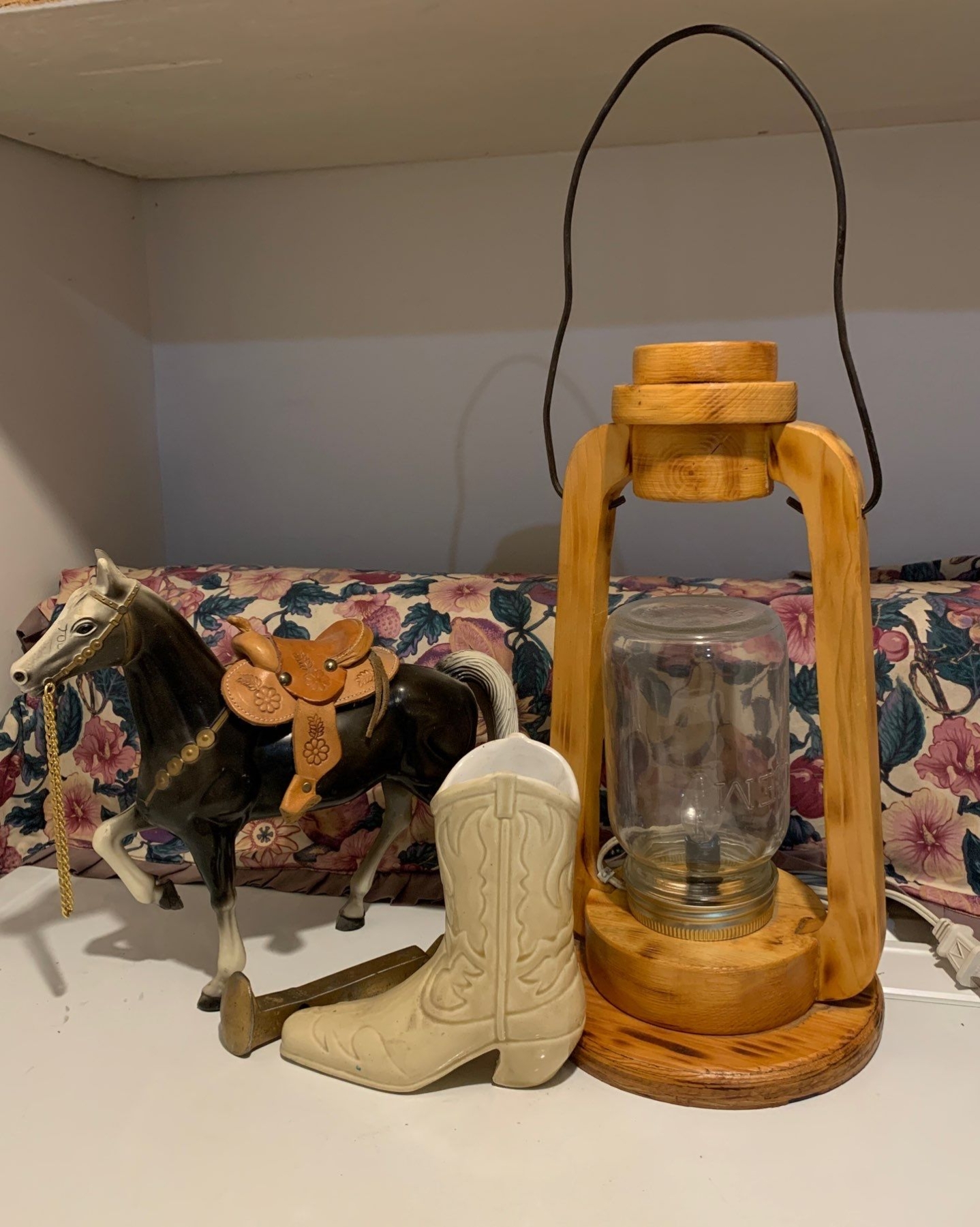 Antique Stallion 10L Electric Lantern Ceramic & Western Boot