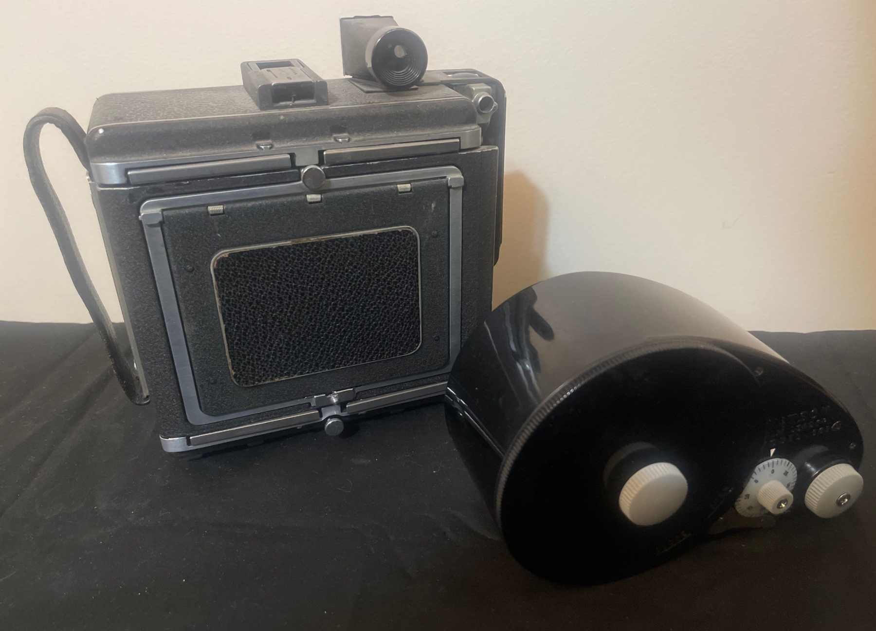 Antique TOWER Press Camera RM998 w/ Ronson Film Loader Mo.66B & Tripod on Casters