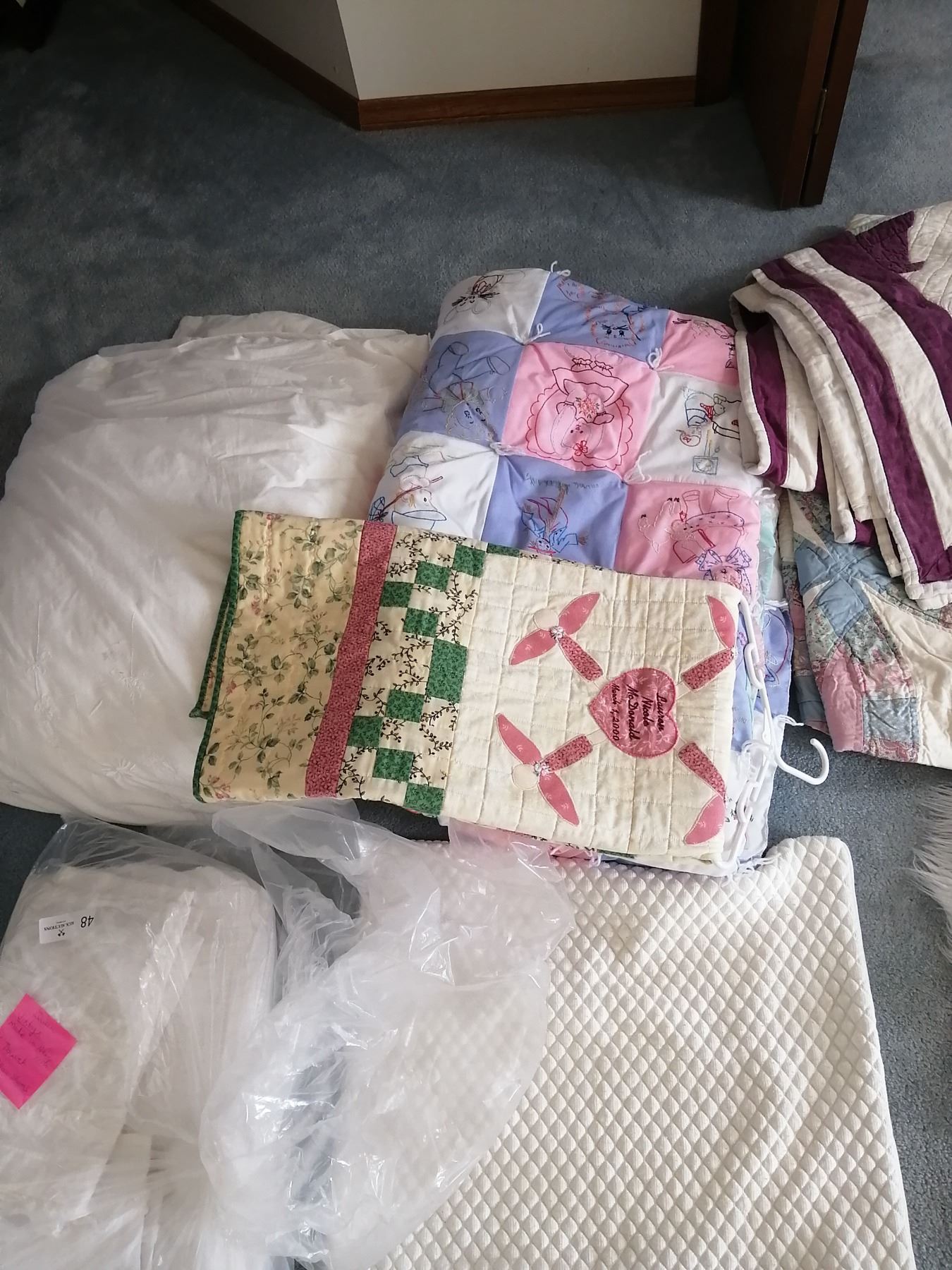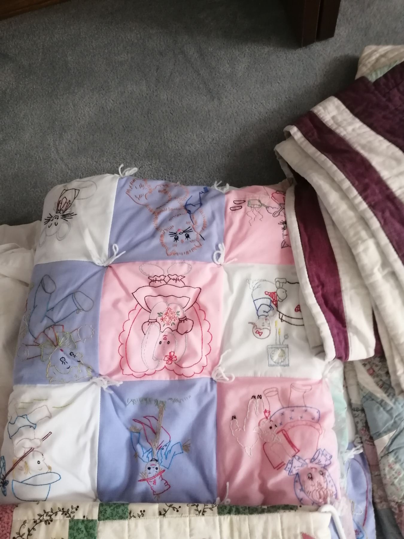 The pink and purple quilt is handmade!