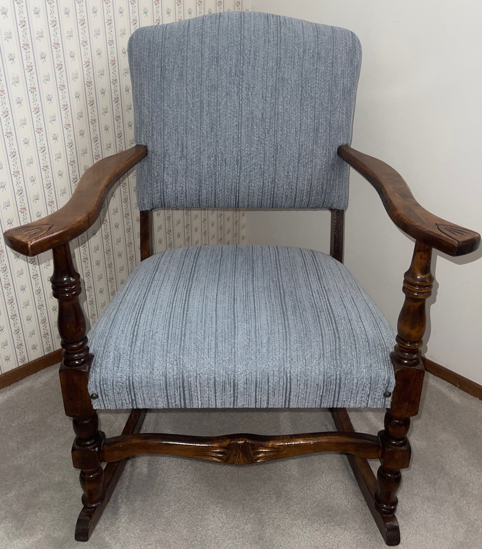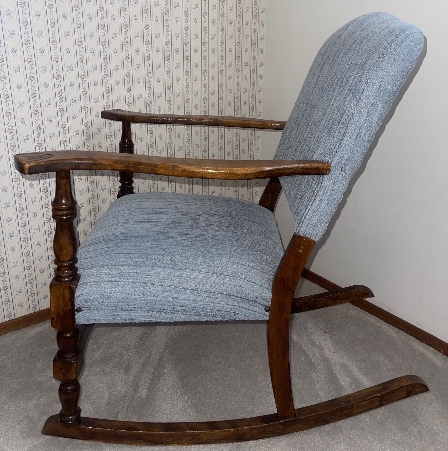 Antique Upholstered Rocking Chair - Spindle Style 34T