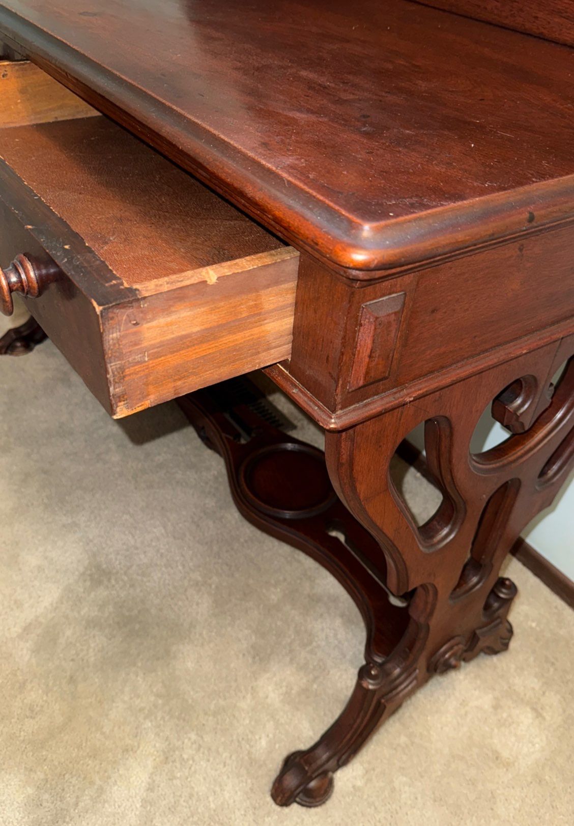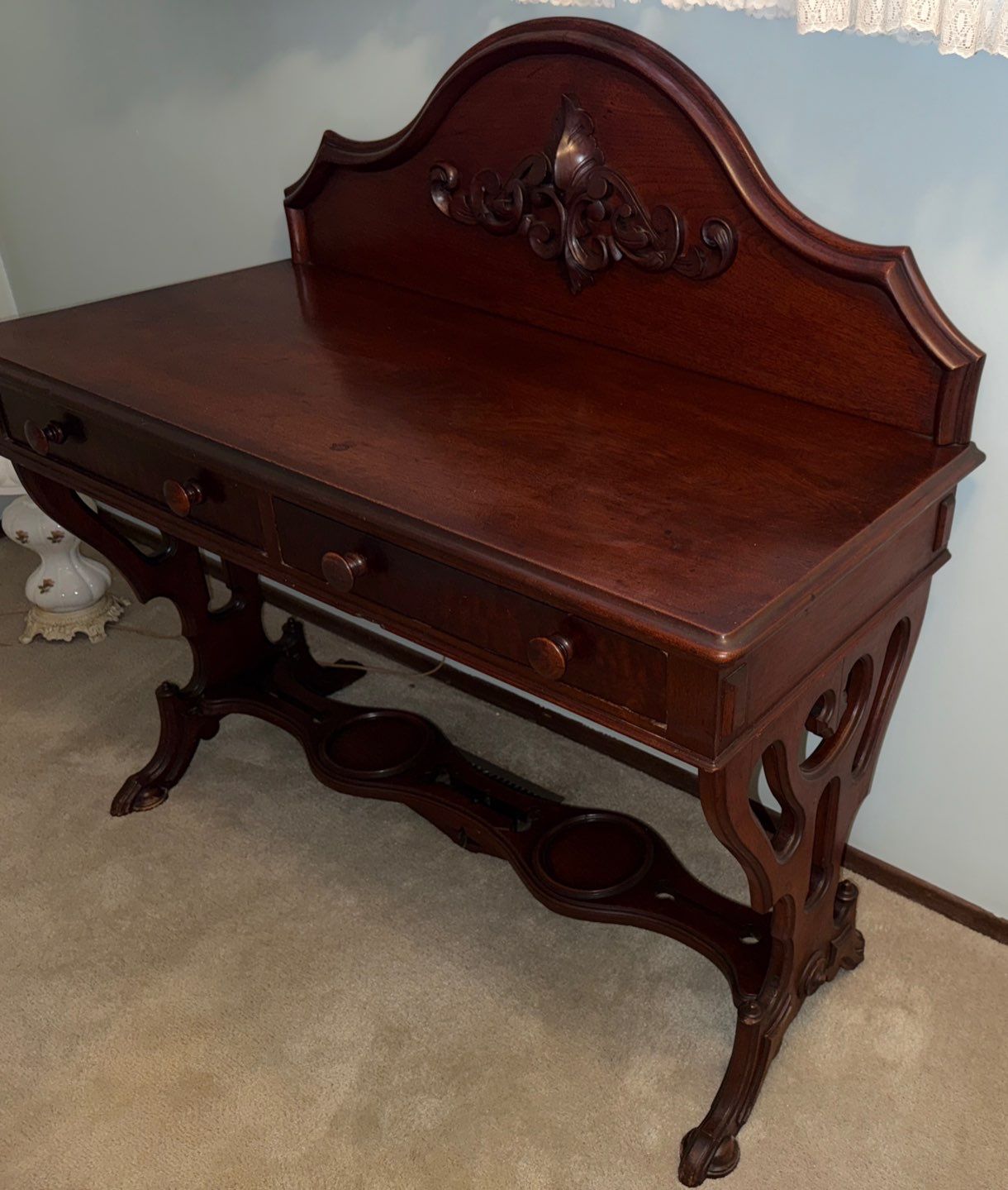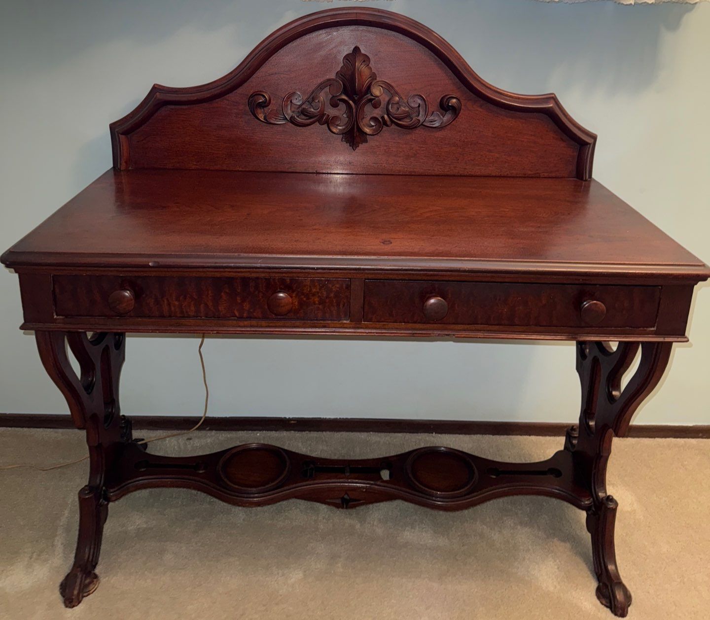 Antique Victorian Carved Walnut Secretary Desk/Vanity Late 1800's