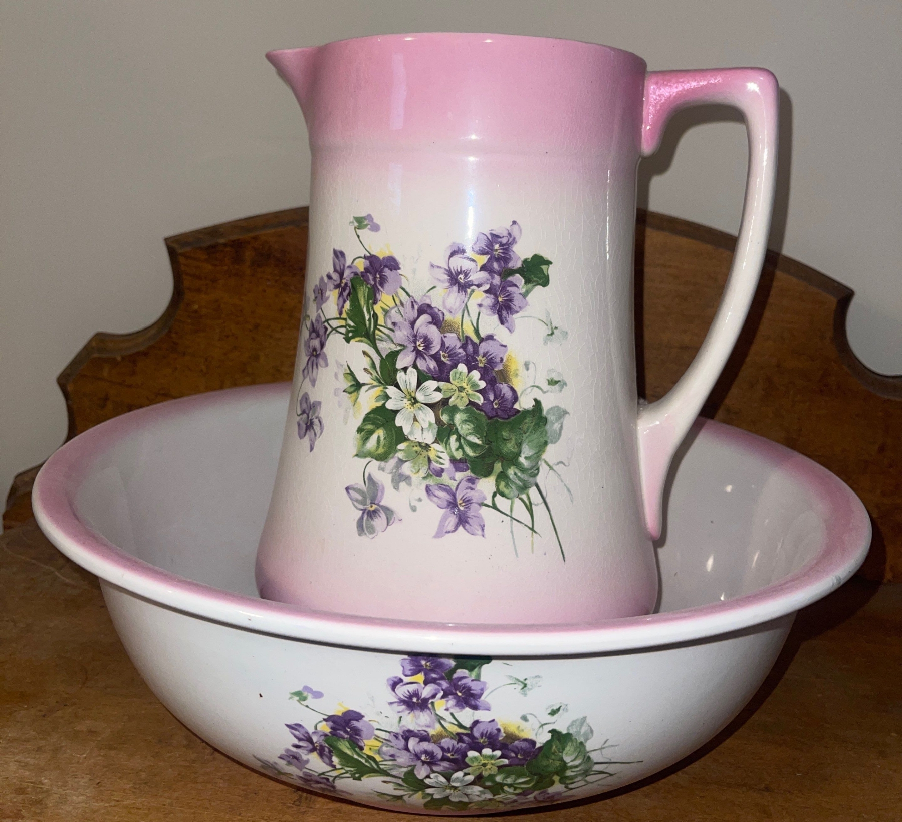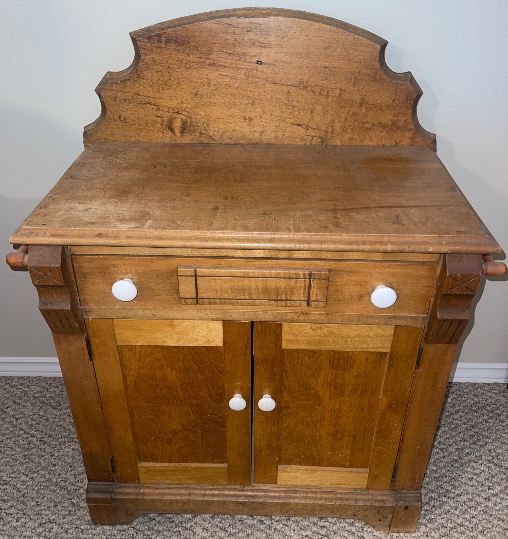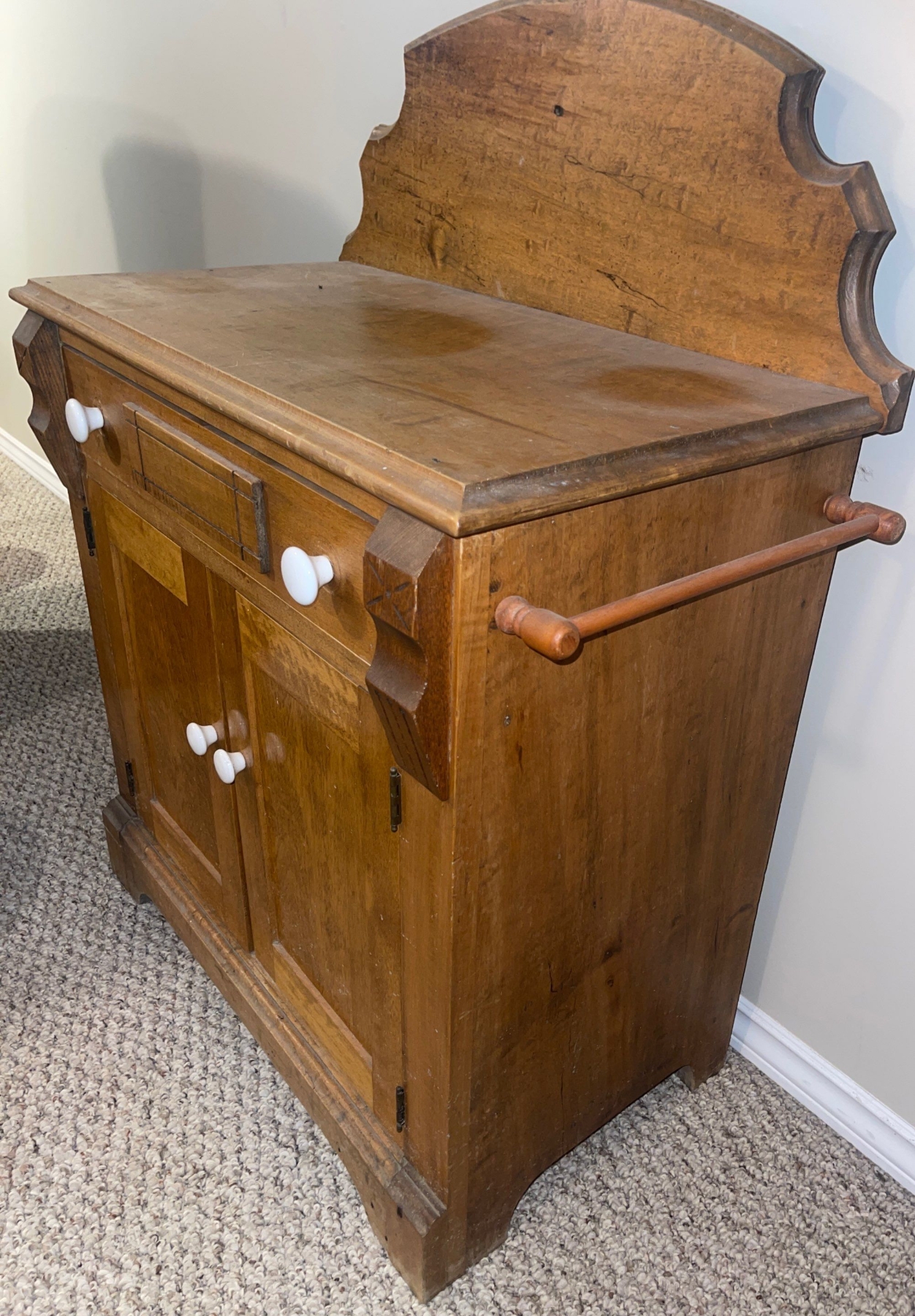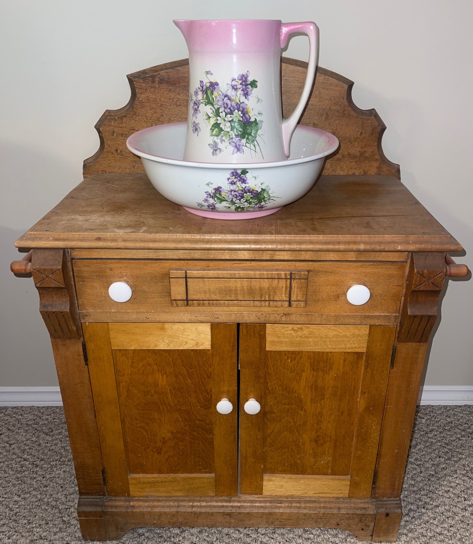 Antique Victorian Hand Painted Floral Dry Sink w/ Oak Cabinet 28x17x28