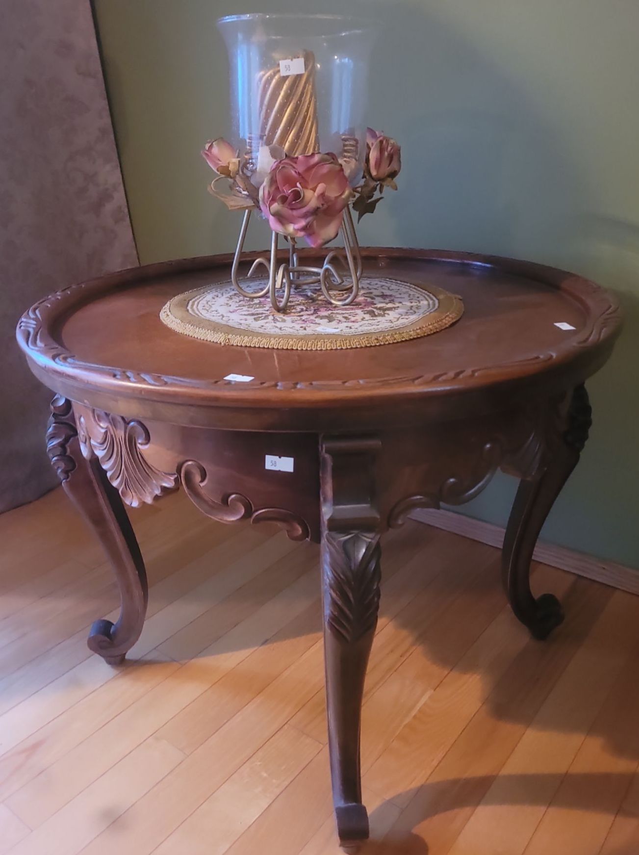 Antique Victorian Wooden Side Table w/ Decorative Piece - 24W, 19T