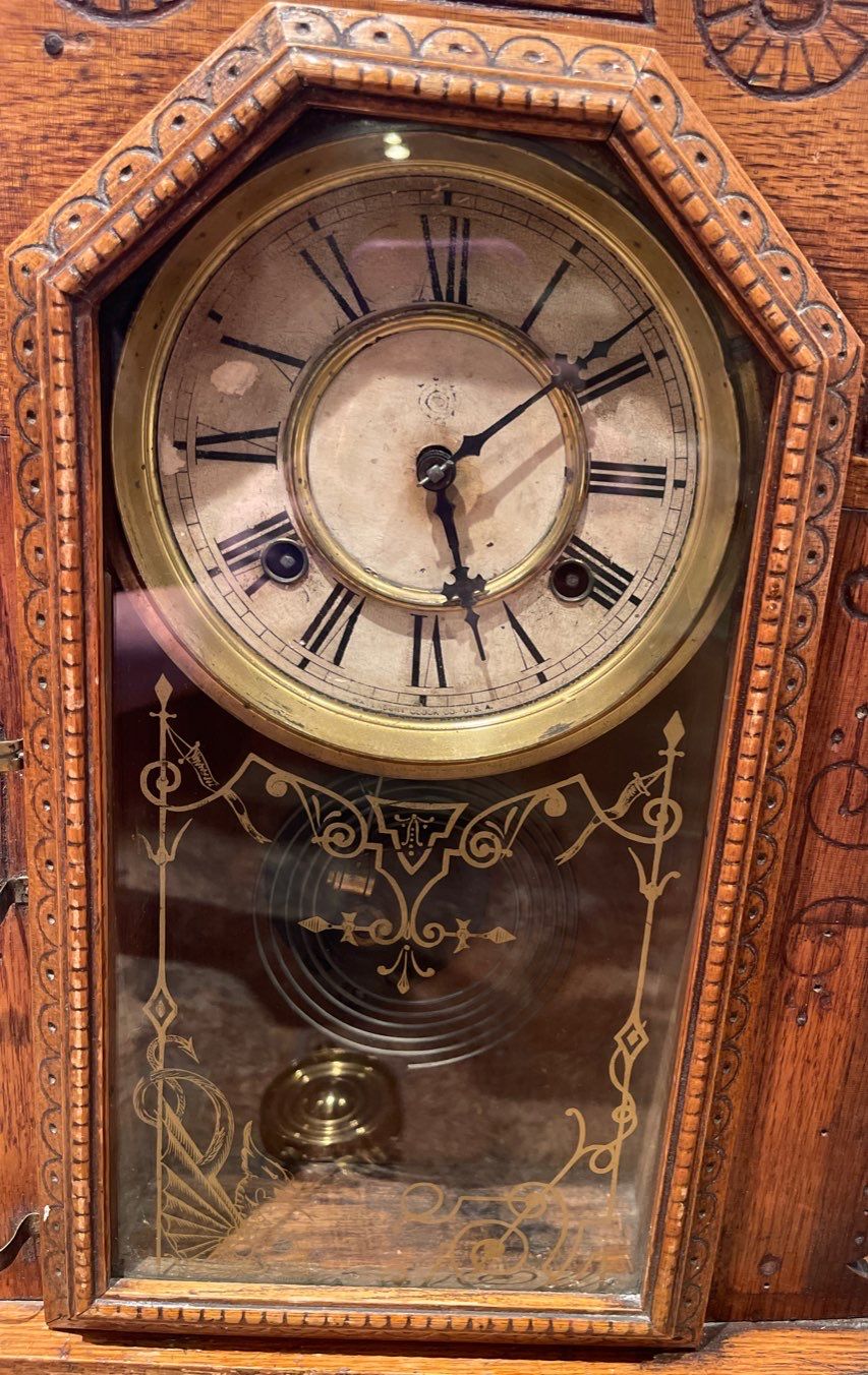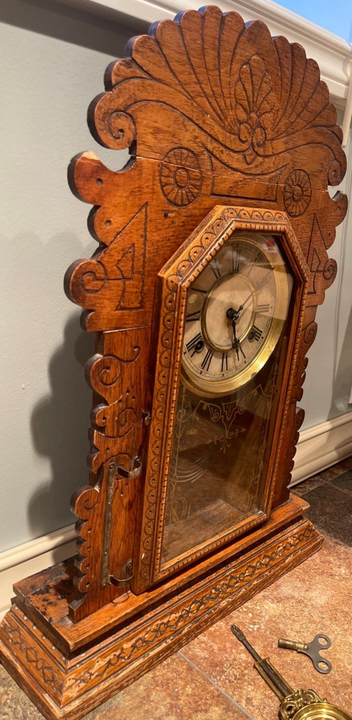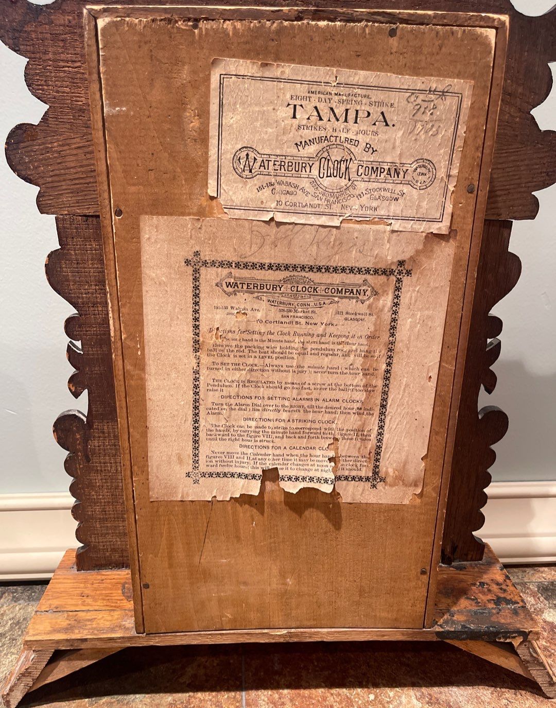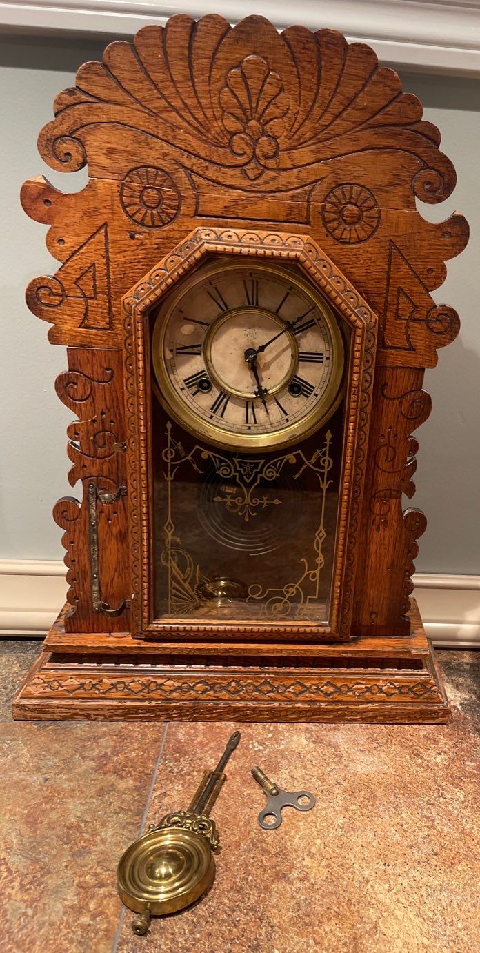 Antique Waterbury 'Tampa' Gingerbread Mantle Clock w/ Original Pendulum & Key 16T