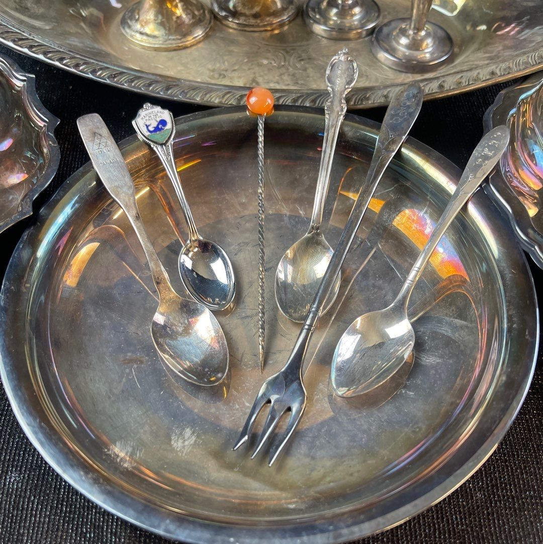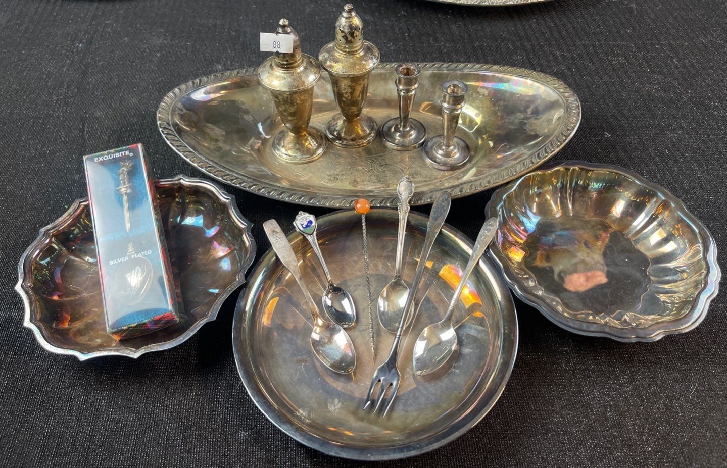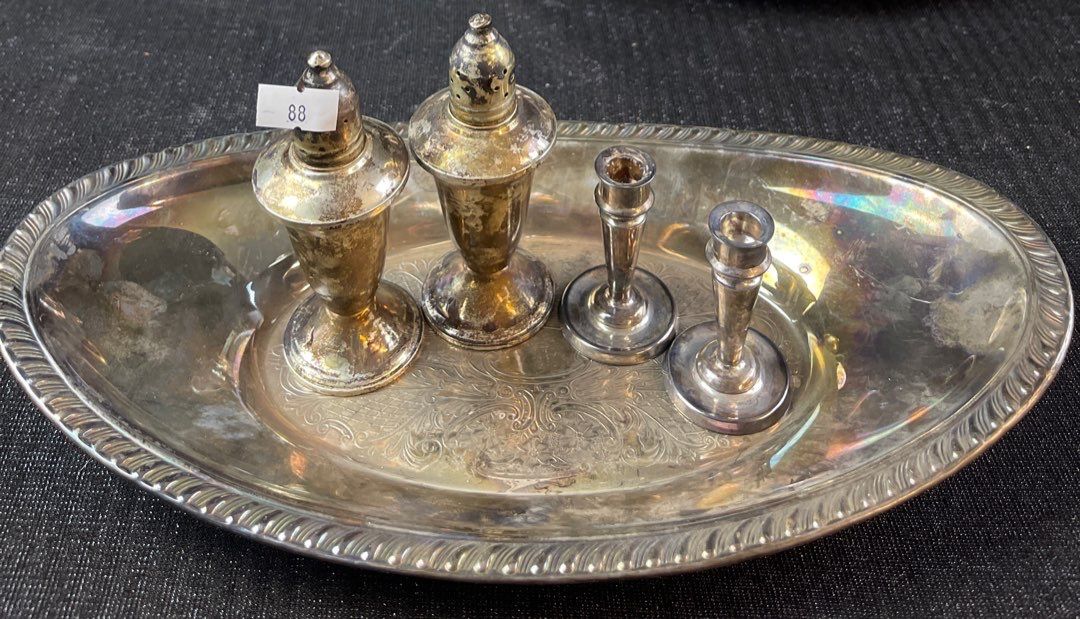 Antique Weighted Sterling Salt & Pepper Shakers w/ Pewter Party Platters & More