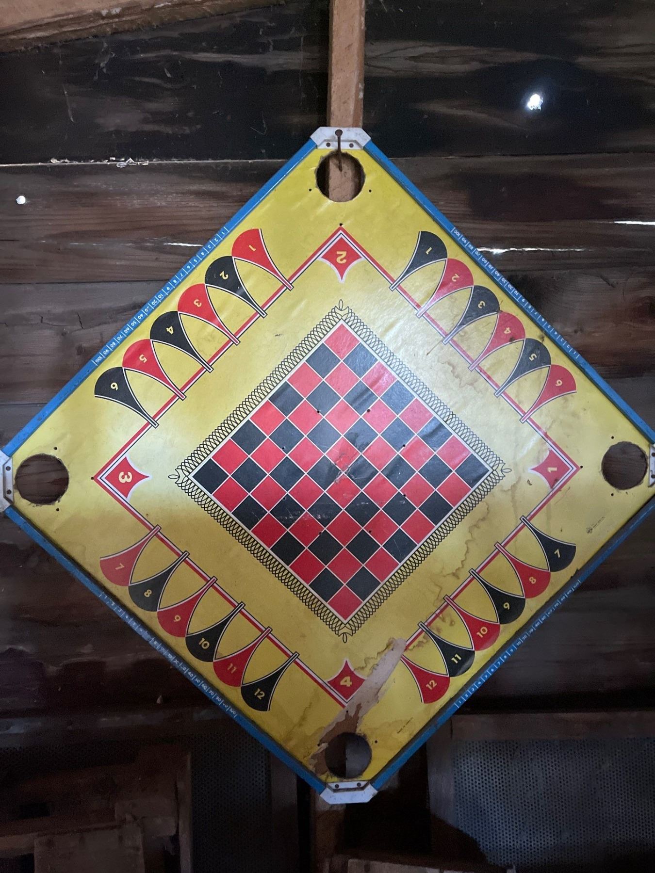 Antique Wood Checker Game Board