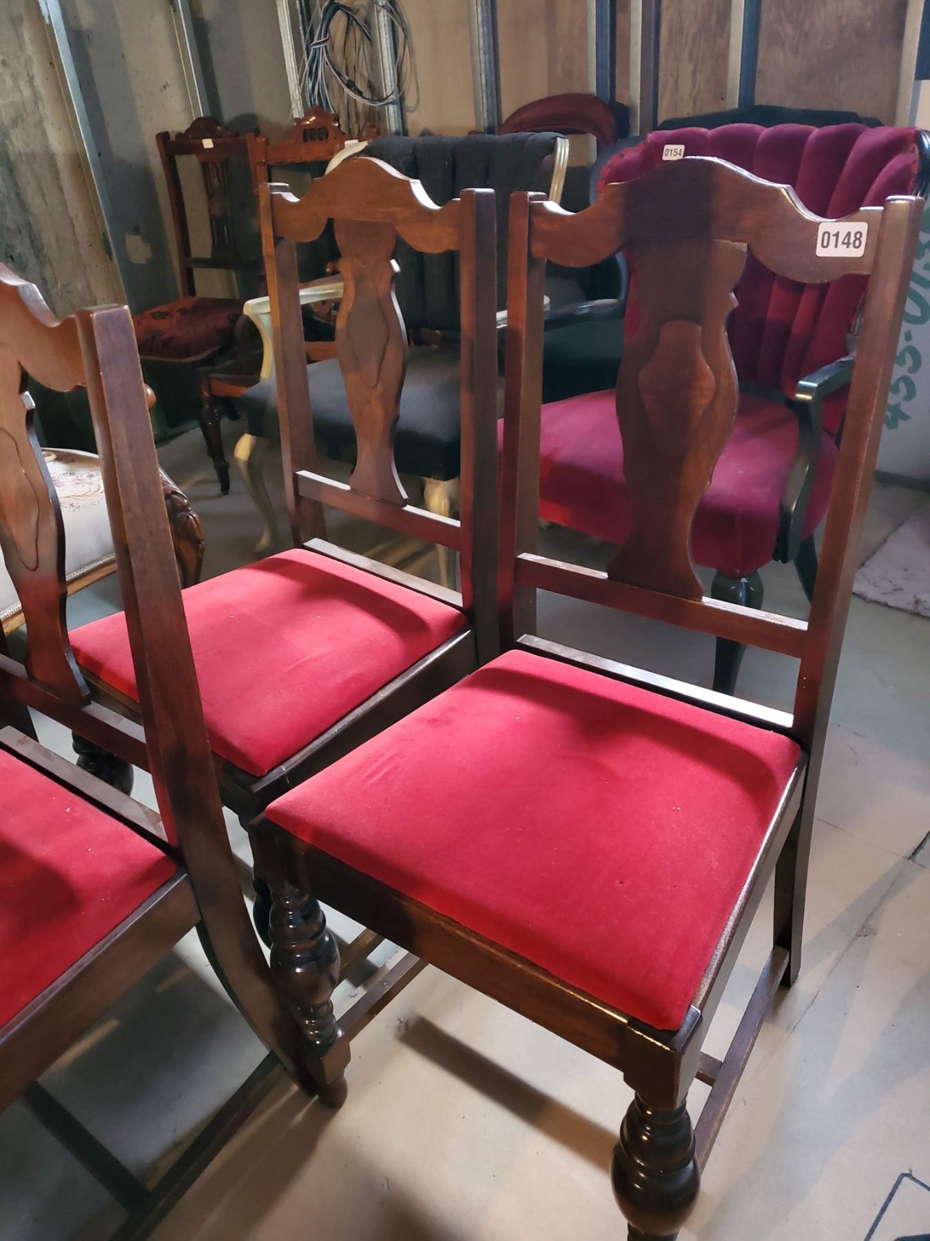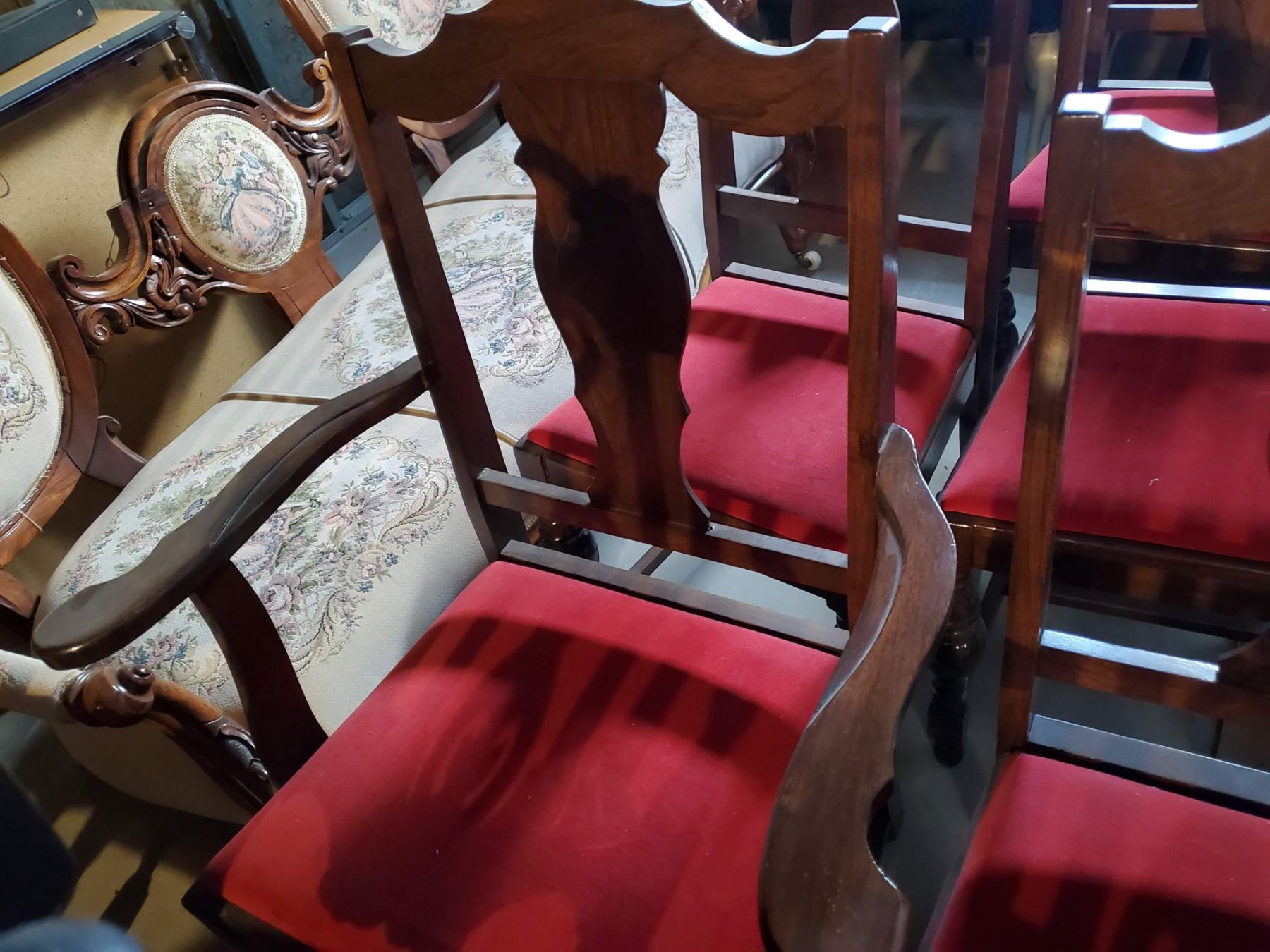 Antique Wood Velvet Cushioned Chairs