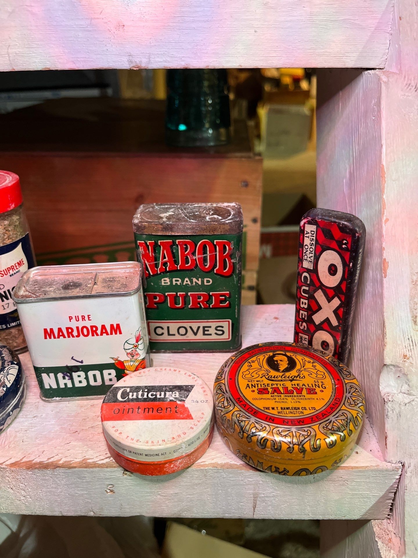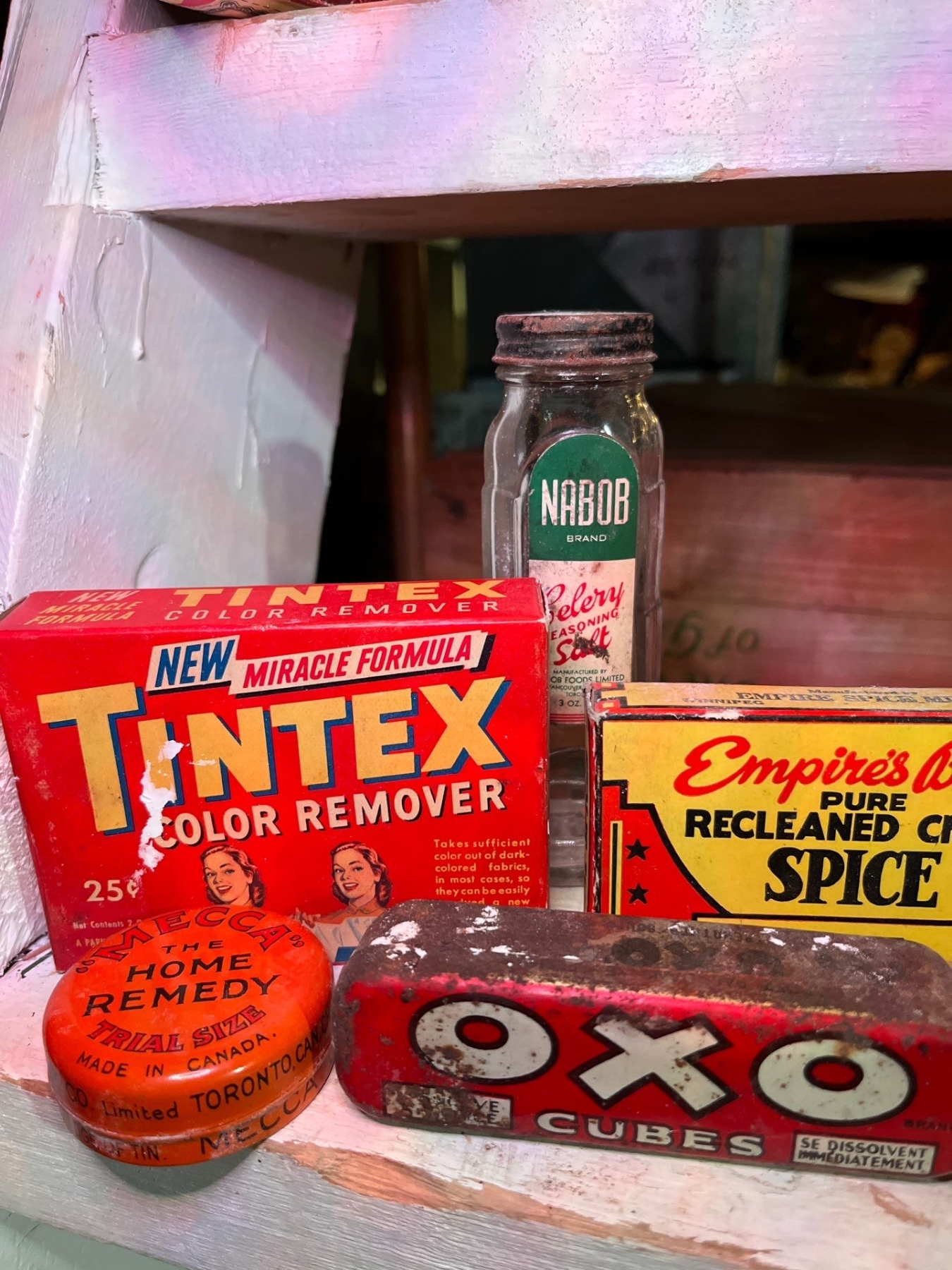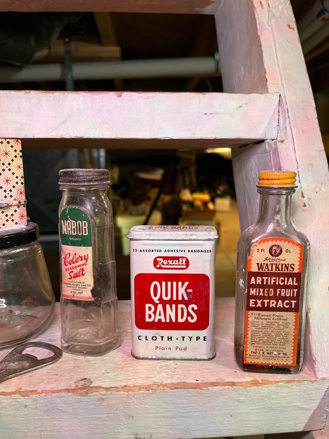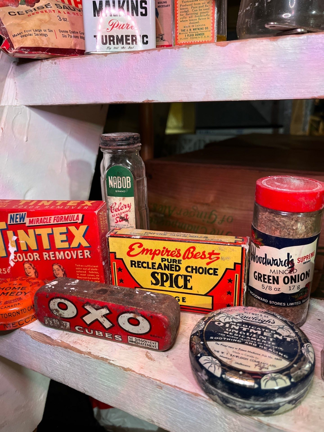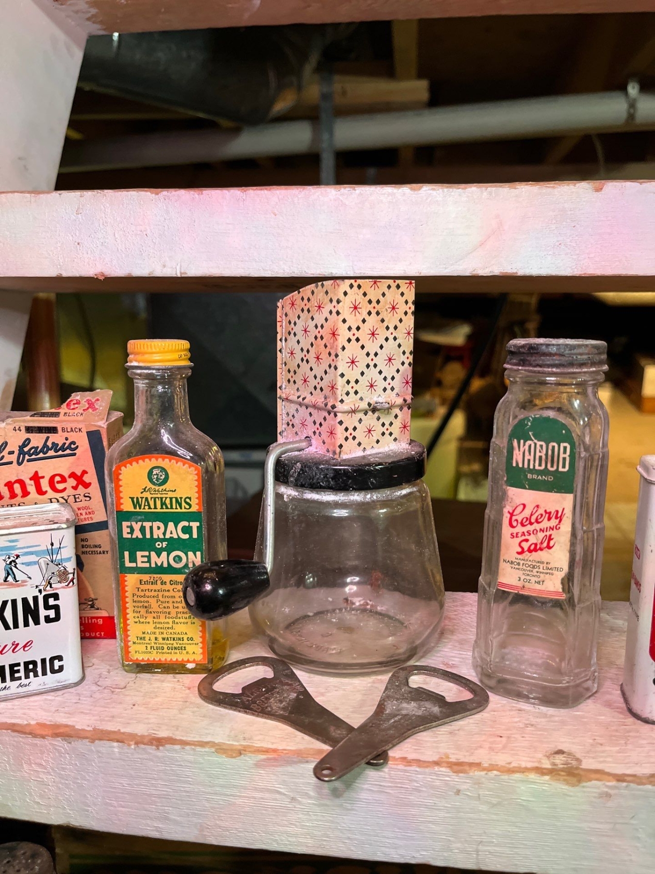 Antique collection of kitchen pantry items all in great condition. Great to add for any collection.