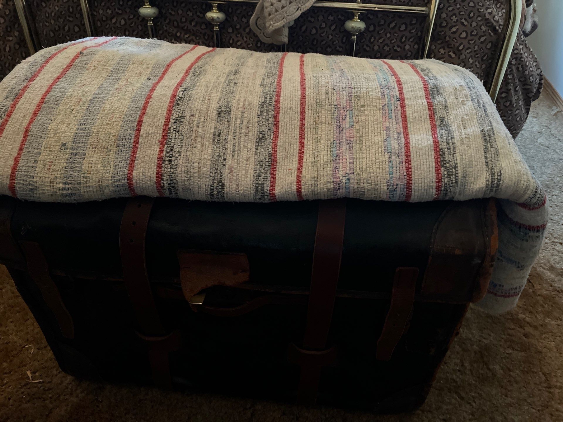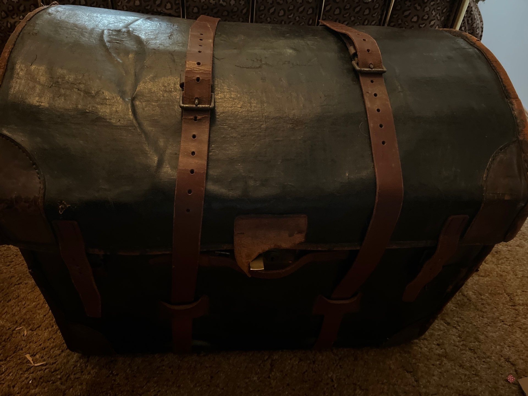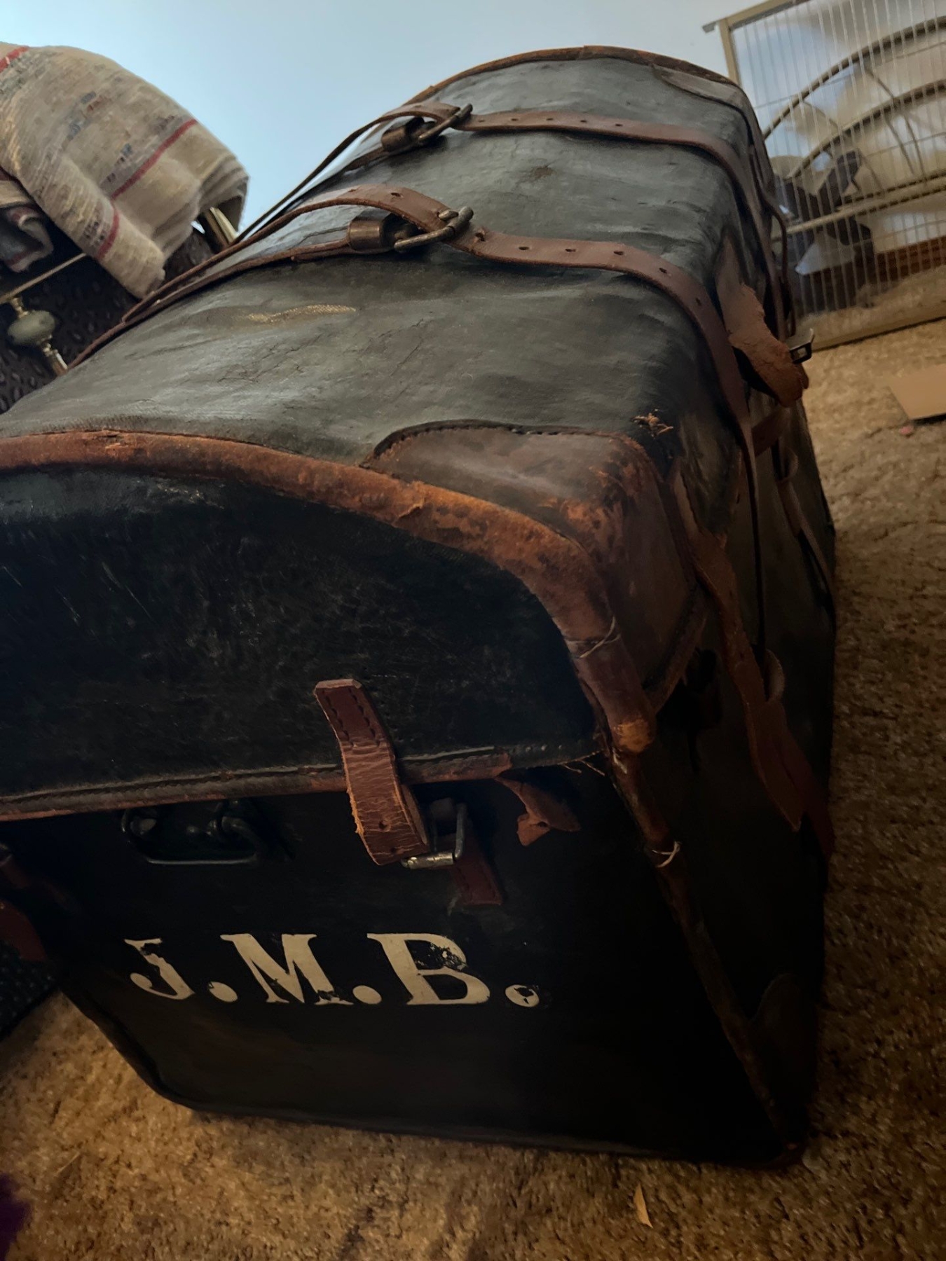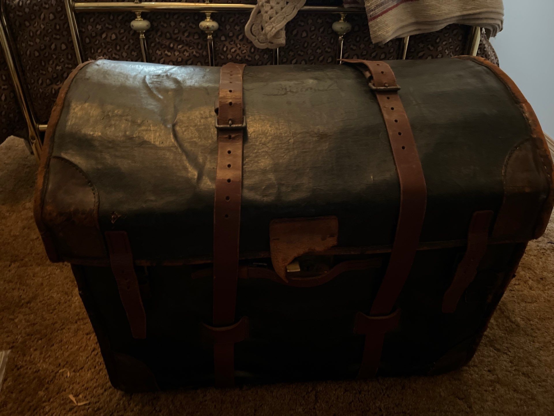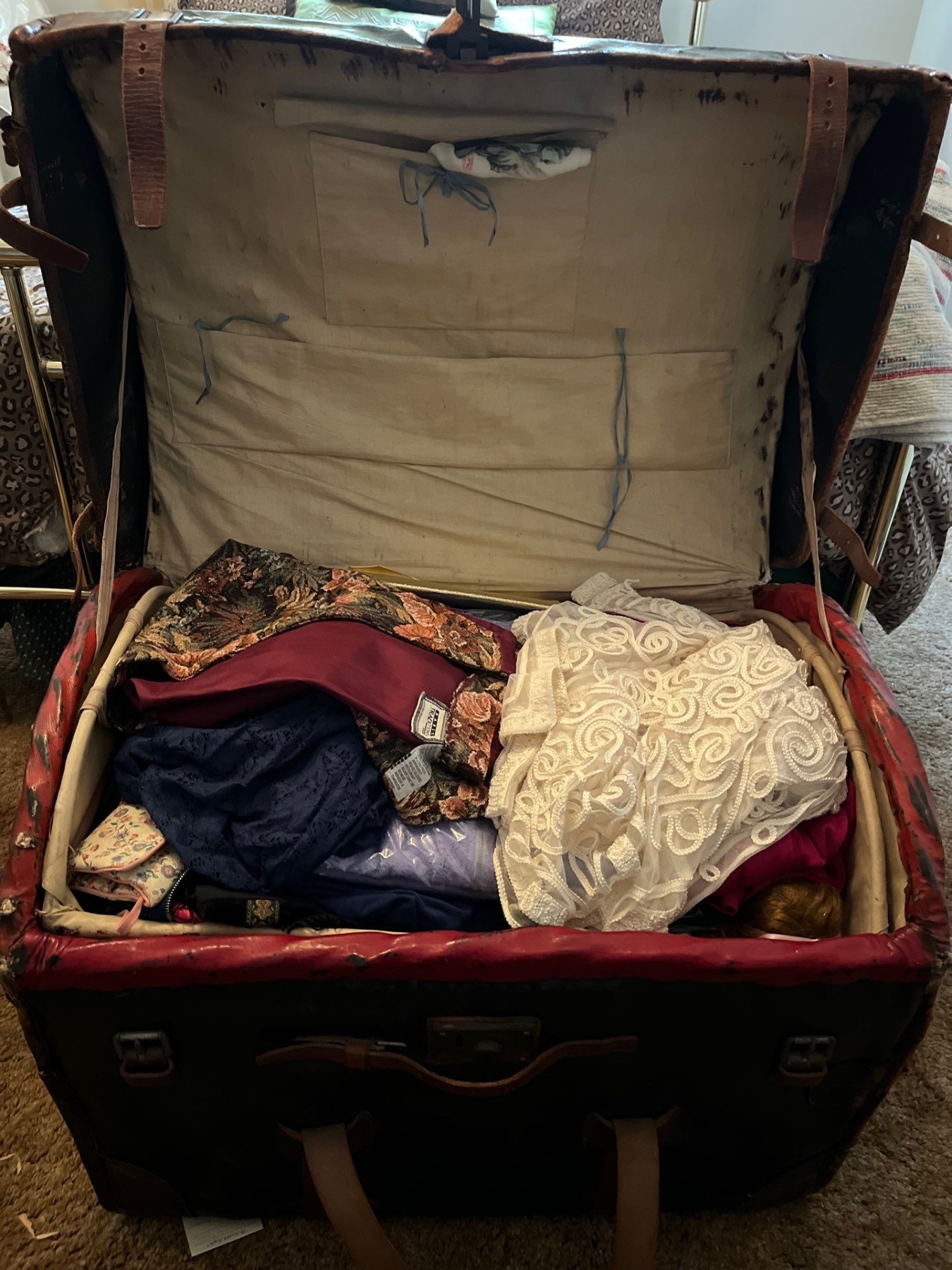 Antique leather shipping trunk with all contents