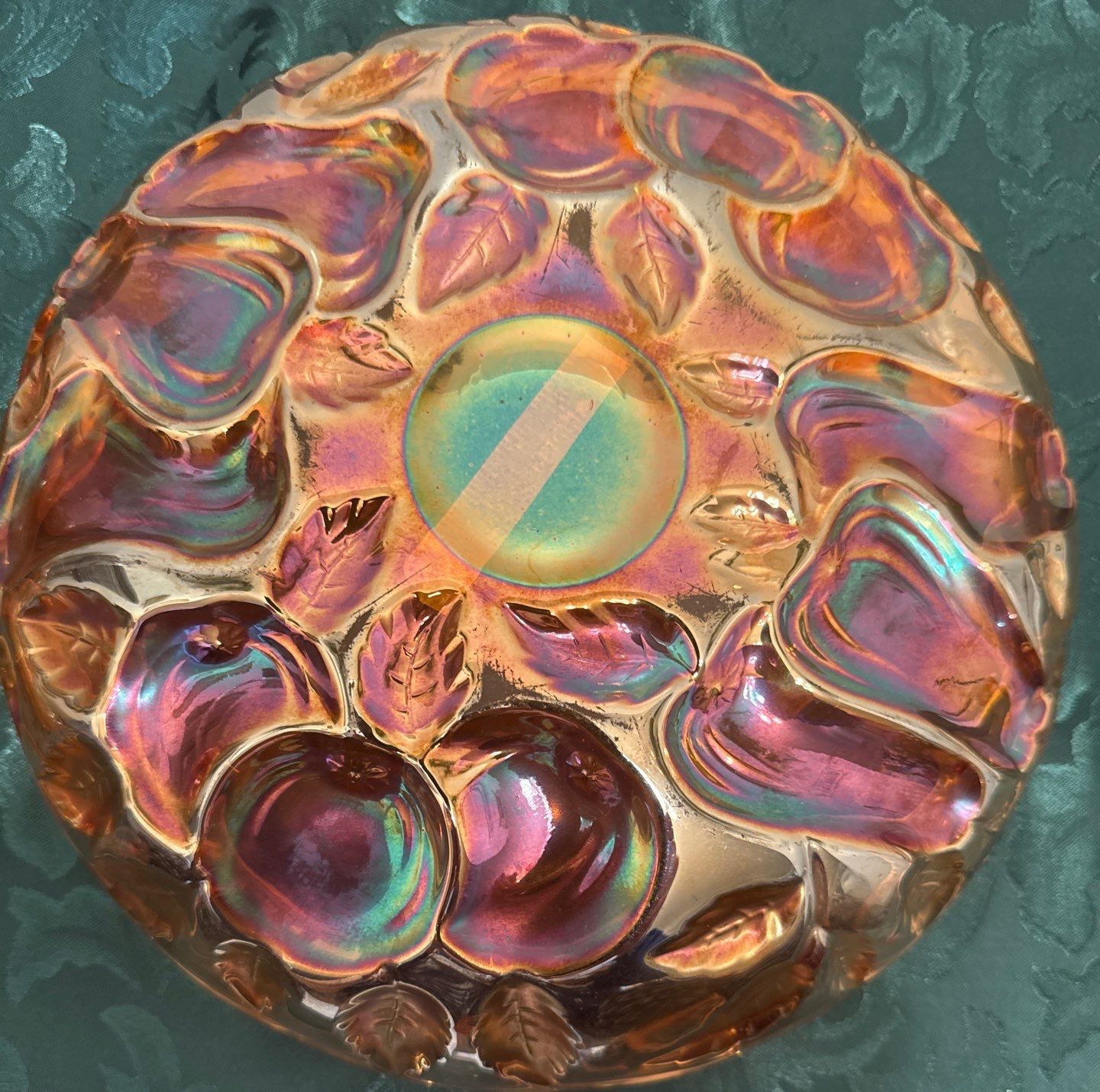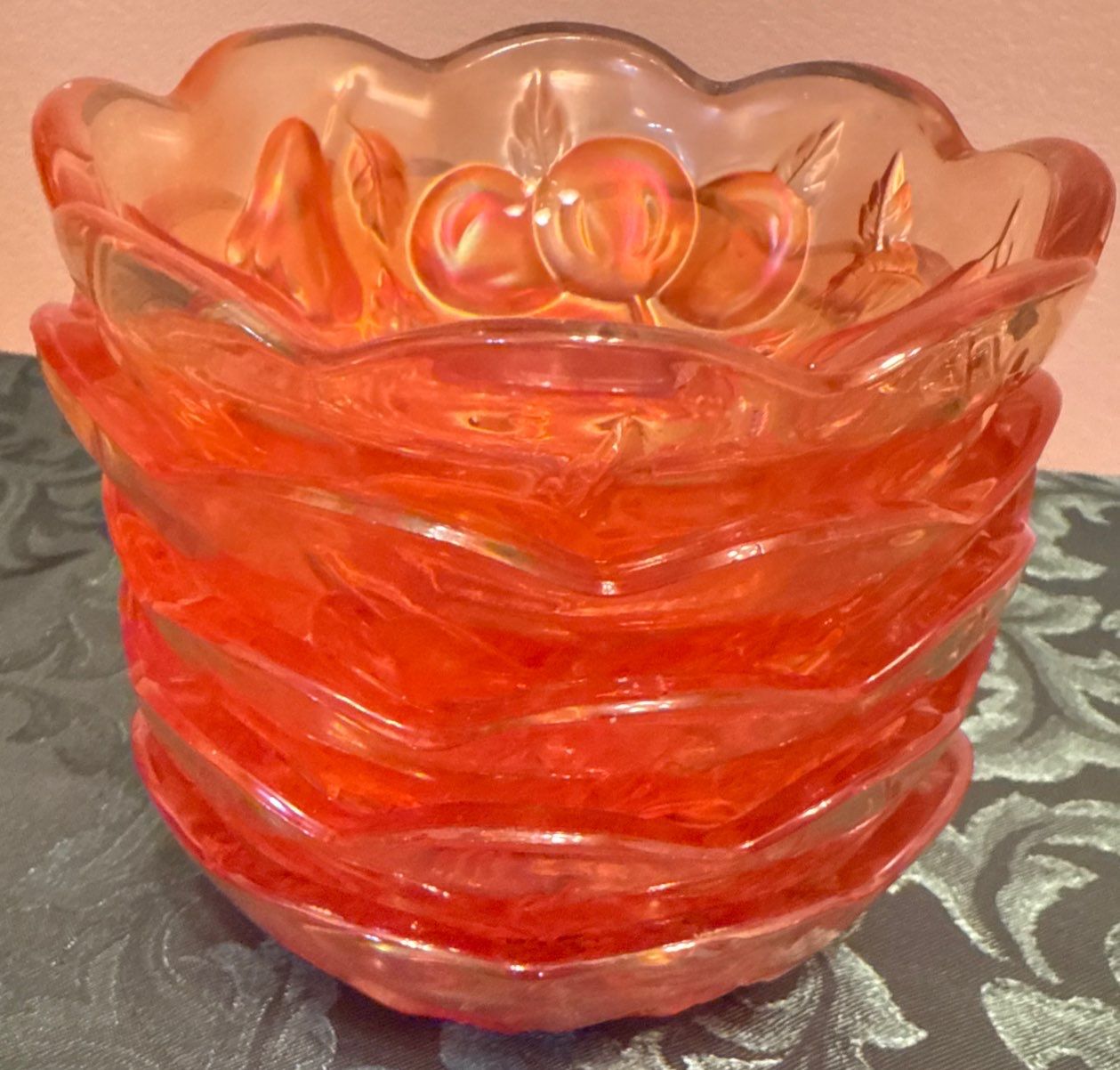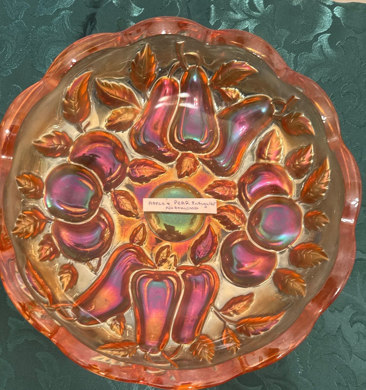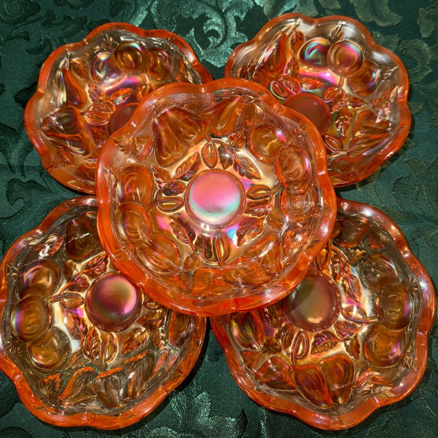 Apple & Pear Intaglio Master Bowl & 5 Berry Bowls Marigold Carnival Northwood Co.