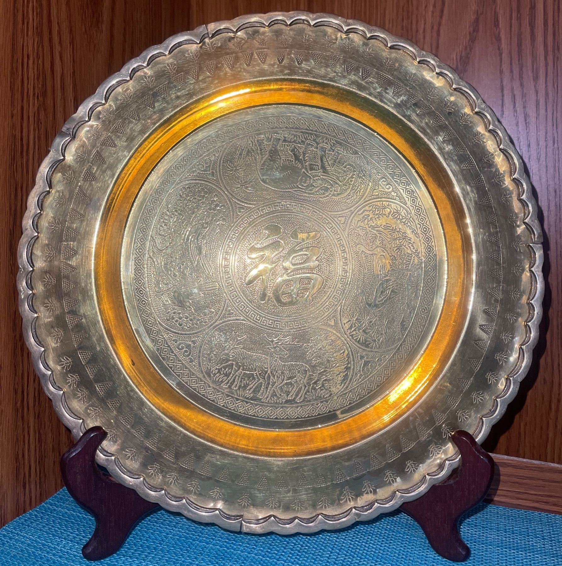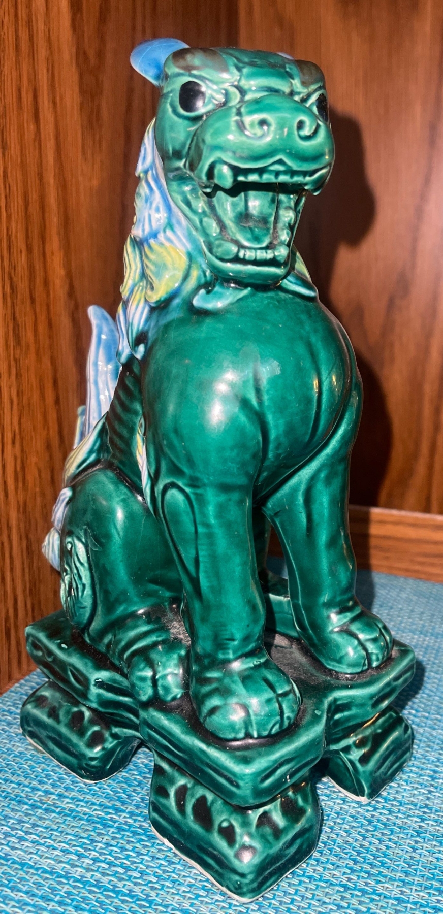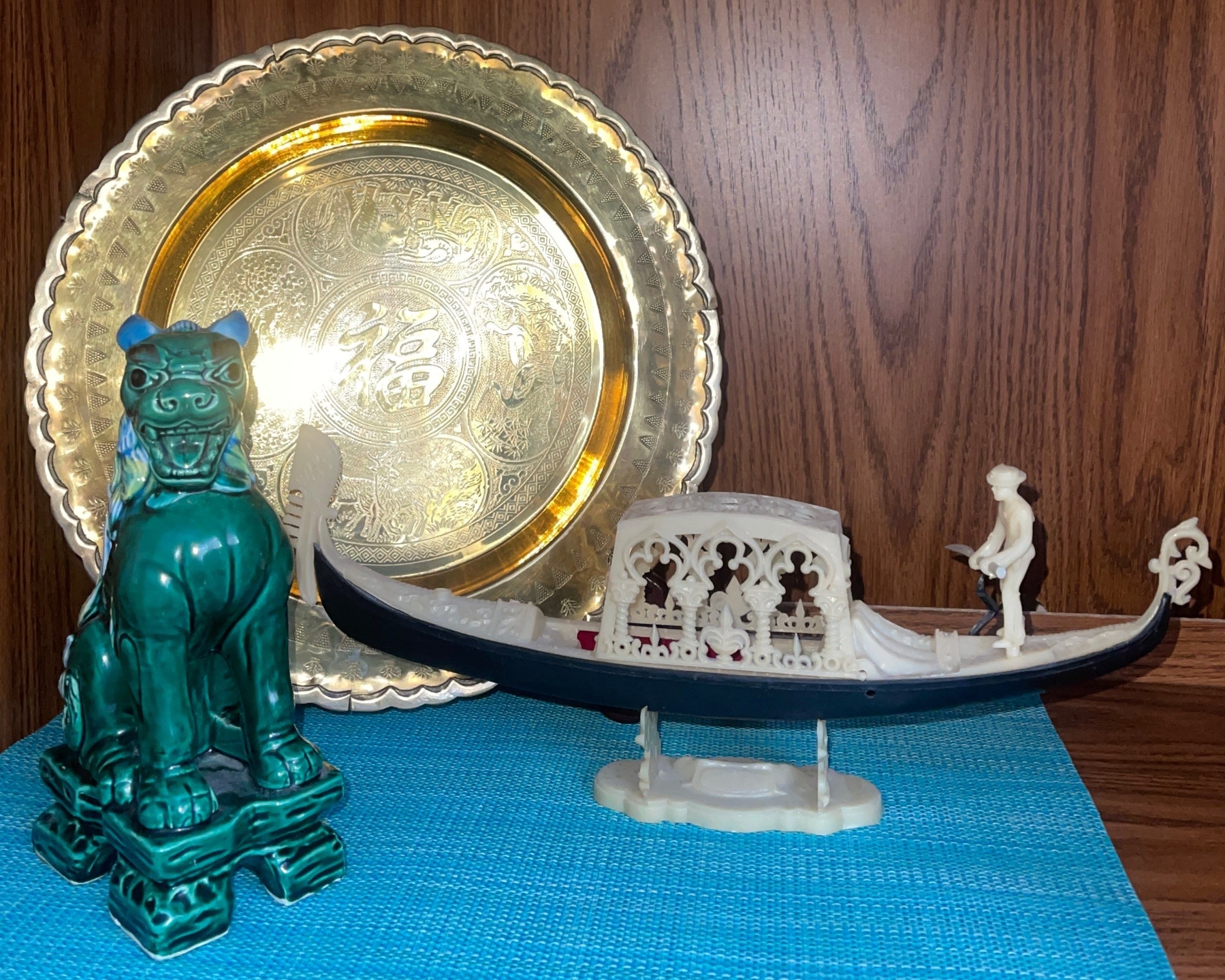 Aquamarine Fudog Figurine 9T w/ Vintage Gondala & Brass Plate