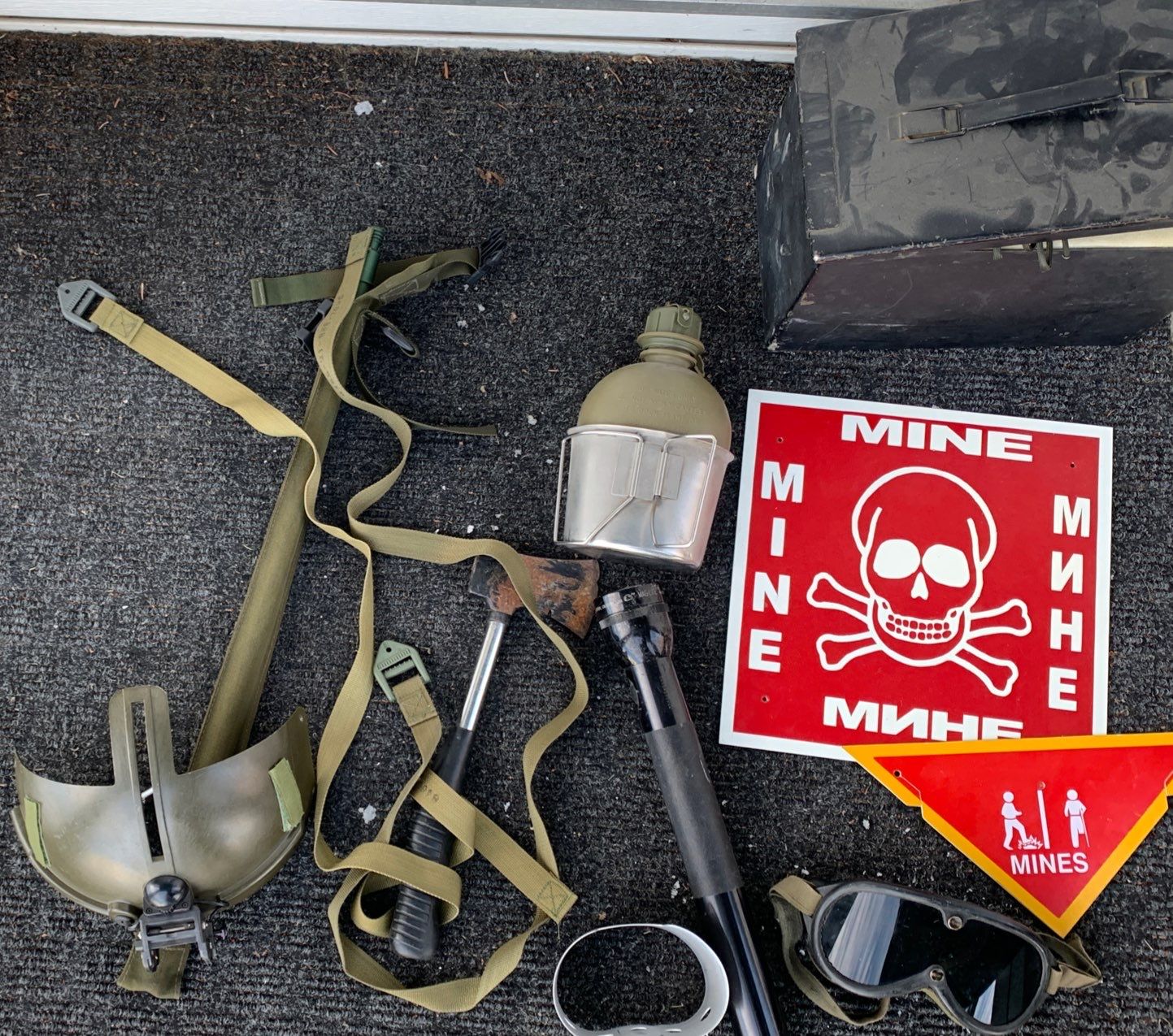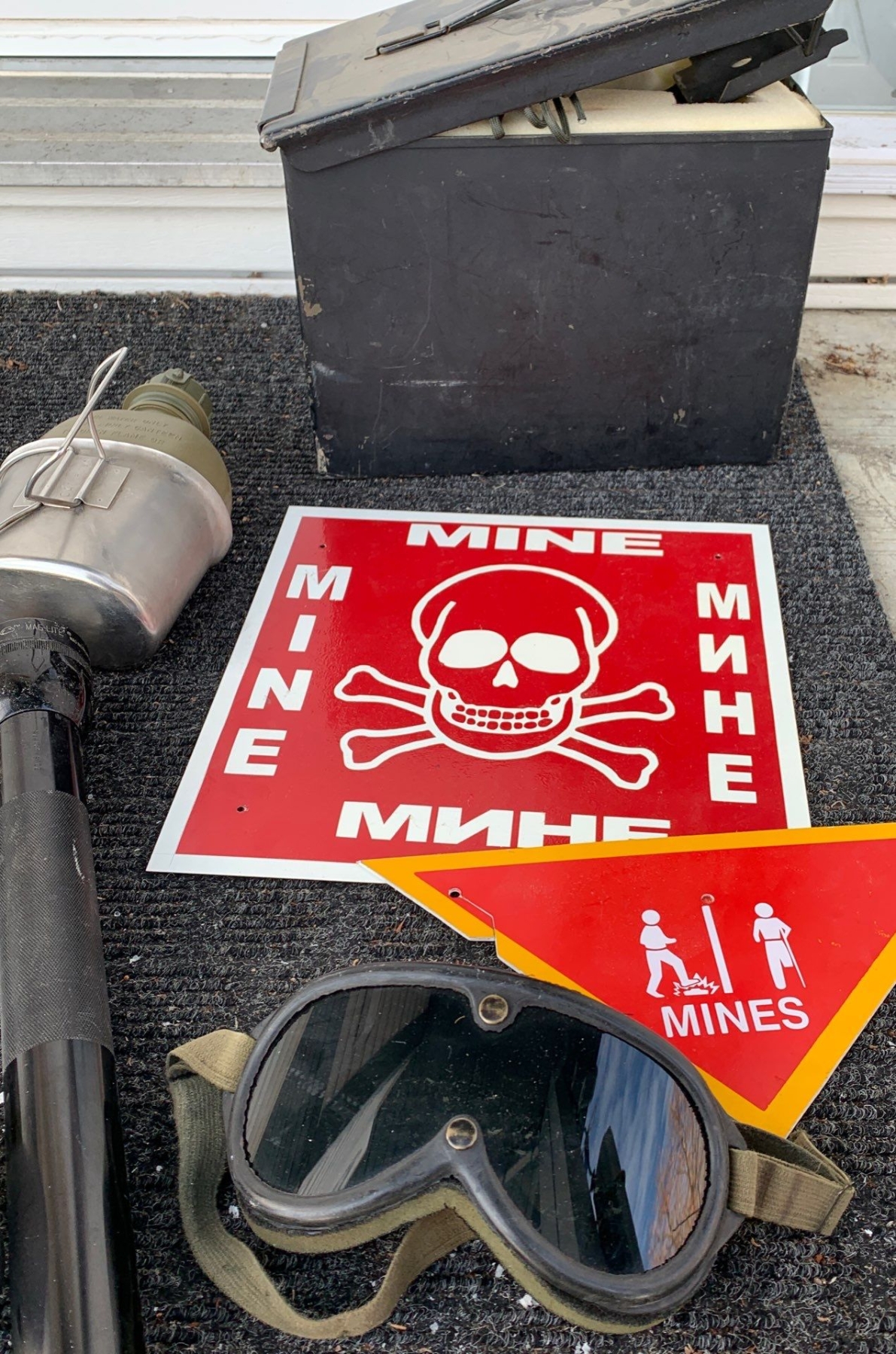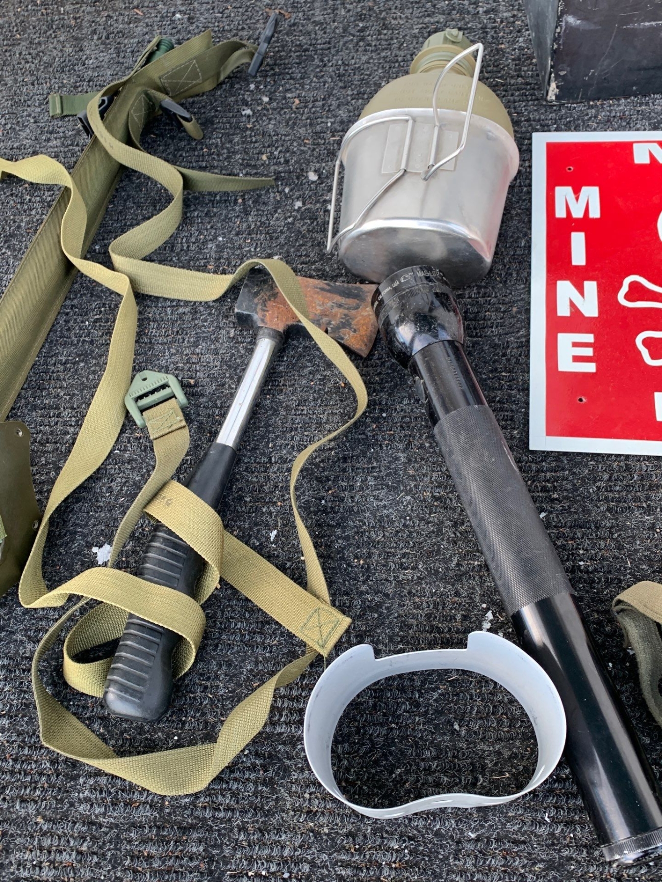 Army Artillery Box MINE Sign Military Flask Sewing Kit & More