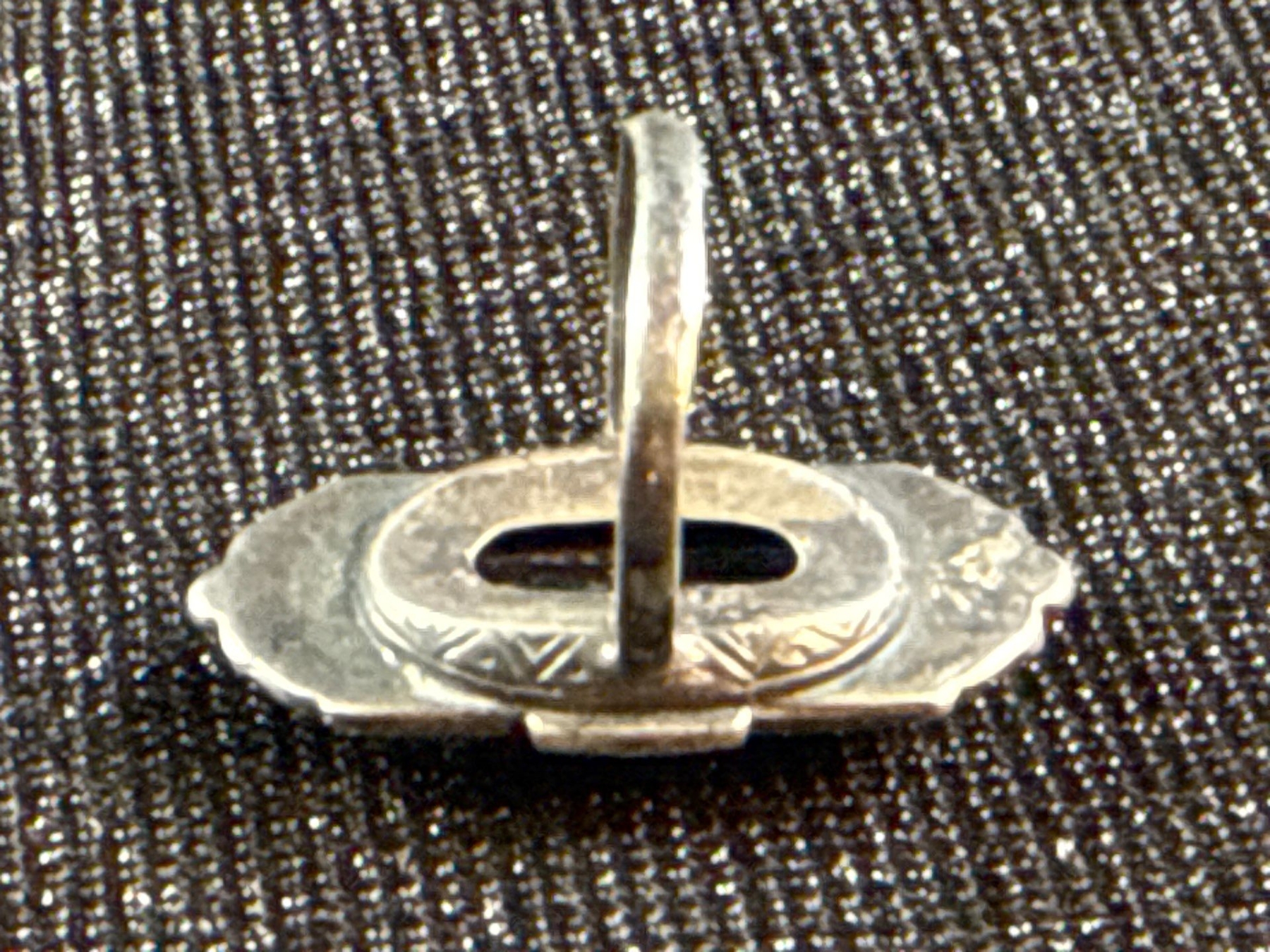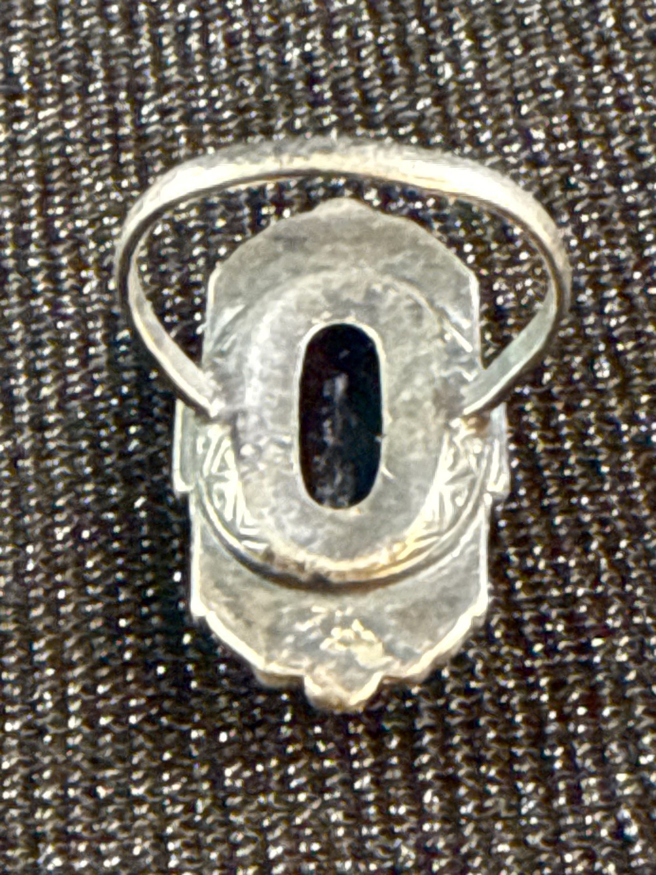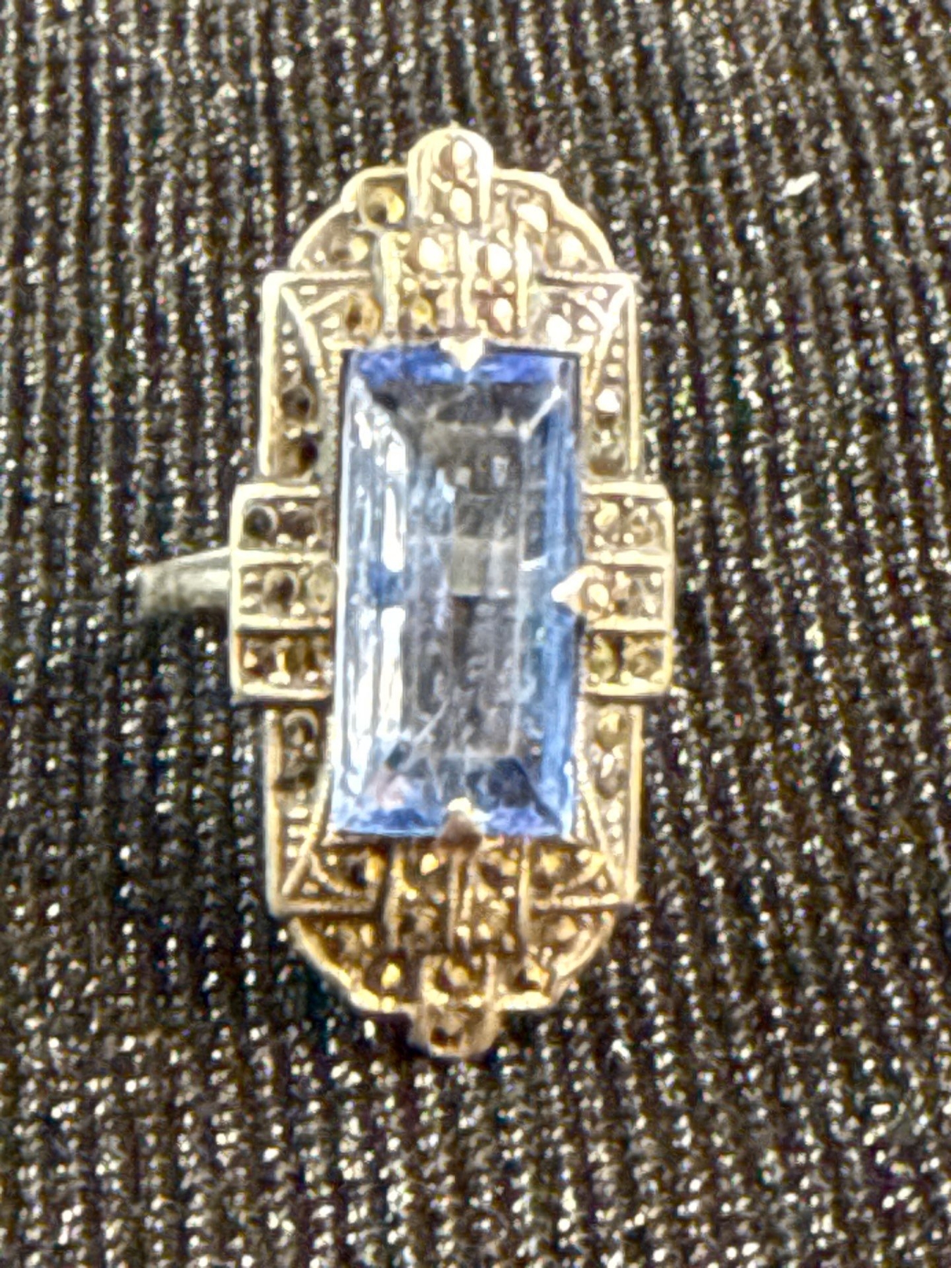 Art Deco Sterling Silver Marquasite Ring Blue Crystal