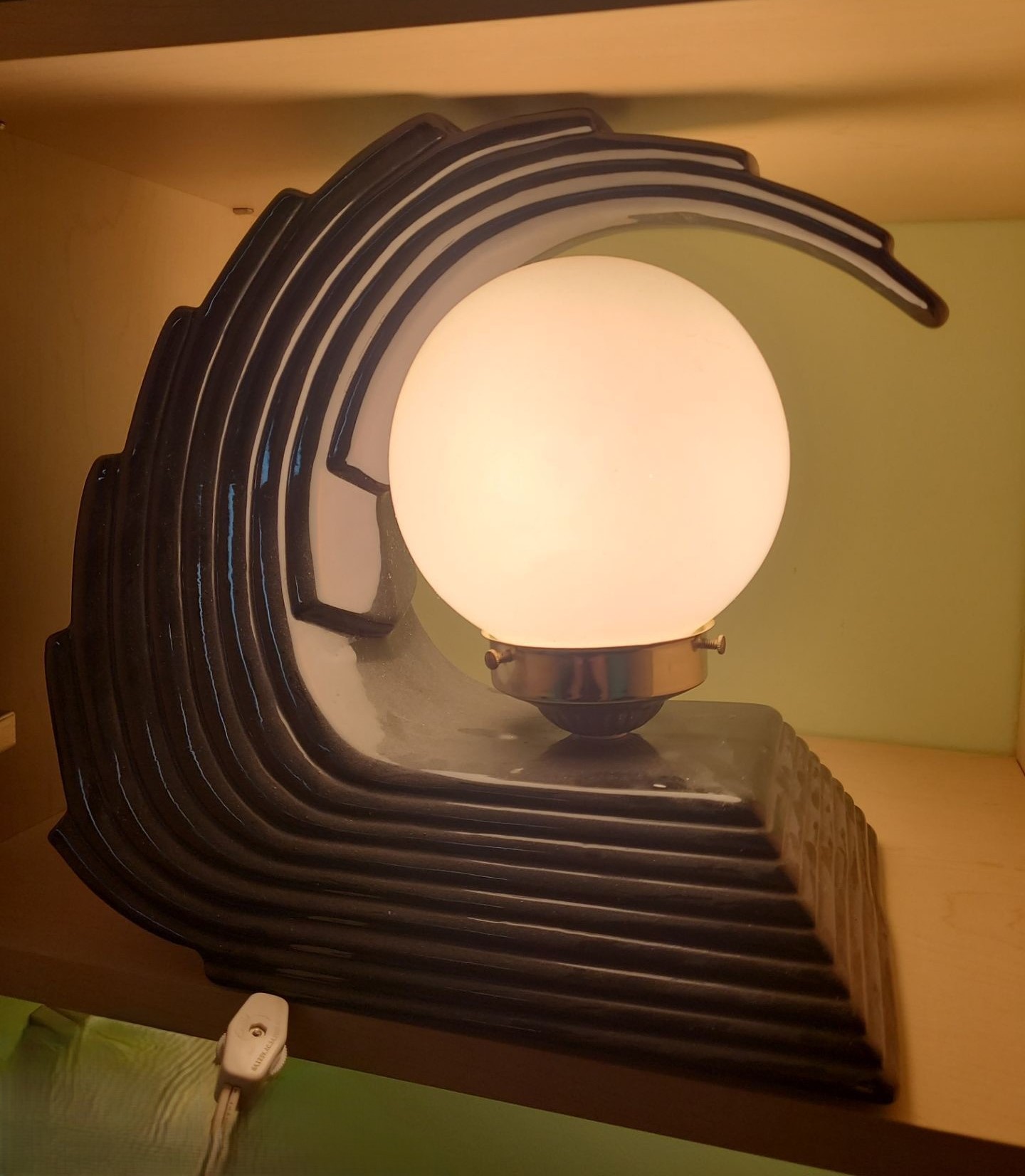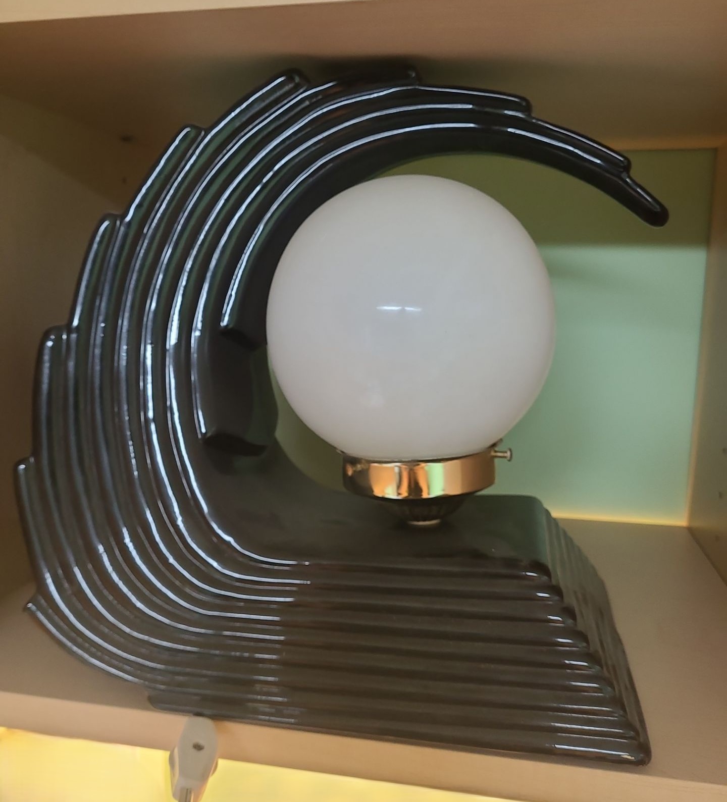 Art Deco Style Black Ceramic Lamp w/ Globe Shade 11 T