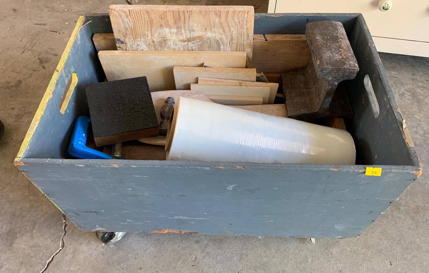 Art Supplies In Wheeled Wooden Box