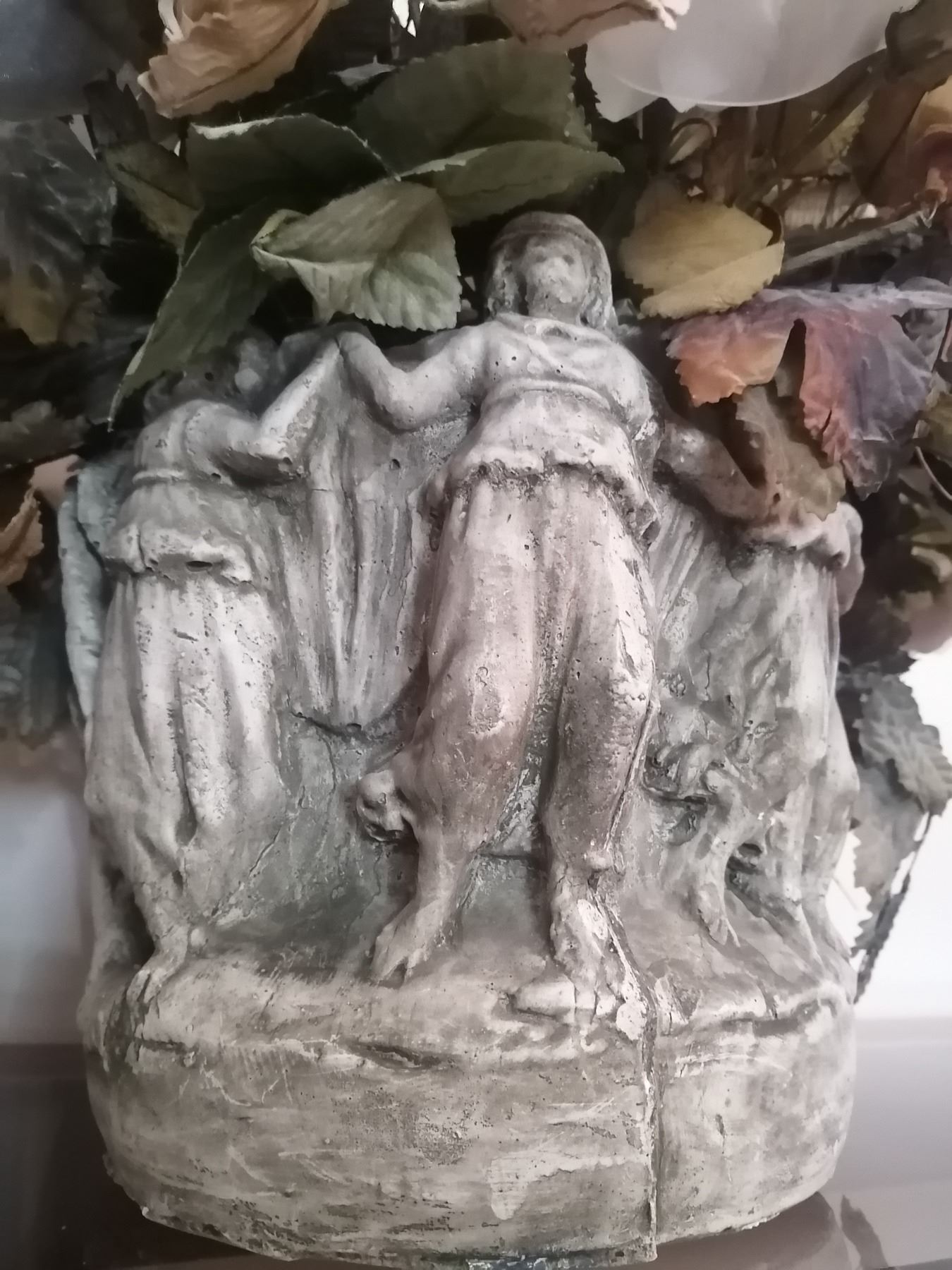 Artificial Flowers in an Ornate Stone Like Base 17" Tall