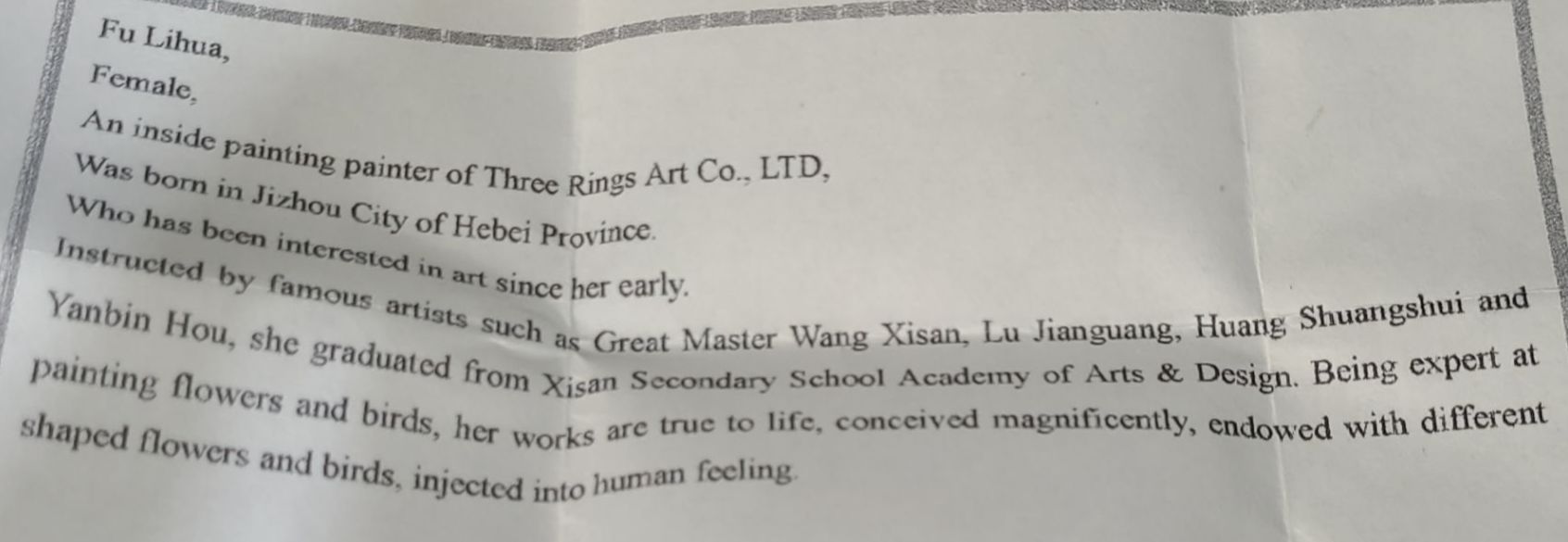 Artist: Fu Li Hua Height: 3 1/4" Length: 2 1/4" Inches