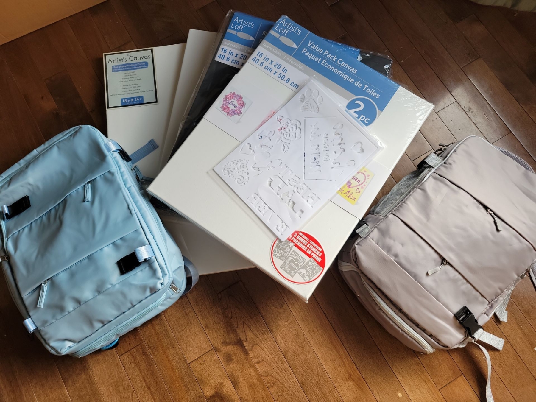 Artist On The Move -NEW Pair Of Napsacks w/ Black & White Art Canvases