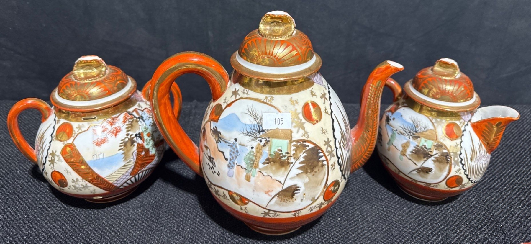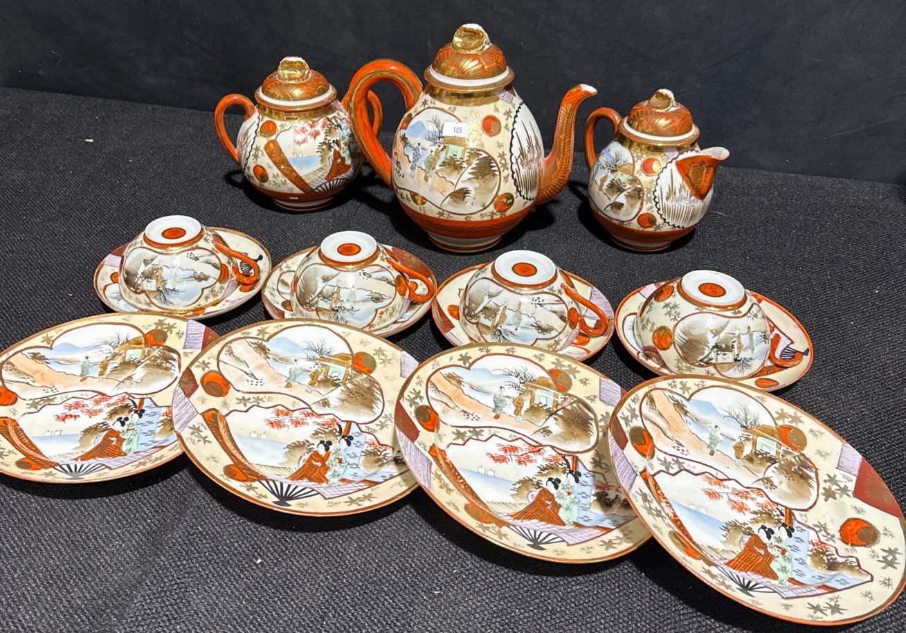 Asian Antique Tea Pot W/ Cups & Saucers (Some Chips-See Picture)
