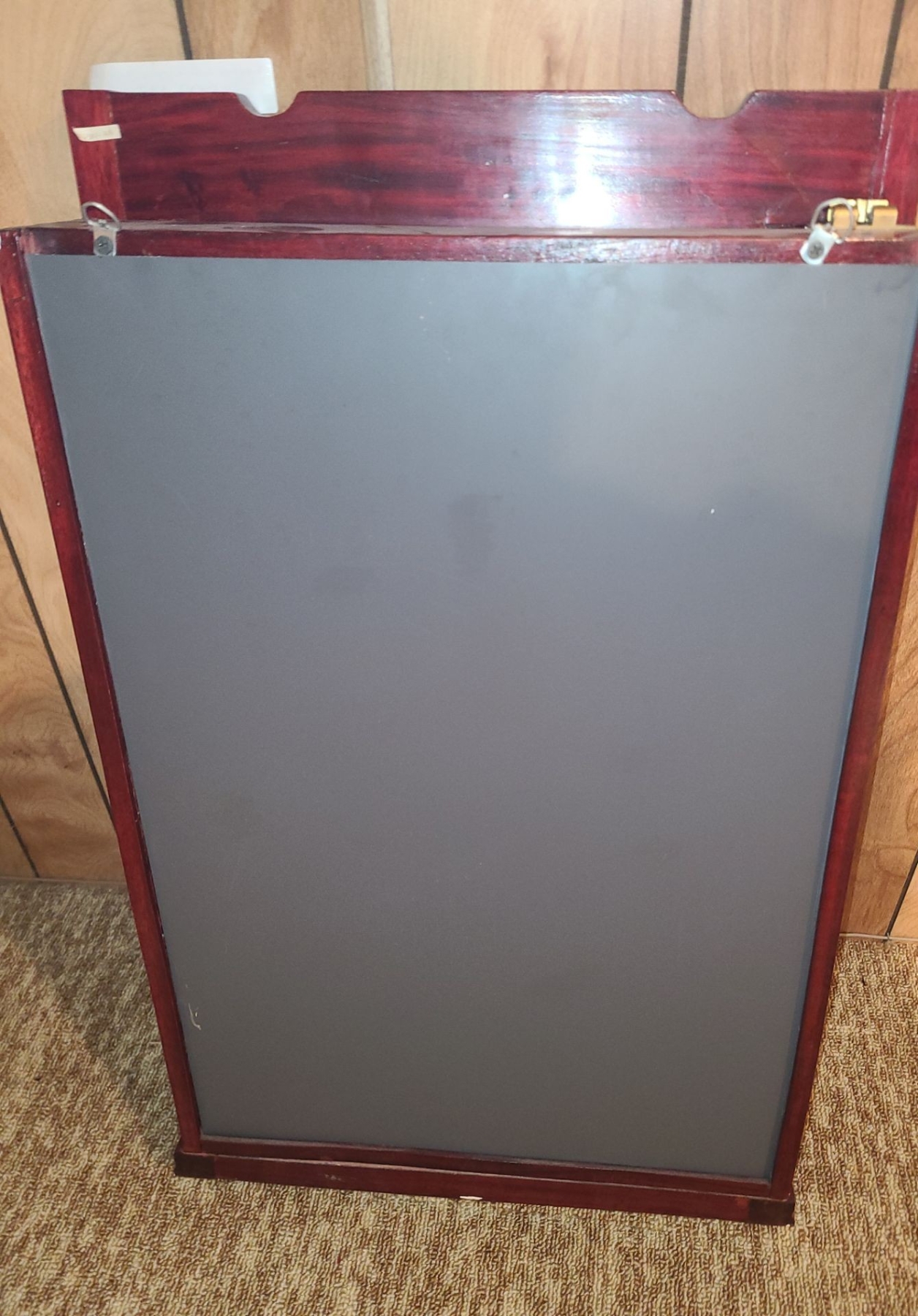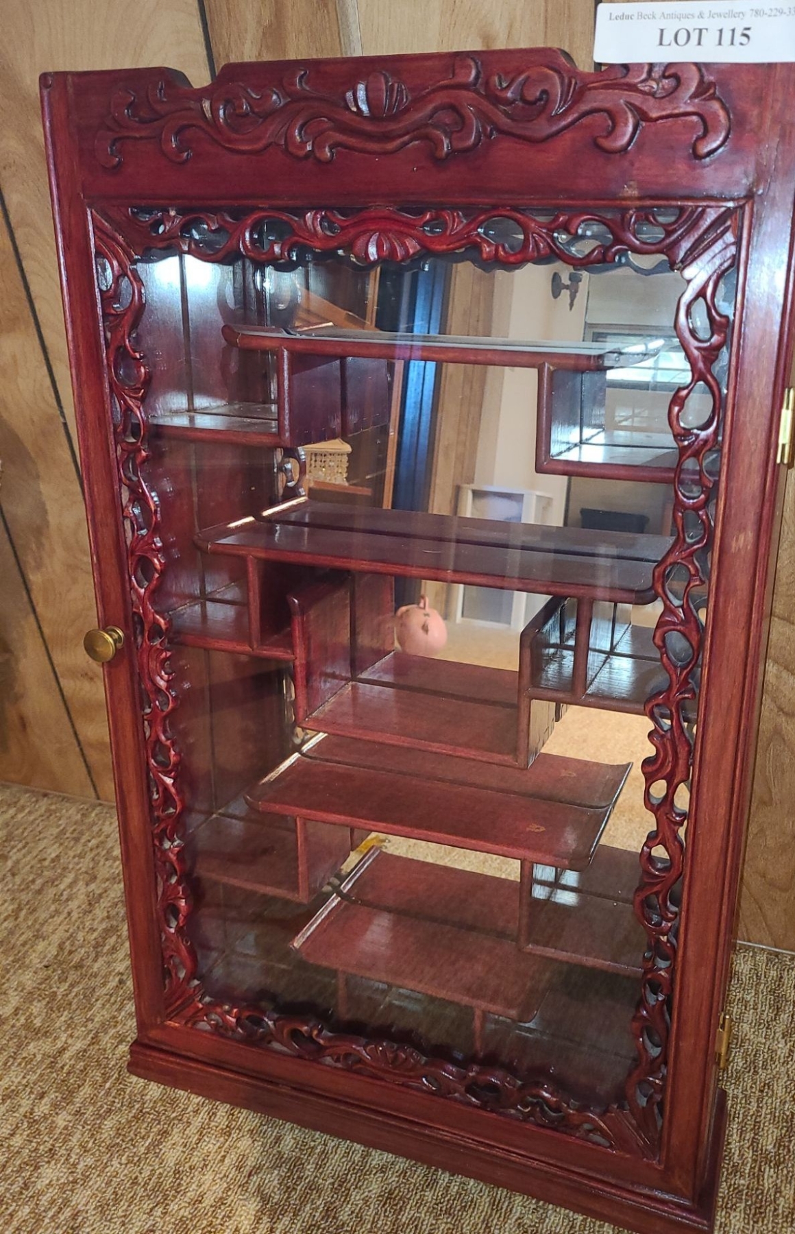 Asian Inspired Wooden Curio Cabinet w Mirror Back 17 w, 29 h, 4 1/2 d