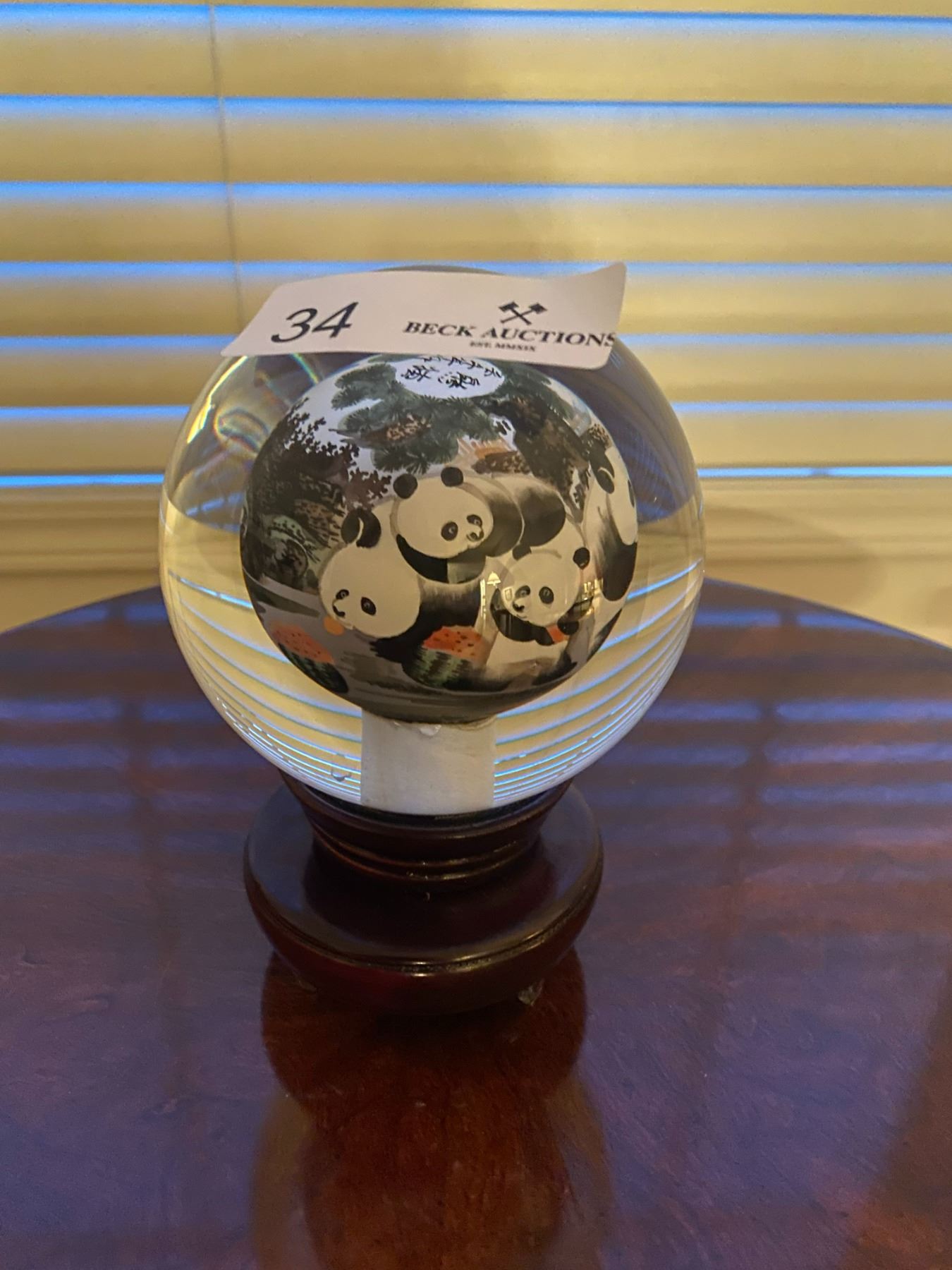 Pretty Panda oriental Snowglobe that sits on a wooden pedestal 7"