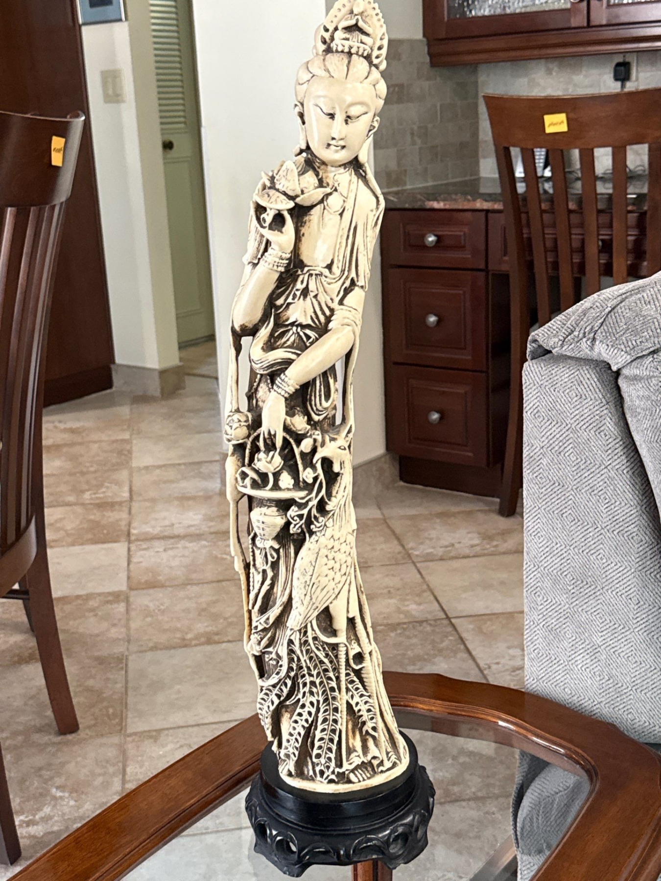 Asian Woman Imitation Ivory Tusk On Wood Base 26T