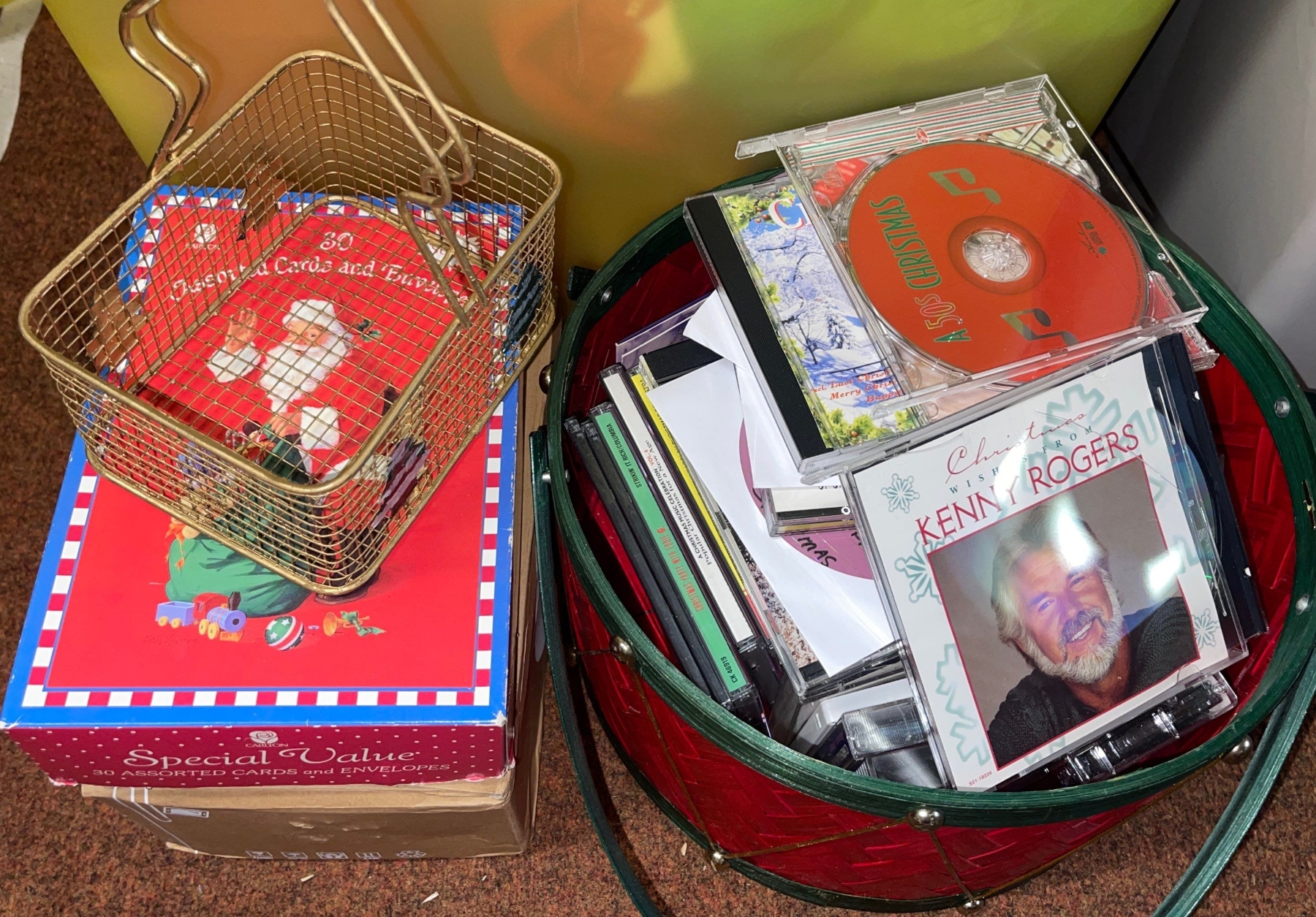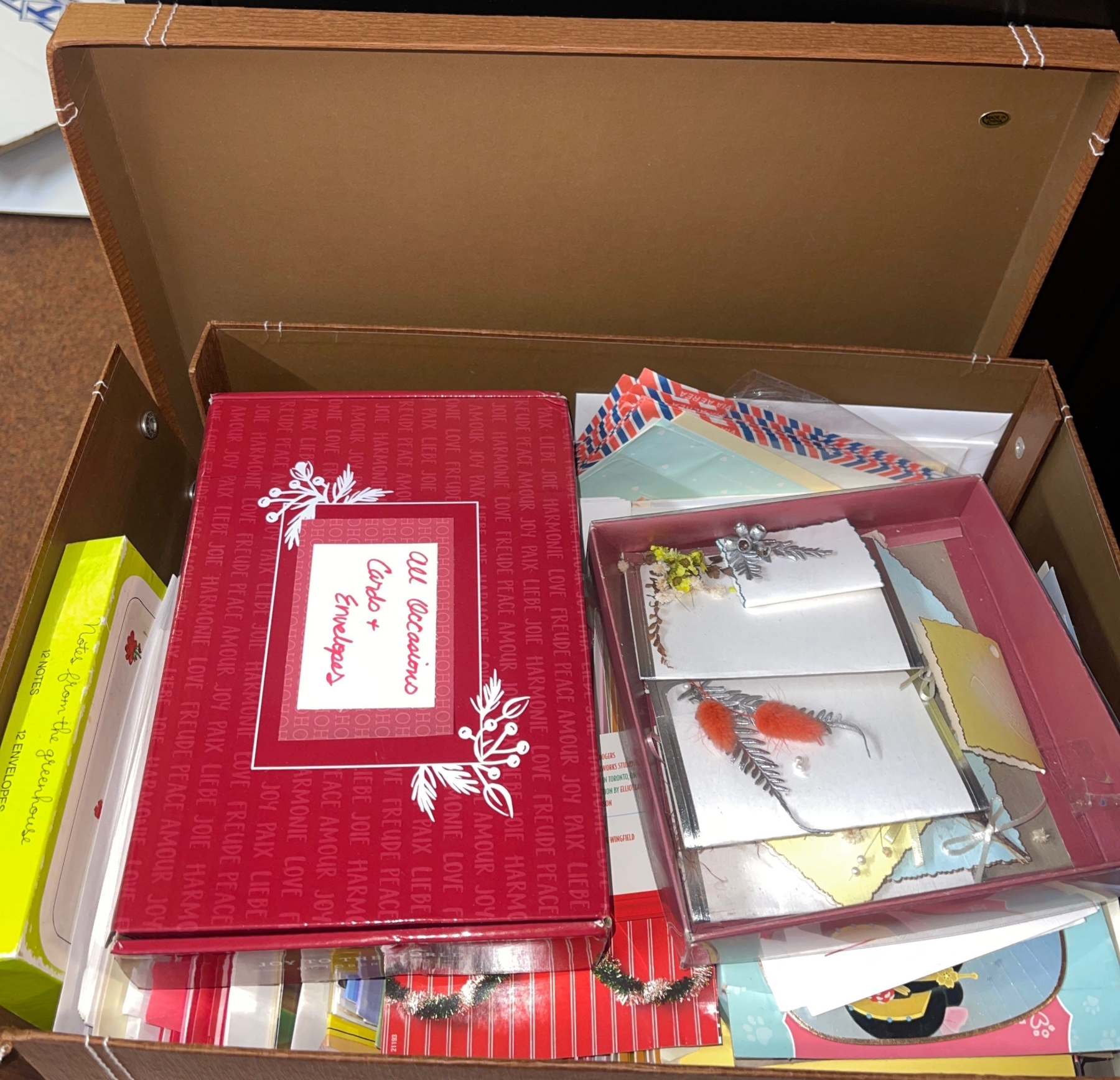 Assorted Christmas Decor & Supplies w/wrapping paper + Greeting Cards