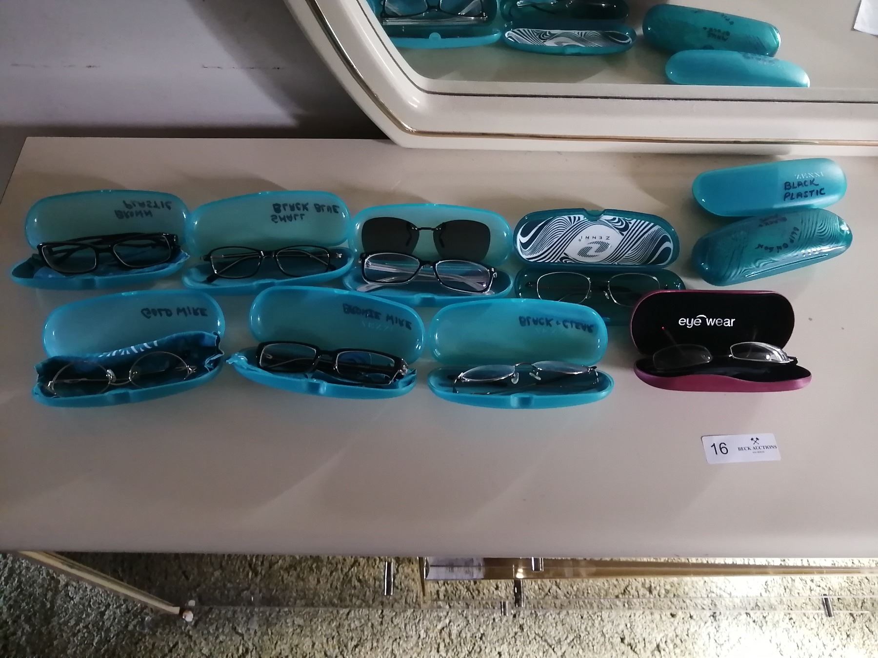 Prescriptions unknown, one pair missing lenses, 2 x empty cases.