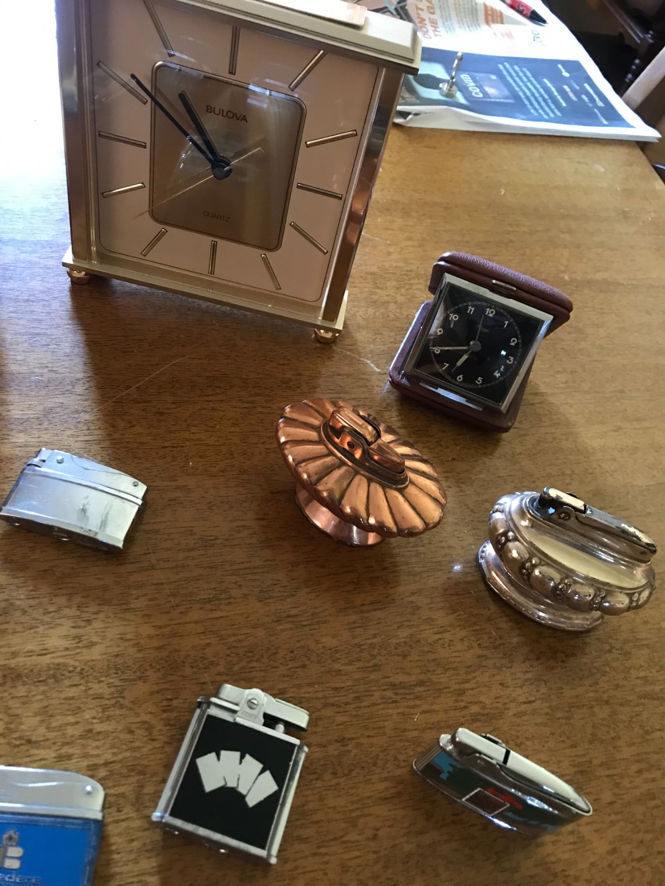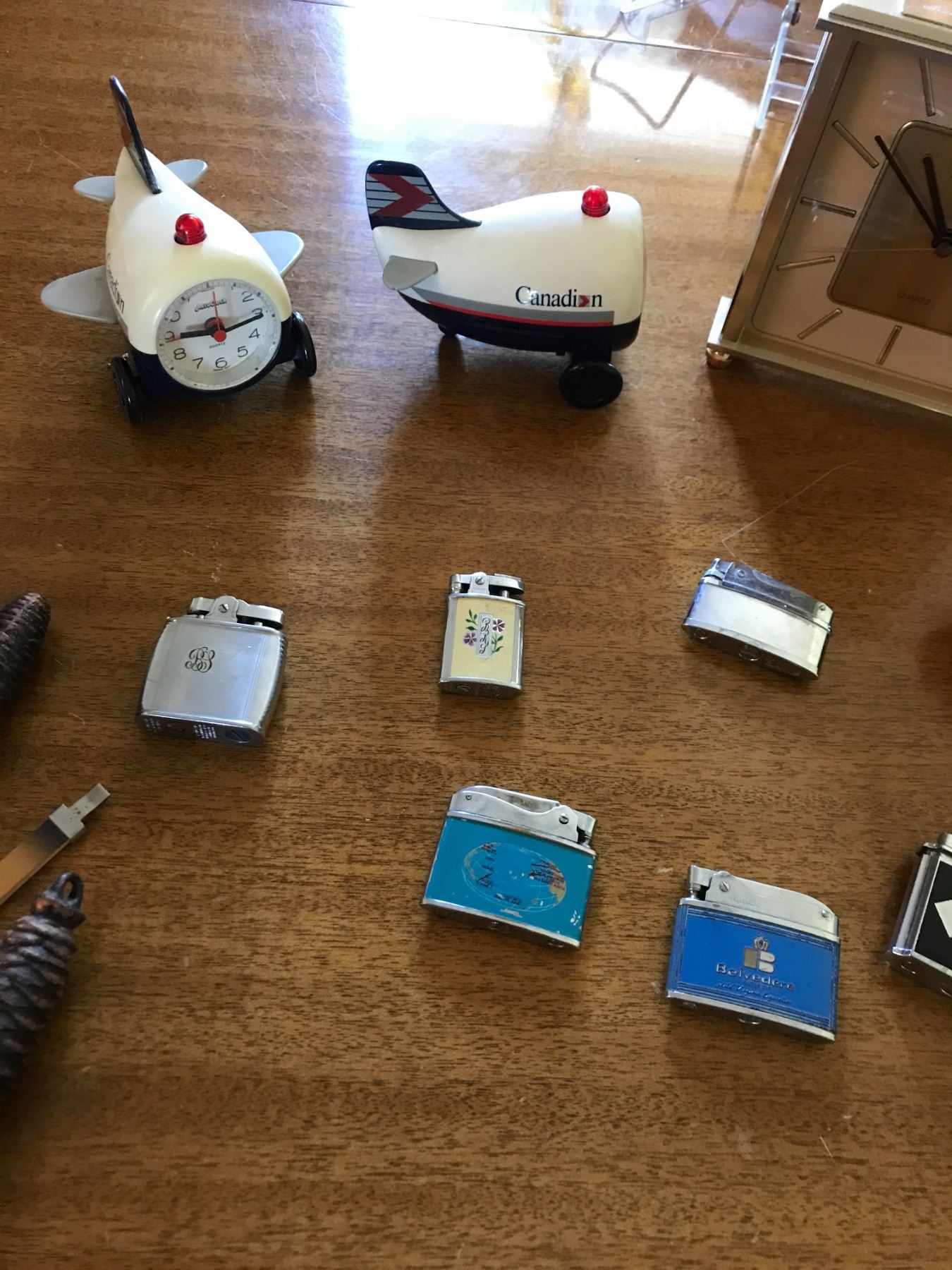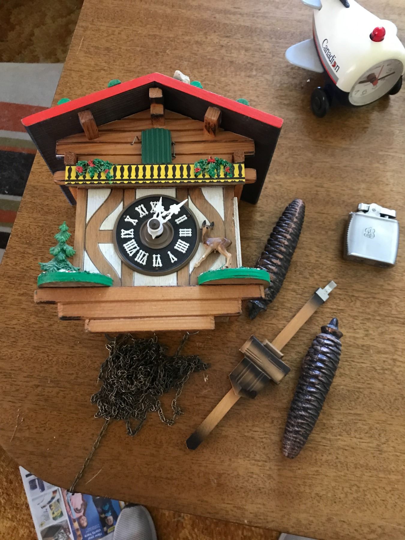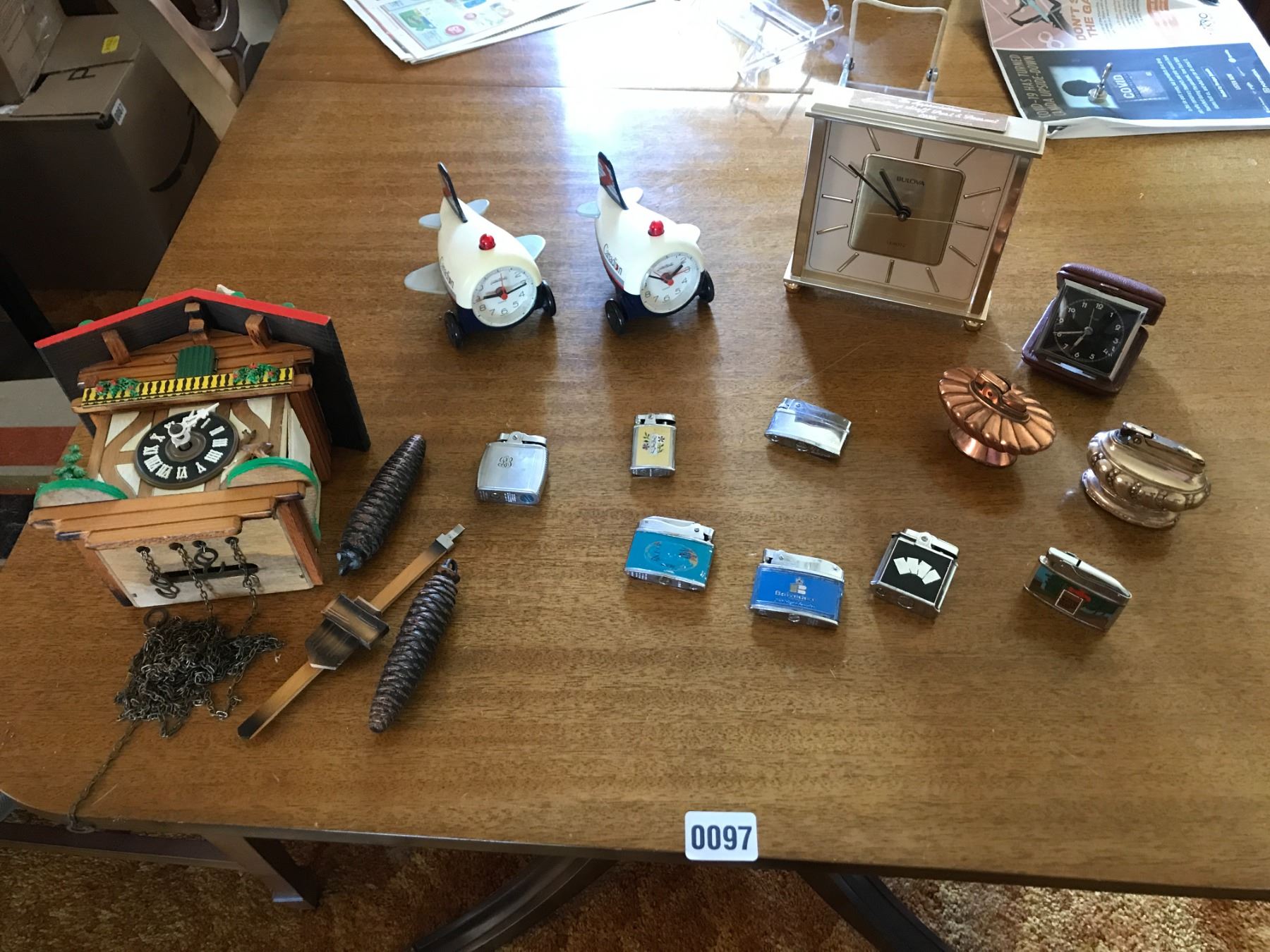 Assorted Clocks including Coo Coo Clock & Lighters