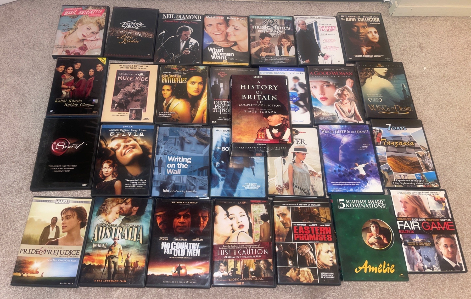 Assorted Collection Of DVDs The Secret, Pride & Prejudice, Sylvia, Neil Diamond, Fsair Gasme, Lust & Caution & More