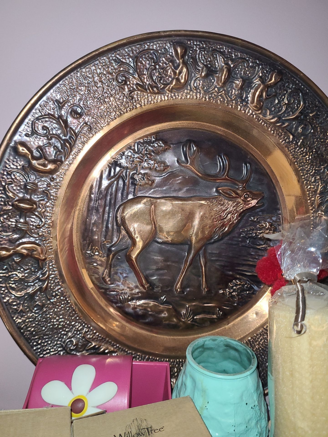 Assorted Decor: Metal Plate 17  Diameter, Willow Tree Ornaments, Candle and More!