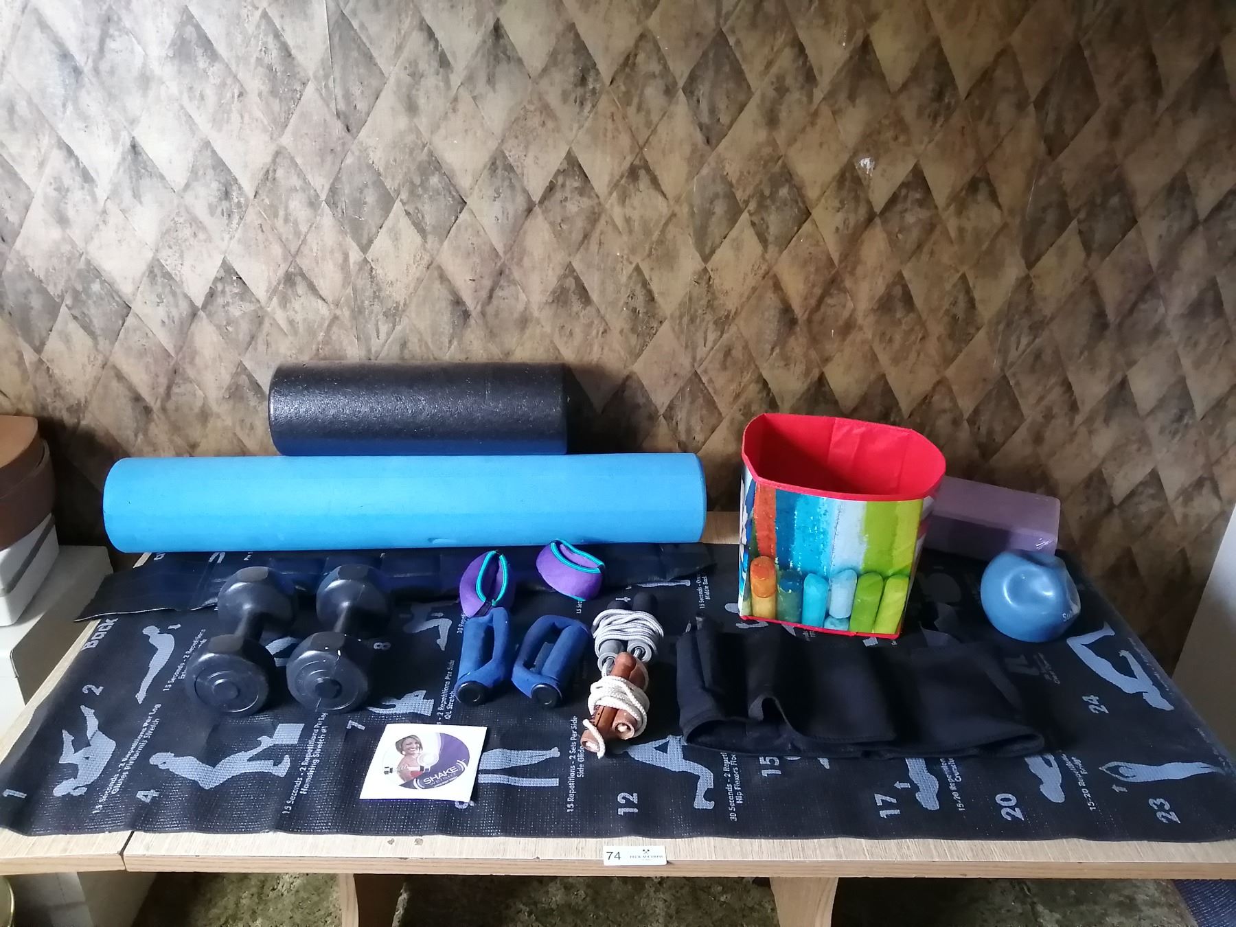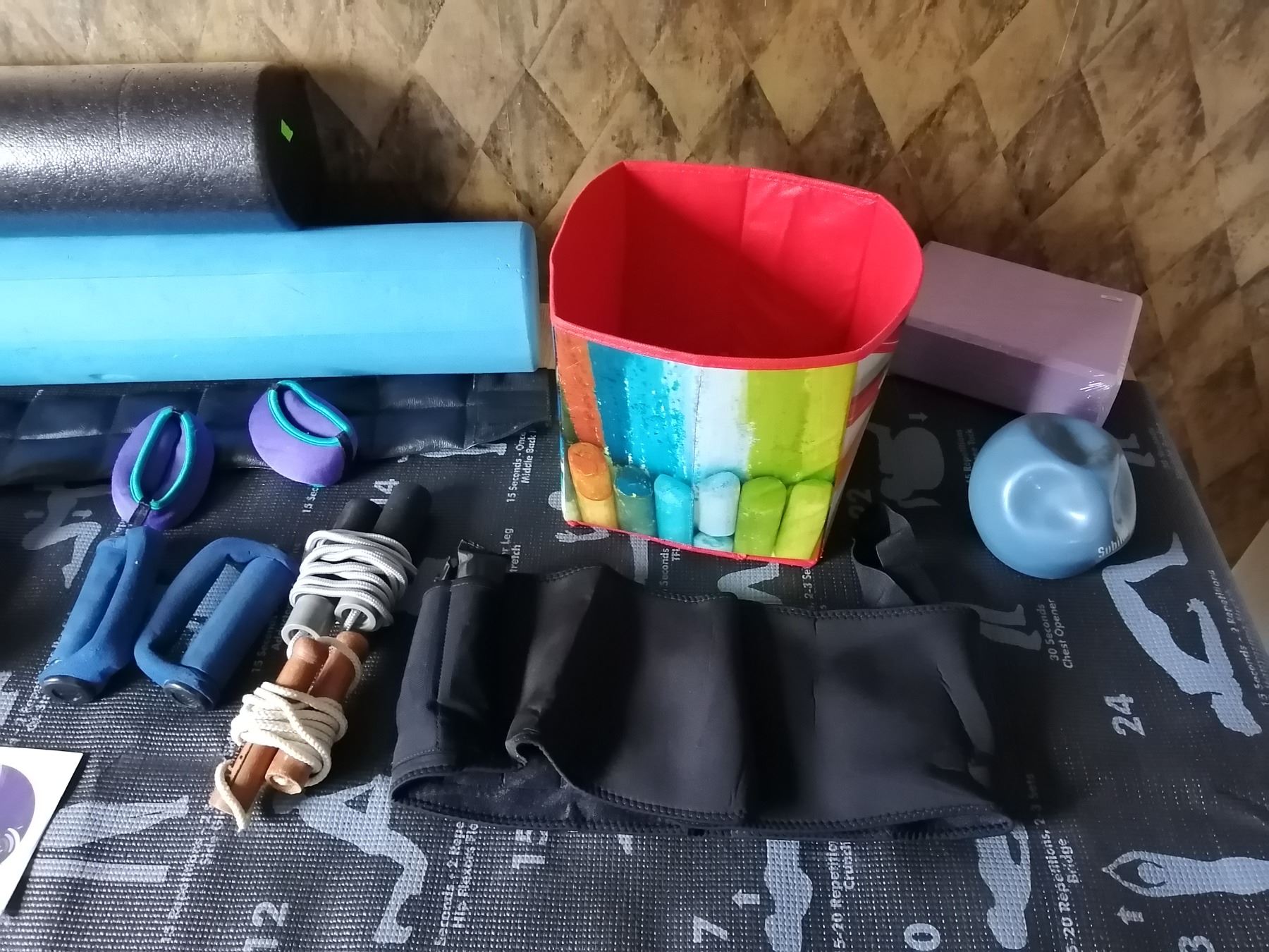 Includes dumbbells, jump rope, foam rollers, yoga mat, and more!