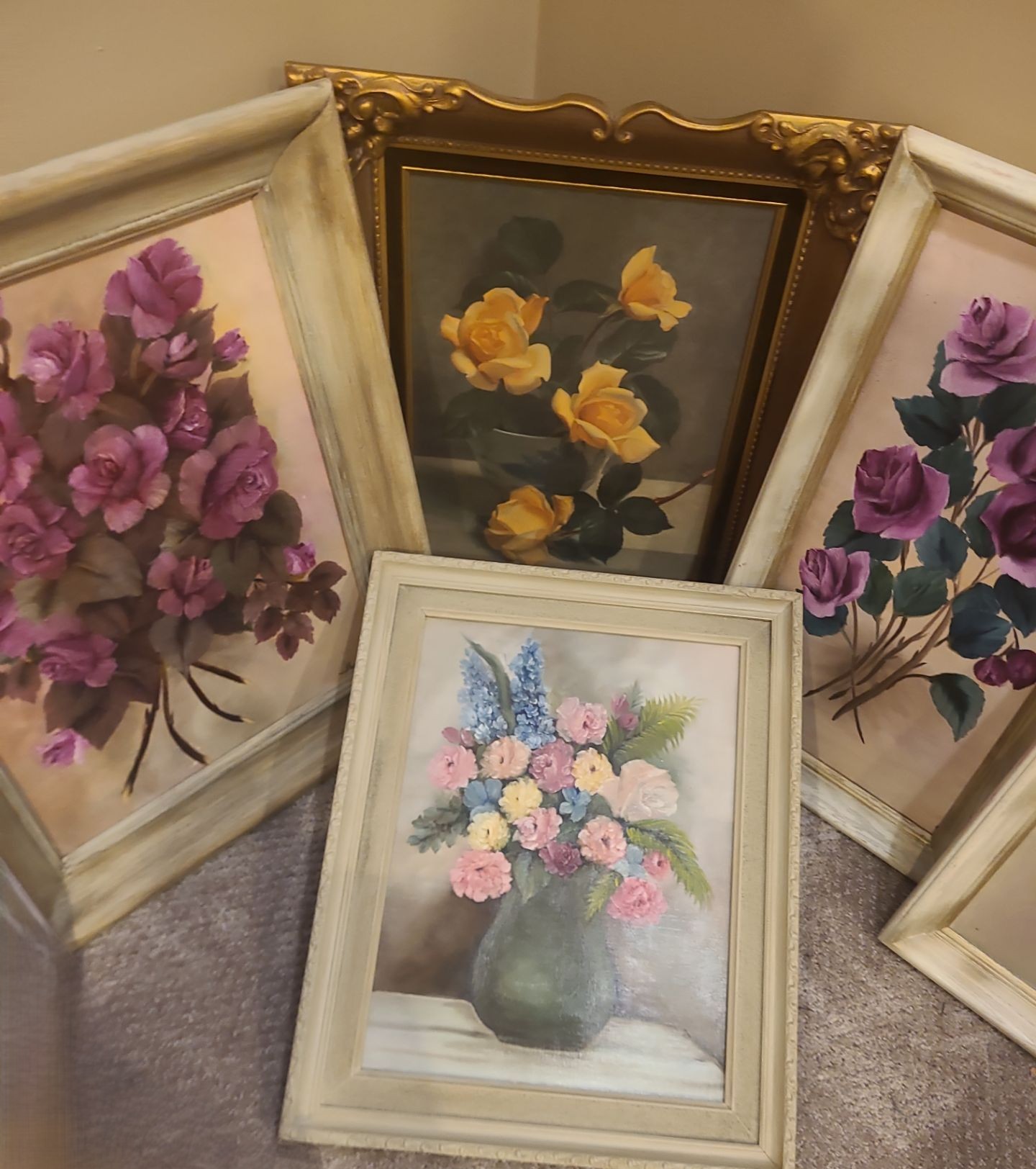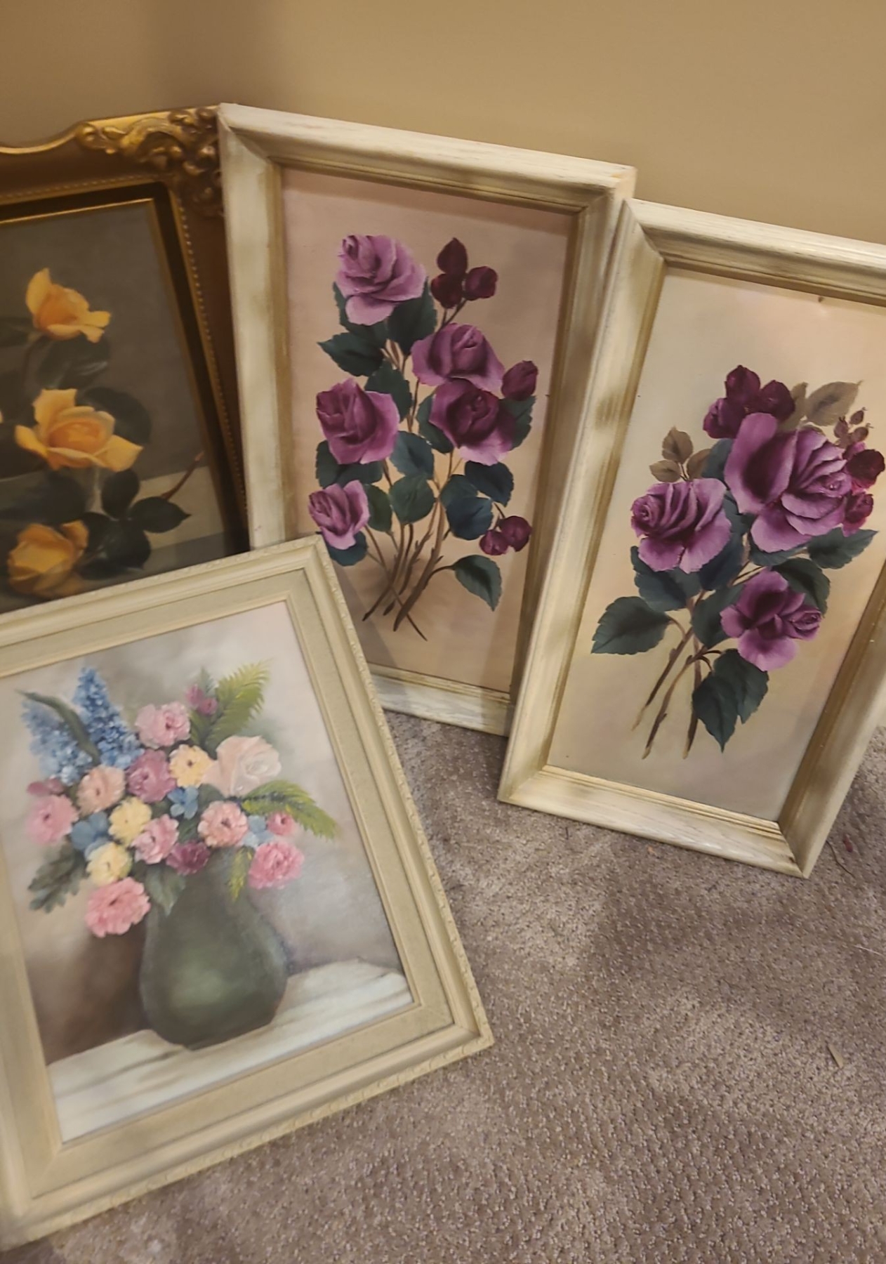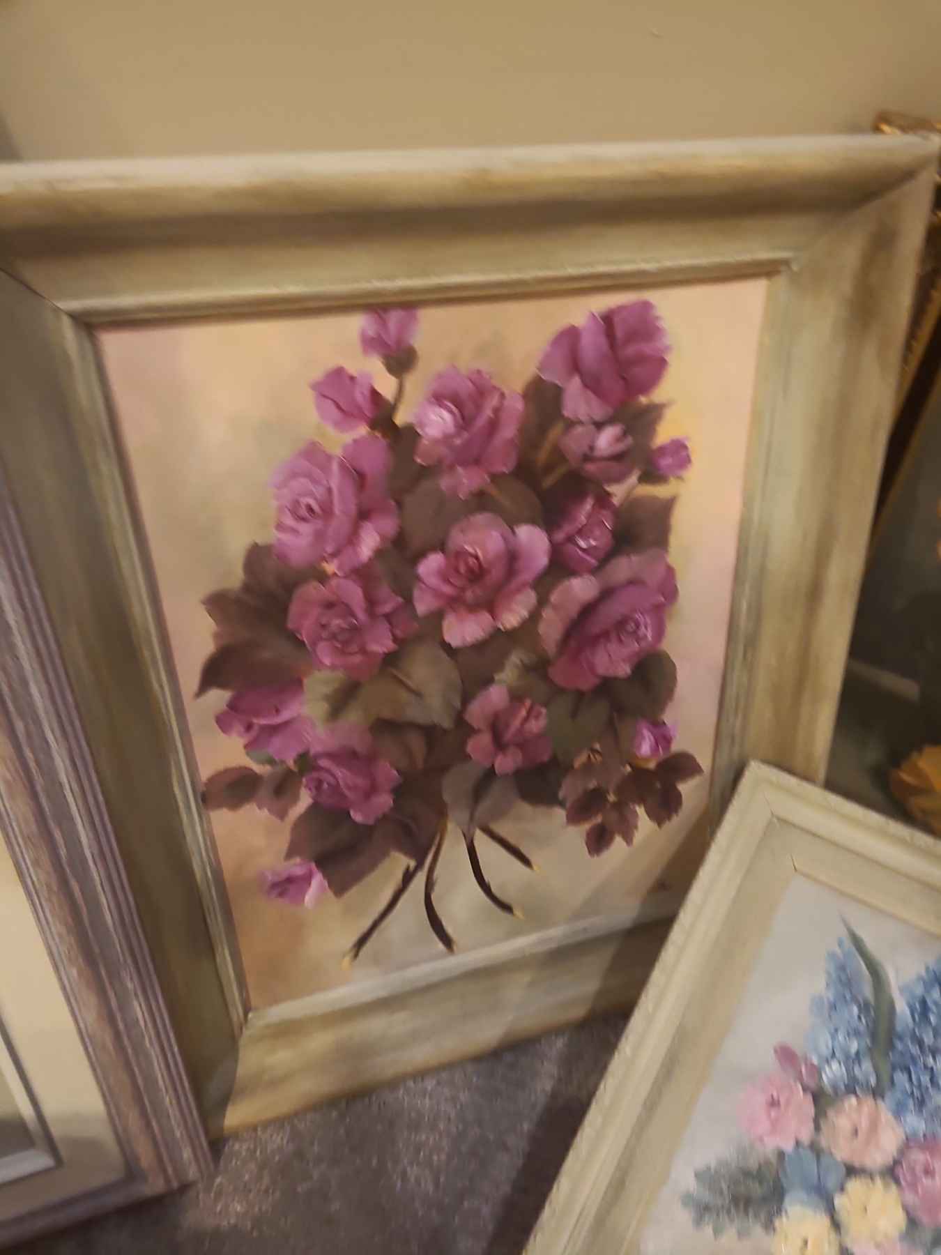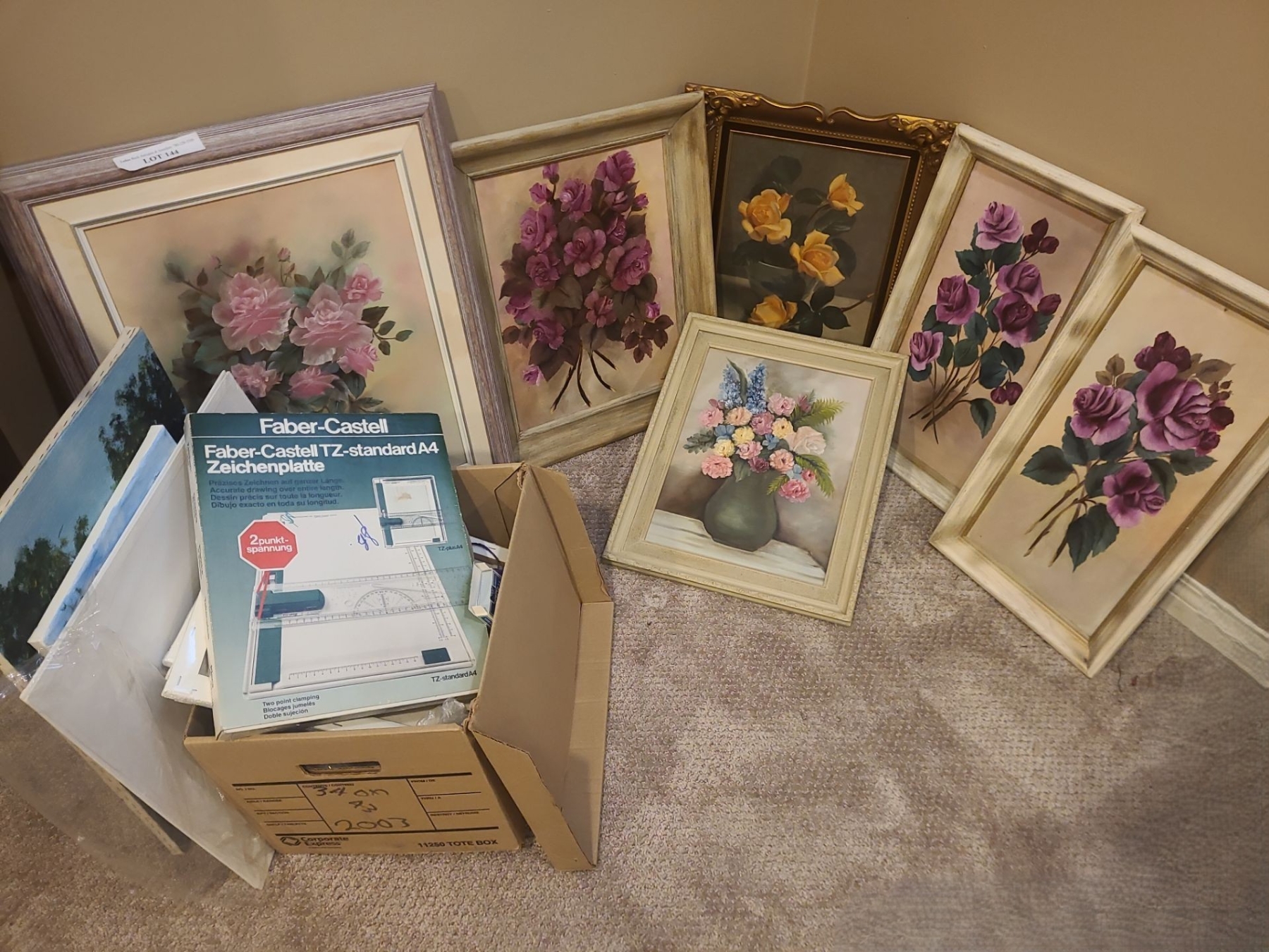 Assorted Framed Paintings, Pink Roses 22 w 26 1/2 h, Blank Canvases, Paint & more
