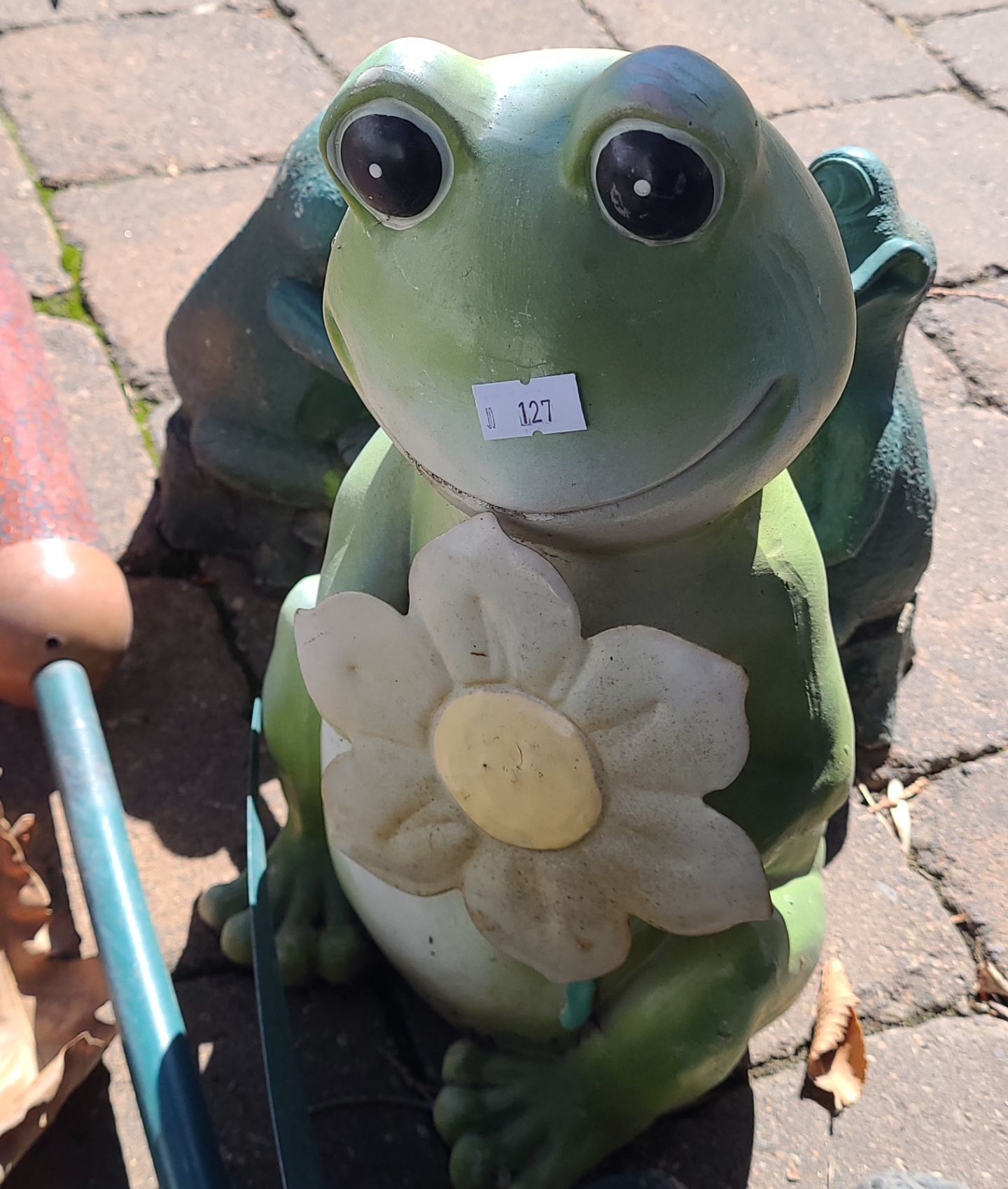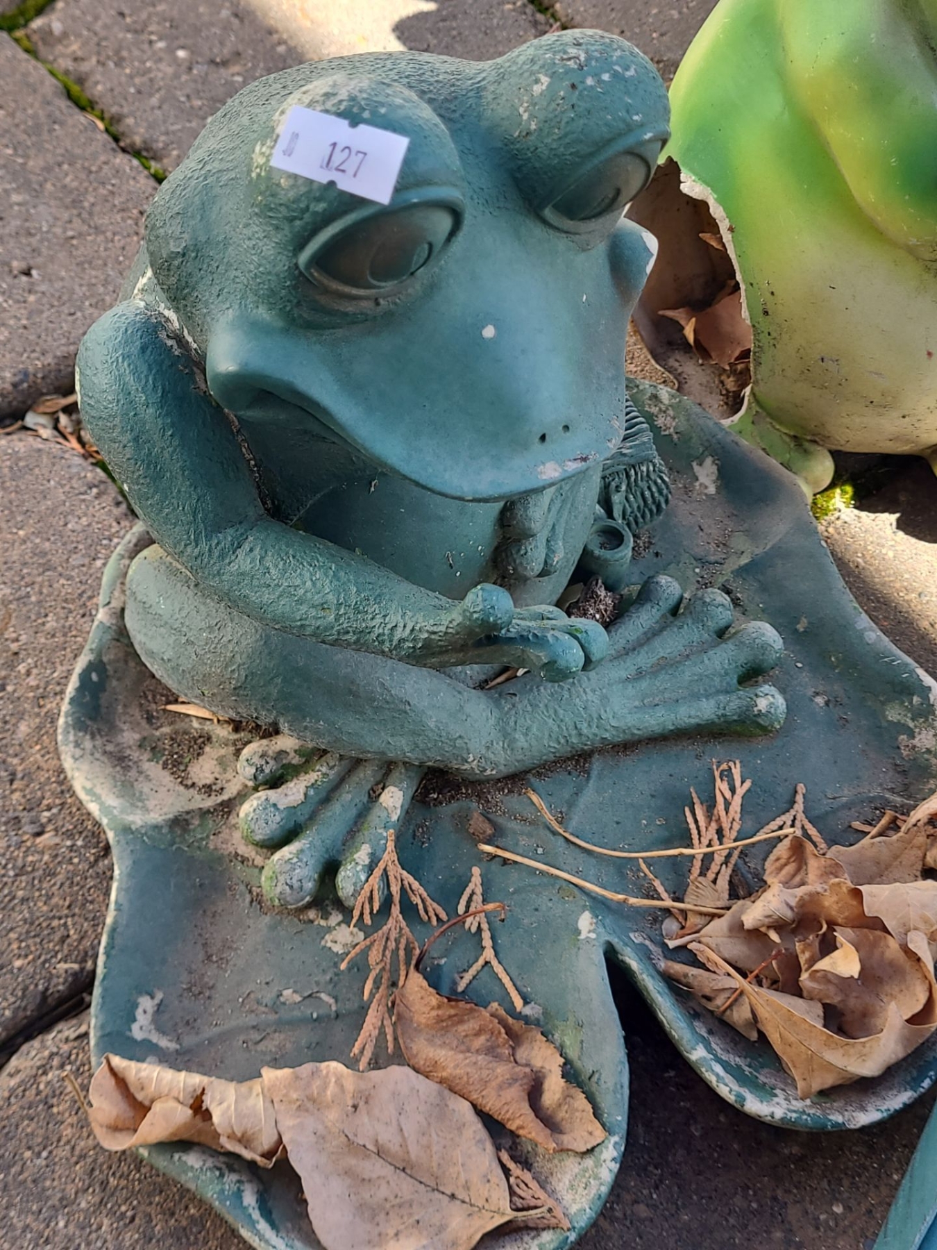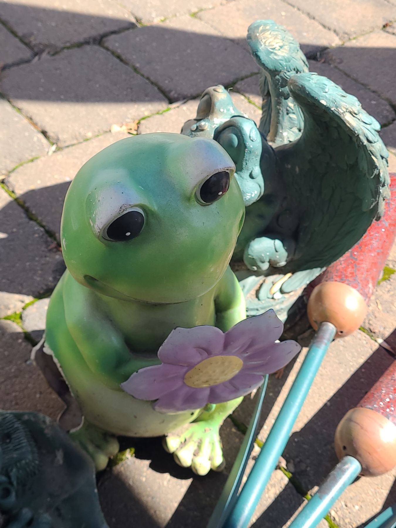 Weathered, Frog w/ Purple Flower Has Broken Foot as Shown