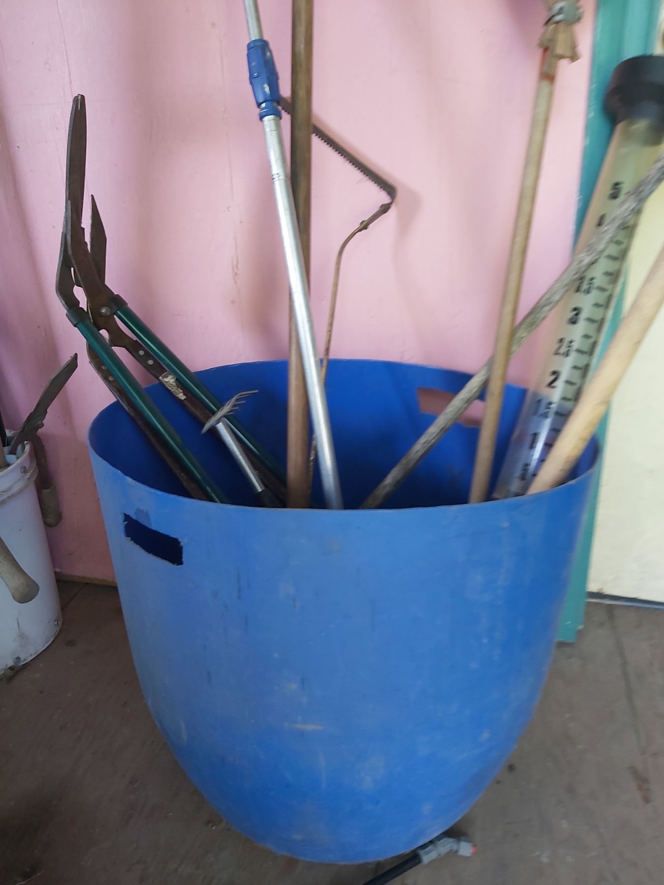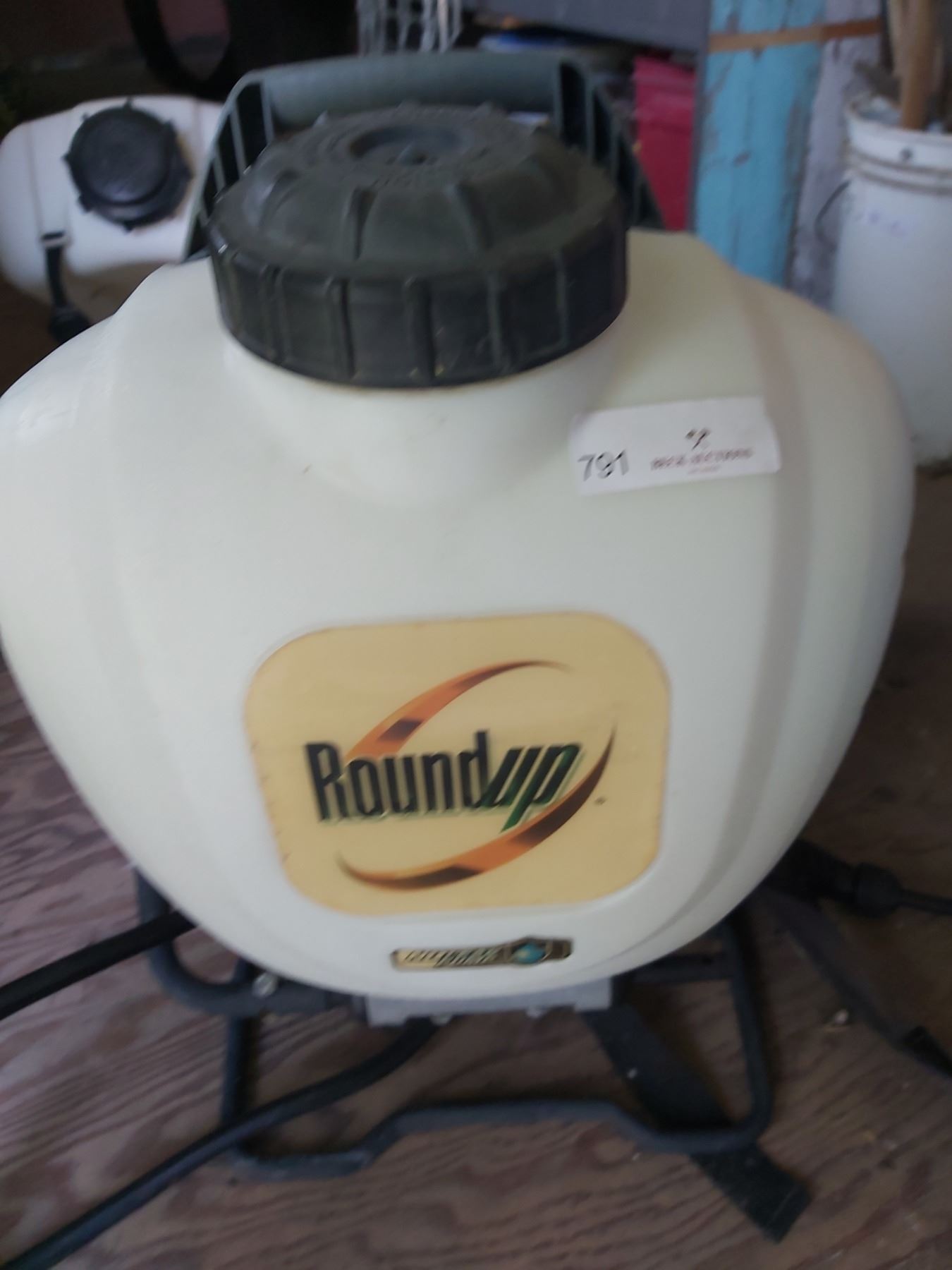 Assorted Garden Tools with Round up Back Pack Sprayer