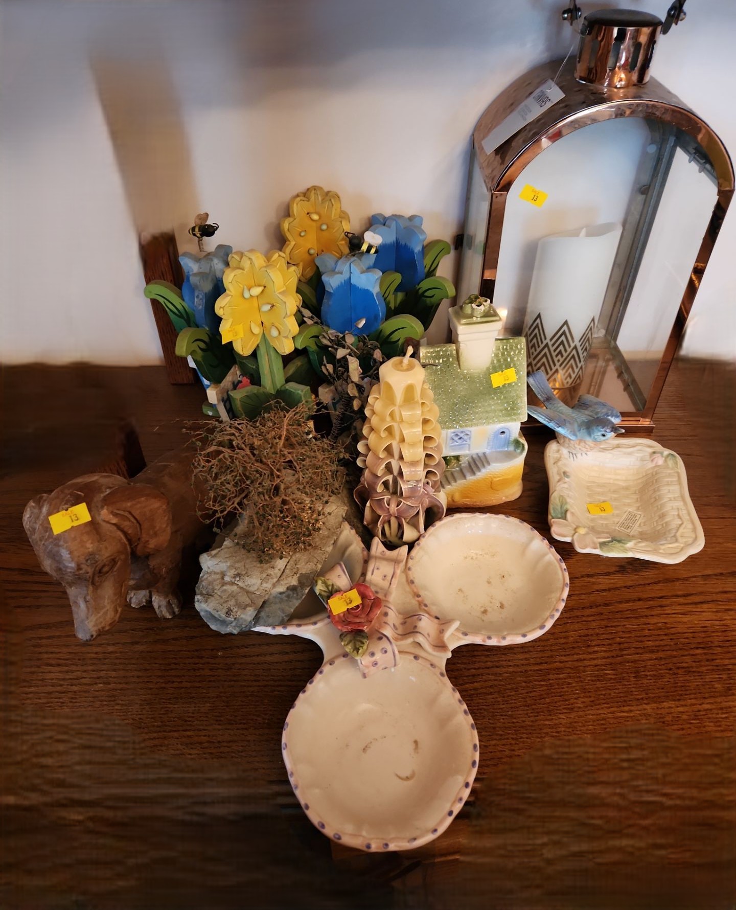 Some Minor Chips on Ceramic House, Bowl w/ Rose and Bow, Bird's Nose as Shown